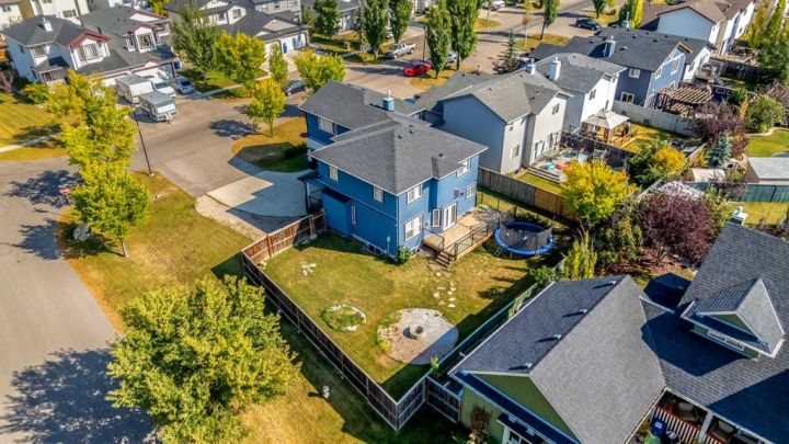 Huge attached garage with a massive front yard and enormous fenced backyard. Exterior has all new fire resistant Acrylic stucco. Elegant curb appeal with black onyx stone and Azure/cream Stucco with matte black wood trim. A curved front driveway leads to the oversized, professionally finished garage with built-in shelving, workbench, and lighting—perfect for the hobbyist. Relax on the covered front veranda or entertain on the newly built deck in your sunny backyard, complete with a firepit. Inside, you’ll find brand-new carpet and laminate flooring throughout. The main level features a welcoming living room, formal dining room, mudroom, and a chef-inspired kitchen with new cabinets and quartz countertops, plus a convenient 2-piece bath.