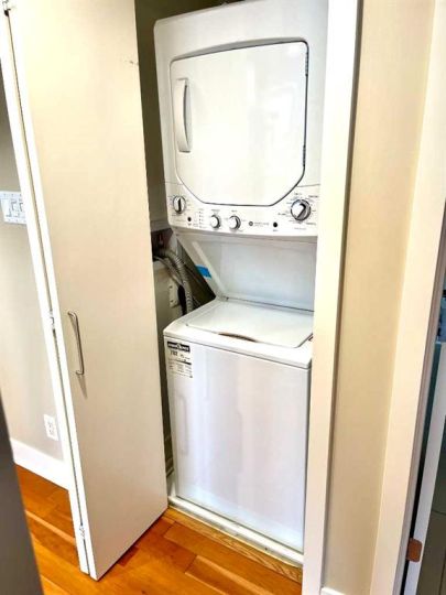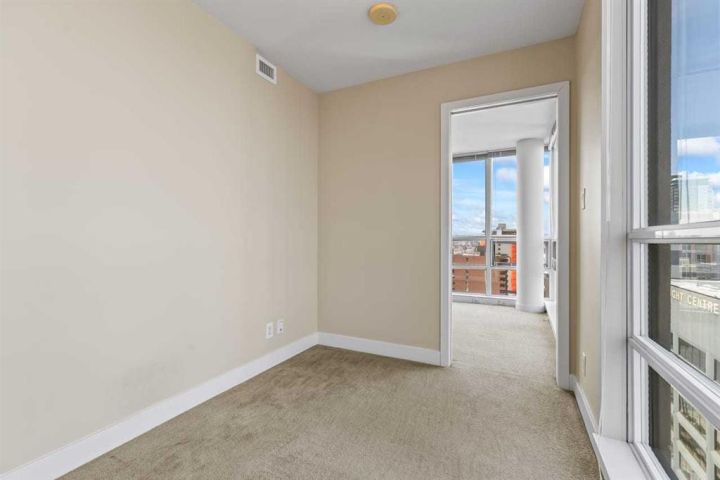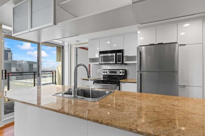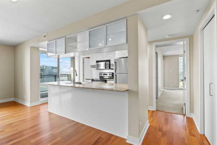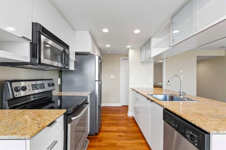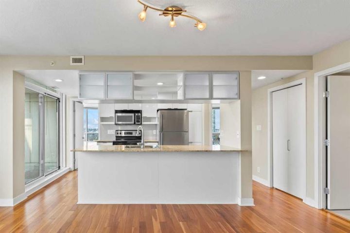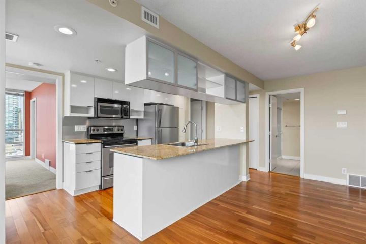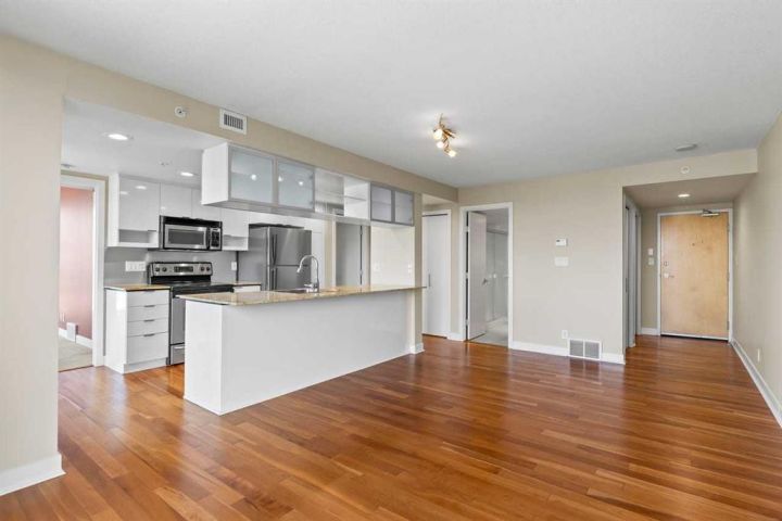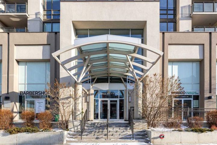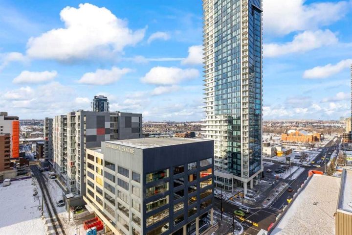 Experience refined living at Stella in this highly desirable 2-bedroom + den, 2-bath residence offering breathtaking, unobstructed downtown views from an exceptional 12th-floor corner location with floor-to-ceiling windows that flood the home with natural light. Concierge service welcomes you at the lobby, while a generous foyer leads to contemporary hardwood and tile flooring, complemented by warm, luxurious carpet in the bedrooms and custom California Closets throughout. The chef-inspired Ramsay kitchen overlooks the great room and features stainless steel appliances, high-gloss white cabinetry, granite countertops, and a large breakfast island, ideal for entertaining and everyday living. Recently replaced ST fridge and insuite stacked washer and dryer set are a true bonus. The primary and second bedrooms are thoughtfully separated by a private den with pocket-door access, and the well-designed ensuite offers a walk-through shower with convenient access to both bathrooms. Enjoy sweeping views of the Bow River Valley to the west, Nose Hill to the north, and downtown to the east, with a west-facing balcony showcasing stunning mountain vistas. Additional highlights include in-suite laundry, a heated underground parking stall (#207 on P2), a separate storage locker (#28), access to a fitness center and guest lounge, and excellent transit connectivity to all areas of the city - contemporary design and vibrant urban living truly define this exceptional home. Pets are allowed with approval. Drive buy 1110-11 St S.W. for your private showing