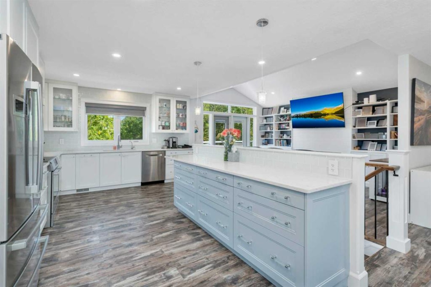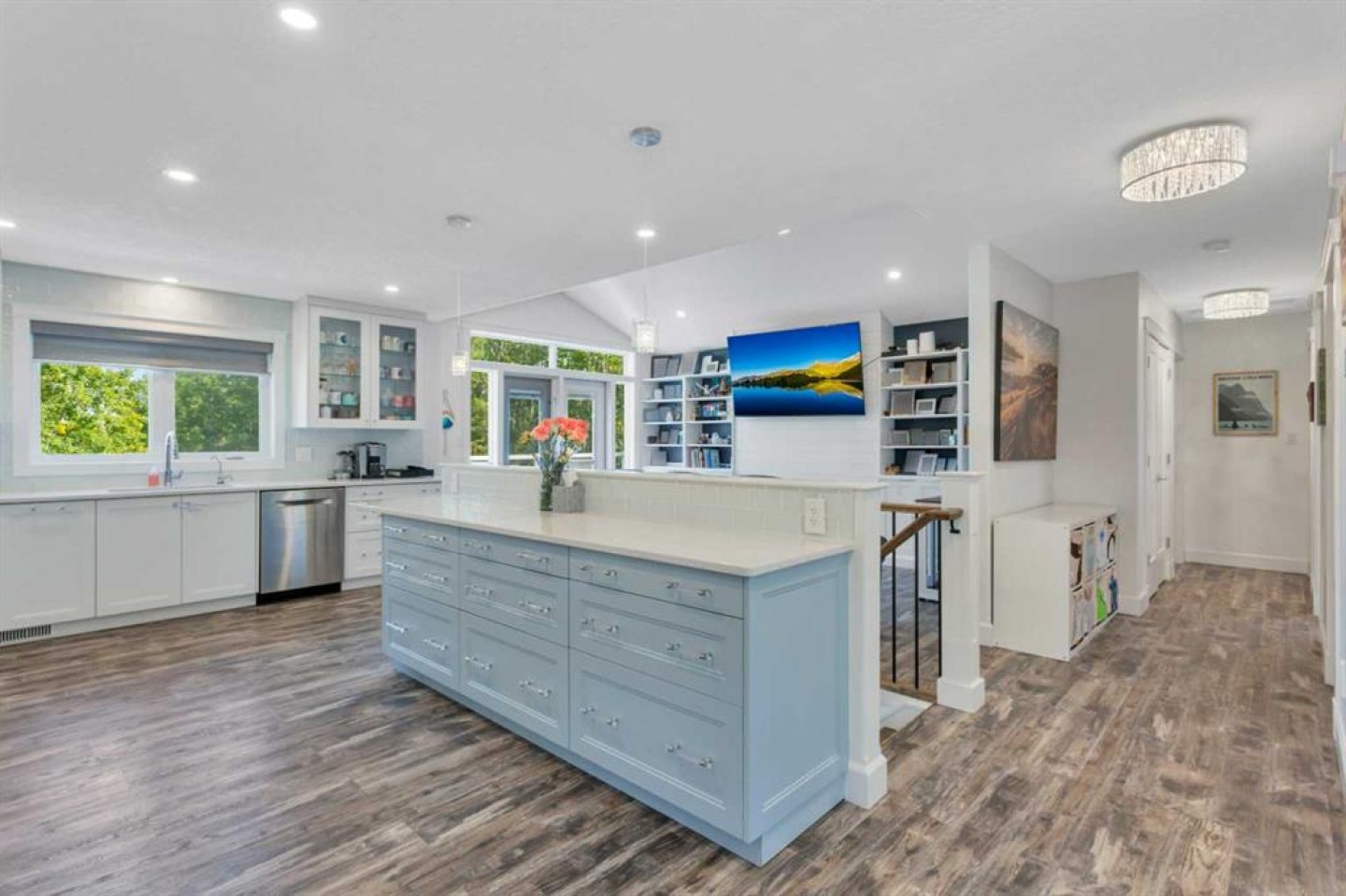 This stunning acreage is located in the Blindman Ridge subdivision, just minutes from Red Deer and all on pavement. Private, tranquil and surrounded by trees, this walk-up bungalow has been updated and modernized and is well suited for families or your dream retirement home. There is a den/bedroom at the main level entrance with a gorgeous 3 piece bathroom with beautiful tiled shower. The family room is bright and spacious with cozy gas fireplace. The Laundry area and mudroom offers tons of space and storage closets with access to the backyard and to both the heated attached 21x20 garage and the 36x26 heated shop c/w 10' ceilings and 220 power. Upstairs is an open concept and very bright living space with vaulted ceilings and built in cabinetry in living room. The functional kitchen space has quartz counter tops, tons of cabinets and high end s/s appliances. Windows surround the dining area allowing beautiful views to the outdoors. There are 3 bedrooms on the main floor. The primary is a good size with built in wardrobes offering tons of storage & a beautiful 4 piece ensuite with tiled shower. 2 additional bedrooms share the spacious 4 piece bathroom with soaker tub. The deck from the living room has been completely redone and there is an expansive lower level deck in the backyard with hot tub and lots of room for outdoor furniture. The surrounding outdoor space has a fenced area with dog kennel and there is a play center and trampoline for the kids. There is ample space for additional outbuildings & RV parking. Minutes to both Red Deer & Sylvan Lake, yet far enough away to be peaceful and relaxing, this is a perfect place to call home.