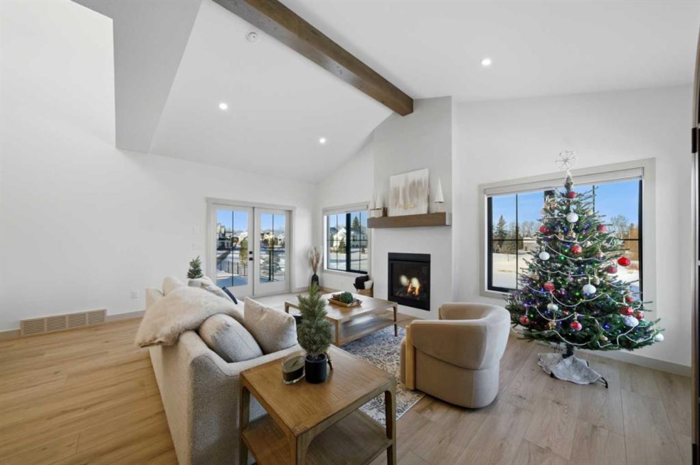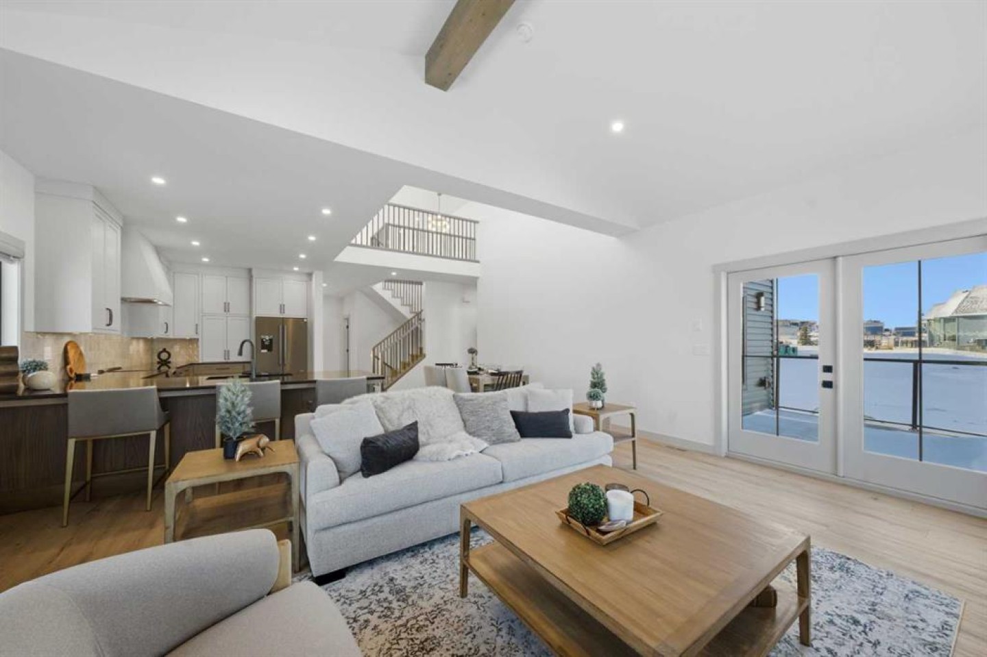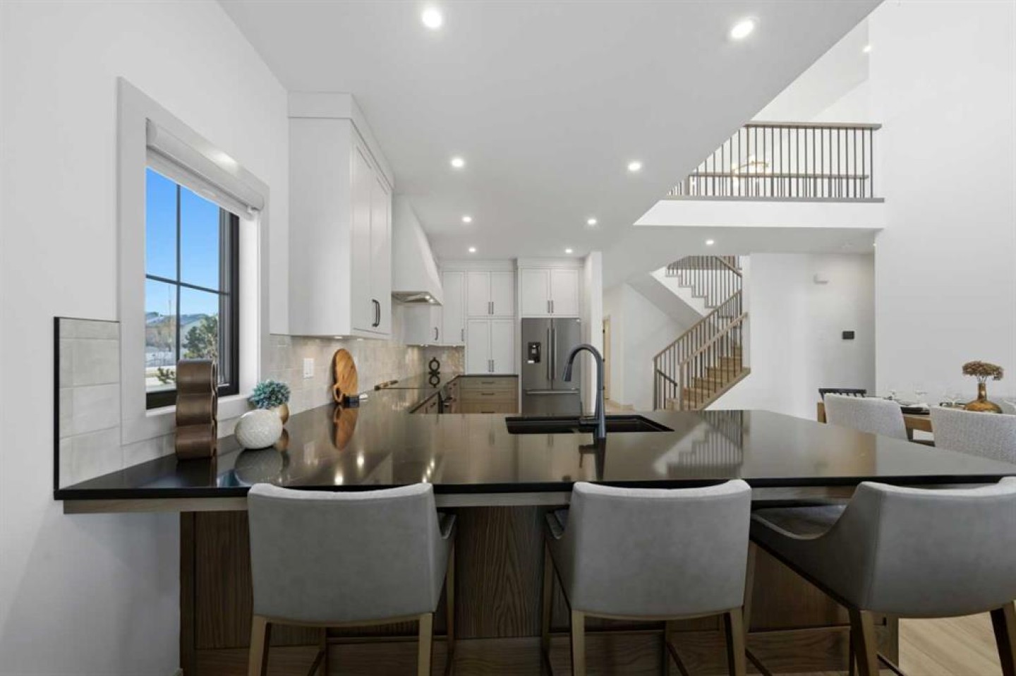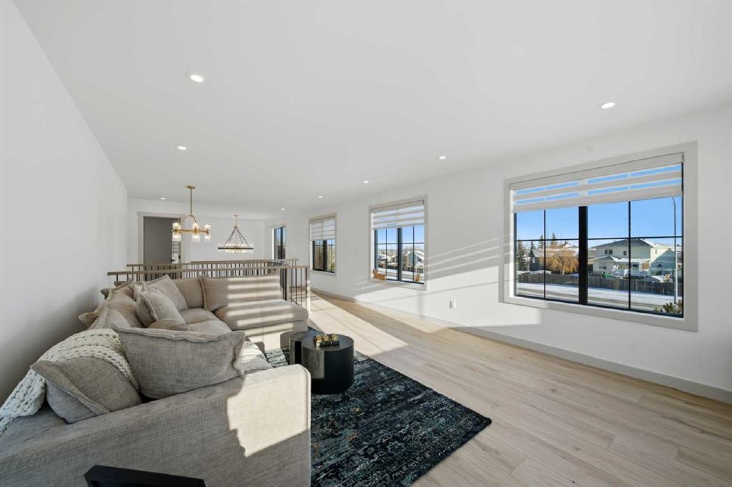 Tucked into the prestigious Sixty West community of Sylvan Lake, this exceptional luxury bungalow with loft is a masterclass in refined design, comfort, and craftsmanship. Thoughtfully planned for elegant main-floor living, the home showcases over 3,750 sq. ft. of beautifully finished living space, blending timeless architecture with modern sophistication. The main level features expansive living areas adorned with luxury vinyl plank flooring, custom cabinetry, and durable Cambrian quartz countertops, creating a polished yet inviting atmosphere ideal for both entertaining and everyday life. A versatile upper-level loft offers additional space for a home office, bonus room, or private guest retreat, while maintaining an open connection to the main living areas below. The primary suite is a true sanctuary, complete with a spa-inspired ensuite featuring heated tile floors and premium finishes. Downstairs, the fully developed lower level is designed as the ultimate entertainment hub, offering generous space for recreation and hosting. Completing this turn-key residence are premium mechanical systems including a high-efficiency boiler with hot water on demand, a full appliance package, custom blinds throughout, and a heated garage with epoxy floors and radiant in-floor heatingall set within one of Sylvan Lakes most sought-after luxury neighbourhoods with 25 acres of trails, parks, ponds, and natural spaces.