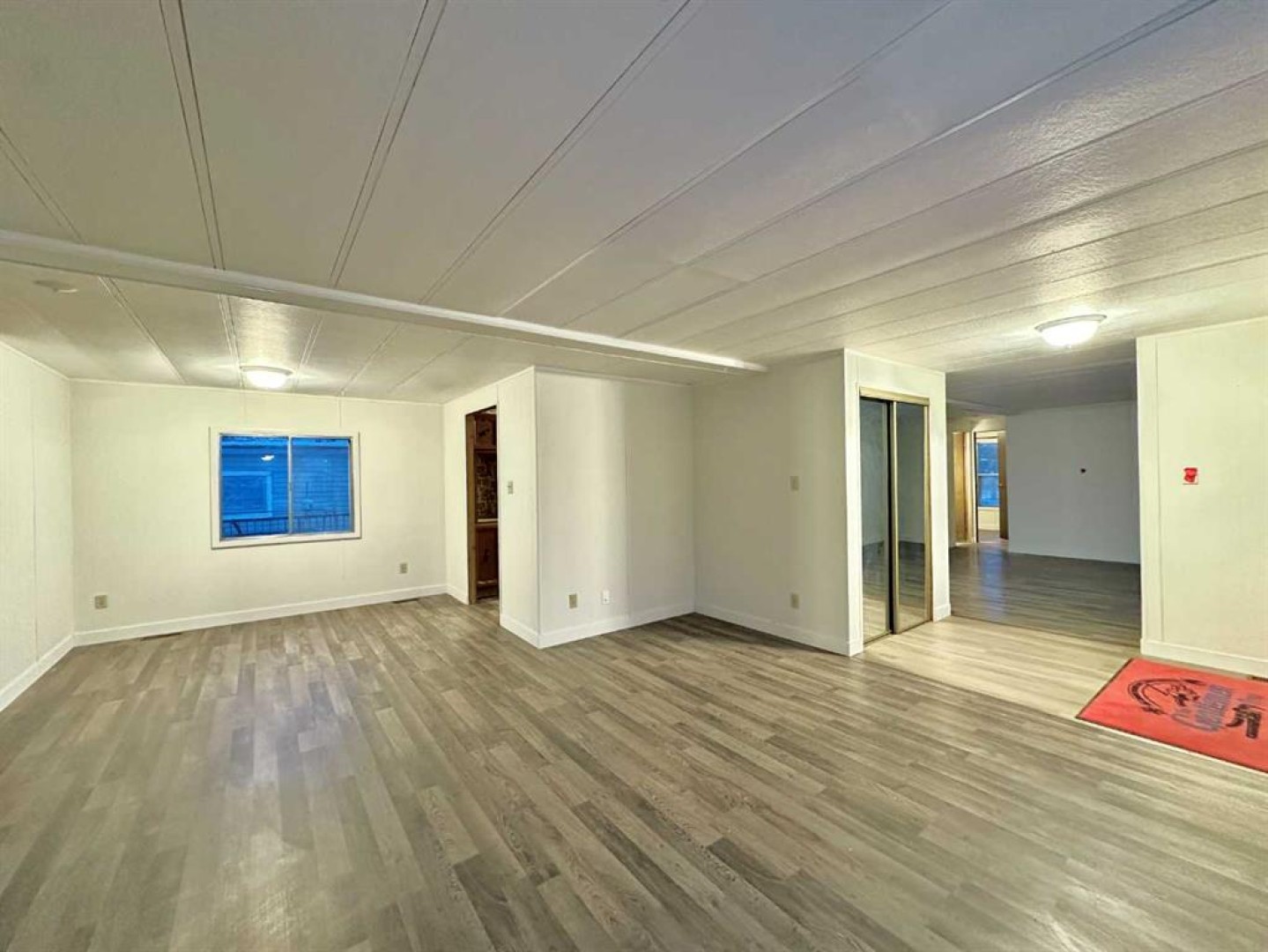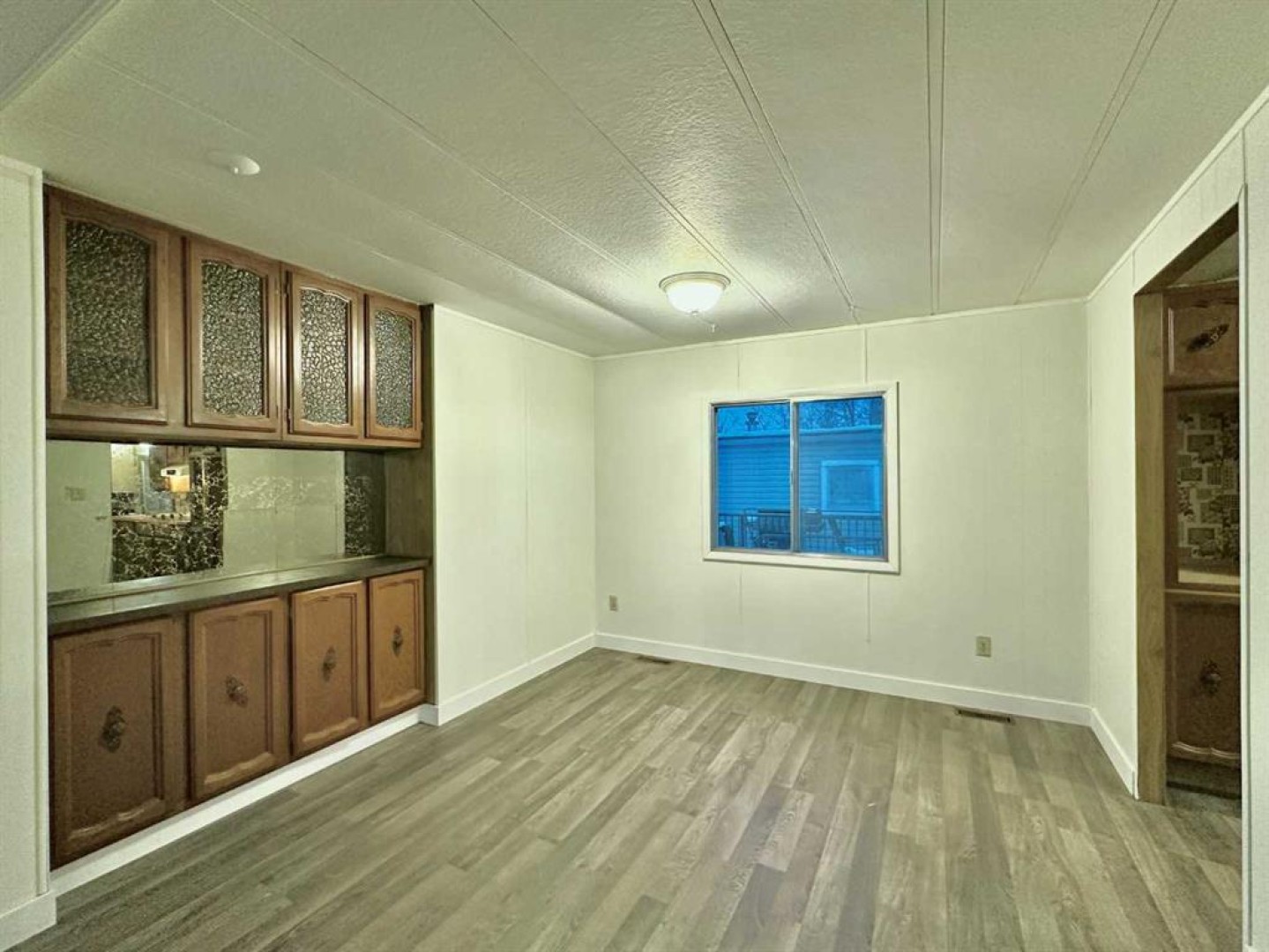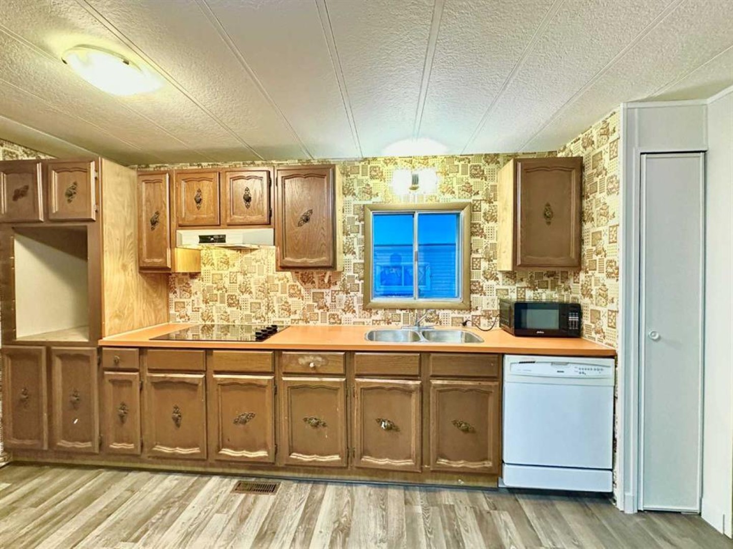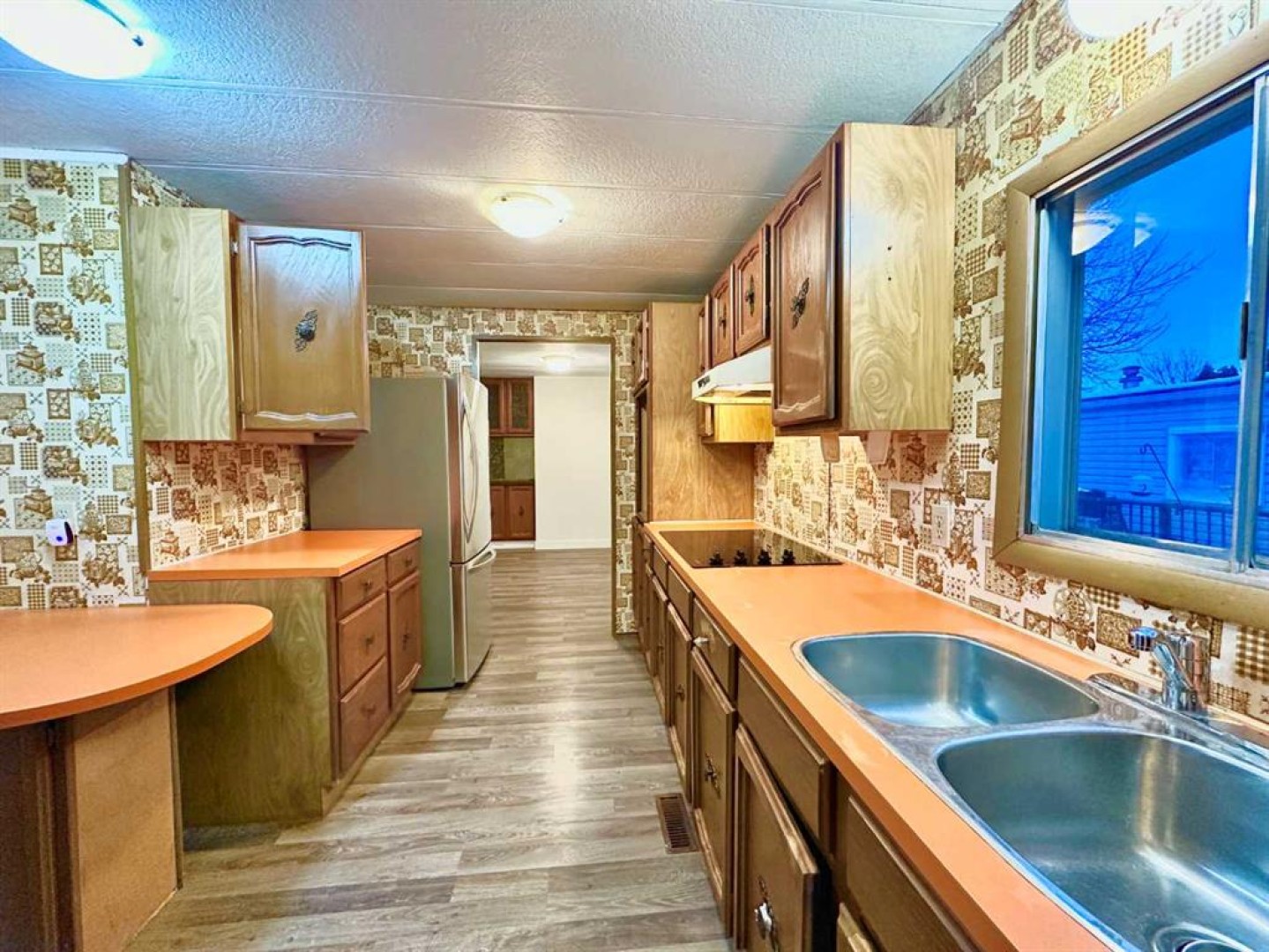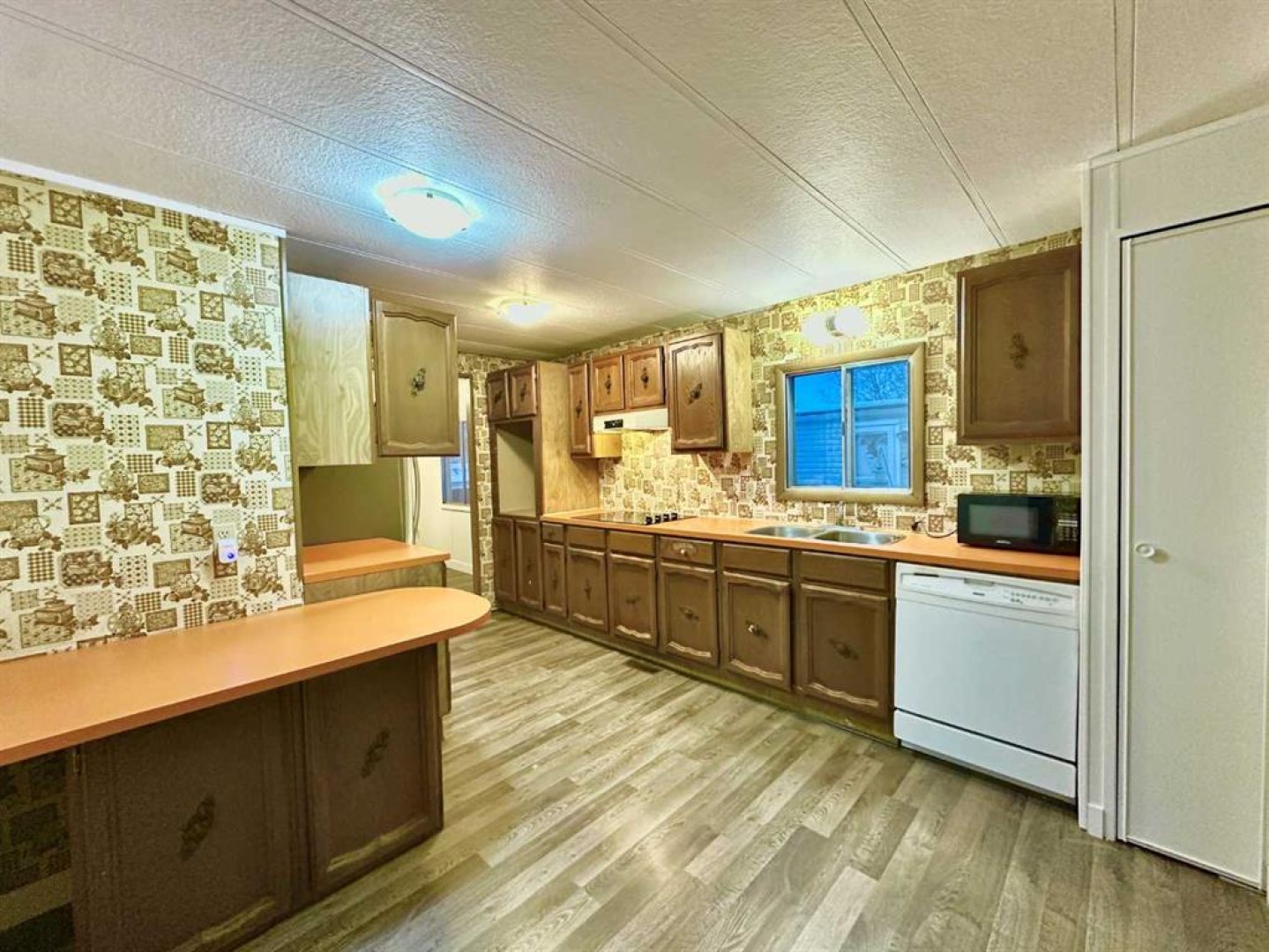 Opportunity knocks at Calgary Village Park in the Red Carpet community of Calgary!Pride of ownership is very evident in this home. 1975 Safeway Double Wide on a huge corner lot. Comes with a Living room and a Family room,. Absolutely beautiful private yard LOCATED in the Red carpet Calgary Village Mobile Home Park.Home has been very well maintained. This home is move in ready. Roof Singles and Hot water tank replaced .3 Large bedrooms, 4 pc main bath. Large Master bedroom with a 4 pc ensuite bathroom, ensuite includes a soaker tub. walk in closet. Kitchen comes with entique style and colour Countertop range, Fridge, Dishwasher, Washer and Dryer.Good sized Dining Room with built in China Cabinet, Large Family Room, plus a good size Living Room, Laundry Room off Kitchen. Laminate and LVP flooring. Very Good size yard of the corner lot. Front Drive in for parking. This home and lot has Huge potential to increase the value of property with updates. Close to the Park facilities. This mobile home is situated in the Red carpet Calgary Village Mobile Home Park. Calgary Village is a quiet, family friendly community, all sites in the park rent for $1,299 per month which includes water, sewer, garbage removal and clubhouse amenities. The clubhouse offers a modern exercise room, a games room with pool table, common areas with large screen TV., community kitchen, bbq's and children's playground. There are no additional costs for these amenities. This is a family friendly and pet friendly community. You’re also within walking distance to off-leash dog parks, pathways, Elliston Lake/Park, and Tim Hortons, plus just a short drive to Costco, Walmart, shopping, and Stoney Trail.