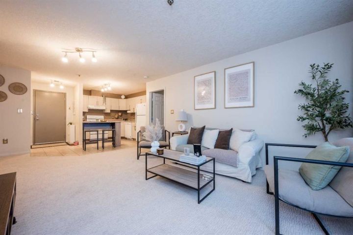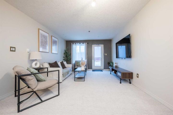 This Immaculate + Affordable 2 bed 2 bath condo with 2 parking stalls will be sure to please. Situated in central Grande Prairie, close to several amenities including Arc Rec center, restaurants , public bus stops, grocery stores, coffee shops, and connivence stores. Open concept boasted between the kitchen, dining and living room. Master bedroom is spacious and hosts full bathroom en-suite. Second bedroom is also a good size, and just outside of it you will find full bathroom and laundry room. Living room has sliding doors onto your concrete patio great for BBQing. Whether you are looking to enter into low maintenance home ownership or adding another door to your rental portfolio this condo will be sure to fit all the wish list items, book your viewing today.