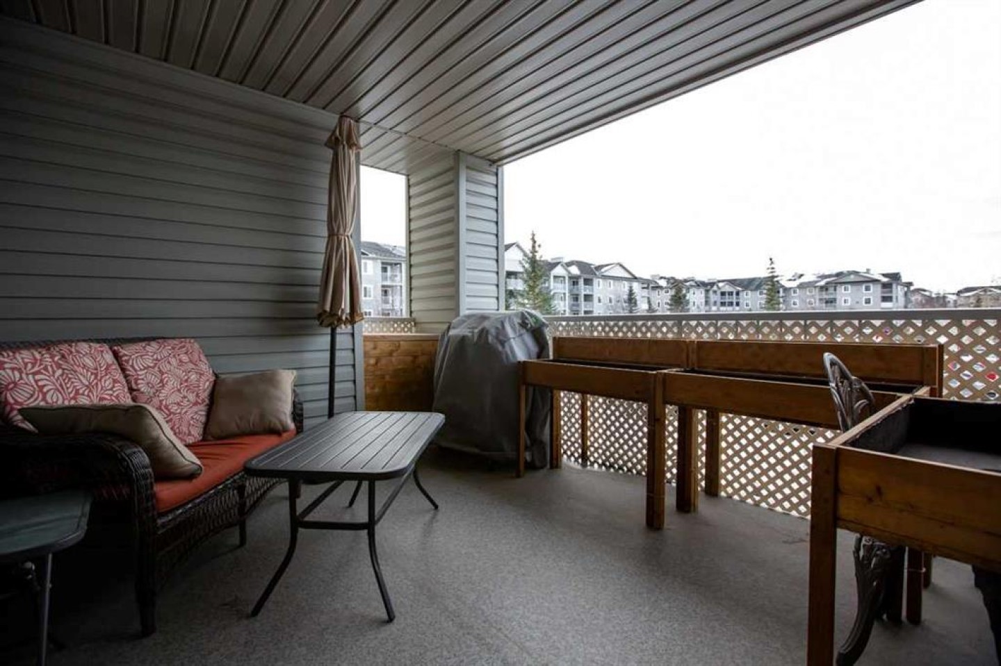 Great location and the largest floor plan in the complex. This 2 bedroom 2 full bathroom unit on the 2nd floor is stunning. Condo fees include ALL UTILITIES. This 1,050 sq ft open concept unit feels very spacious and features a massive west facing patio, suitable for a BBQ, garden beds, or hosting. The large kitchen has great storage, counter space and brand new flooring (renovated Nov 2025) and premium SS appliances. Both bedrooms are a great size. The primary bedroom has a walk through closet leading to a 4pc ensuite bathroom. The 2nd bedroom also has a 4pc bathroom just next to the entrance and 2 large closets for extra storage space. This unit comes with a full laundry room with a brand new washer and dryer (replaced Sep 2025) and a ton of extra storage. Includes a titled underground, heated parking stall. This well-managed and quiet complex has some of the best visitor parking in Airdrie. Located in a very central part of the city, close to schools and shopping with easy access to the highway for those who commute. Book your showing today!