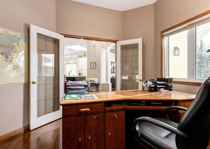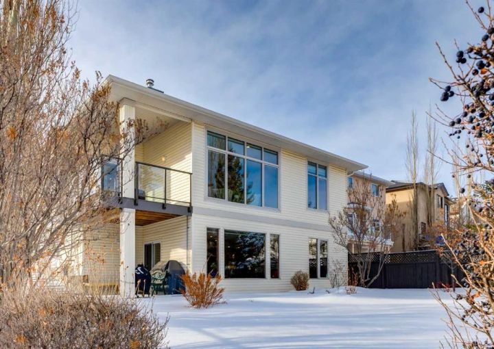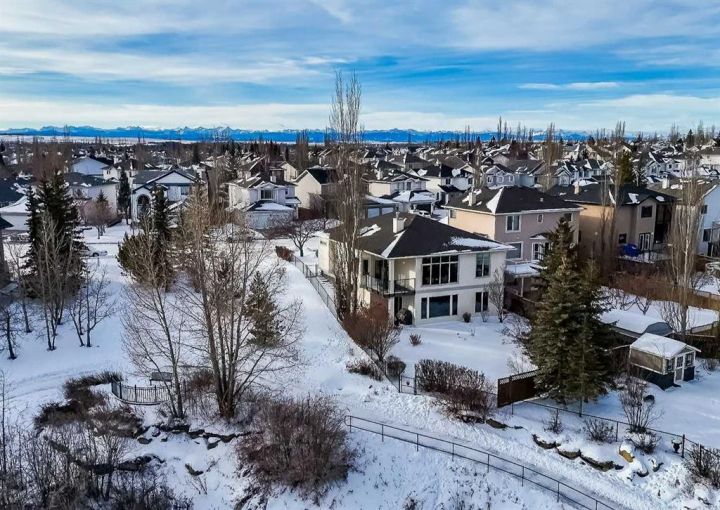 Nestled in the highly sought-after community of Tuscany in Northwest Calgary, this exceptional walkout bungalow presents a rare and unique opportunity to own a home siding/backing directly onto a serene green space and ravine. Meticulously maintained by the original owners, this home exudes pride of ownership from the moment you arrive. Step inside to be greeted by soaring 10' ceilings on the main floor, timeless solid red oak hardwood flooring, and an abundance of natural light flooding through large windows and a skylight. A front den with elegant French doors provides the perfect home office or flex space and the formal dining room features a huge southwest-facing window. The heart of the home is the beautifully updated kitchen by Legacy Kitchens, boasting granite countertops, soft-close dovetail maple drawers, and premium Jenn-Air stainless steel appliances—including an induction stove and convection microwave hood fan. The adjacent breakfast nook overlooks the ravine and pathway system, where wildlife sightings are common. Flow seamlessly into the spacious living room, centered around a stunning three-sided fireplace. Step out to the maintenance-free composite deck with glass railings, complete with a BBQ gas line for effortless outdoor entertaining. The primary bedroom retreat offers updated tile flooring, a luxurious jetted tub, separate shower, and a generous walk-in closet with built in organizers. The 1/2 bath and convenient laundry/mudroom featuring a sink has direct access to the double attached garage and completes the main floor. The fully finished walkout lower level is where you'll find a bright family/media room, a built-in bar with microwave, two additional bedrooms, and a full bathroom—perfect for guests or extended family. There is plenty of storage in the utility/mechanical room. Outside the established yard enhances the peaceful setting, while the side-onto ravine location invites abundant wildlife—spot deer, moose, and more—right from your windows and outdoor spaces. Modern comforts/updates include central air conditioning, powered blinds, an on-demand tankless water heater, water softener, HRV system and majority of windows on the main floor have been updated with Lux Vinyl windows. In the heart of Tuscany—with its extensive pathway network connecting to the 170-acre ravine system, excellent schools, LRT access, and the exclusive Tuscany Club—this home combines luxury, nature, and convenience in one extraordinary package. Properties like this are exceedingly hard to find, offering unparalleled privacy, tranquility, and a front-row seat to nature's beauty. Don't miss this truly rare gem. Click on media for the video and book your private showing today!