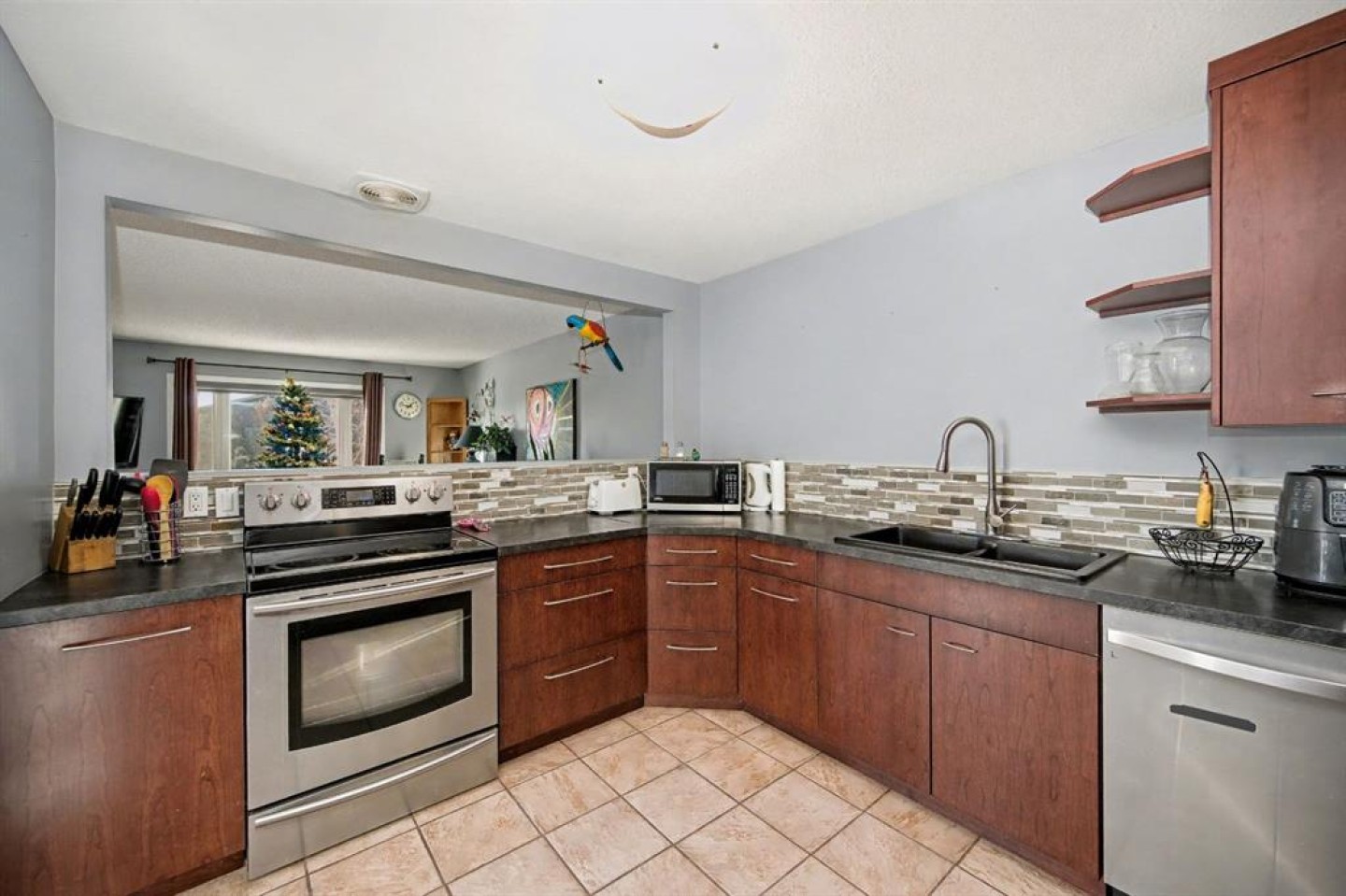 This BRIGHT and CHEERY home has seen many UPGRADES over the years, including an updated kitchen with custom cabinets featuring deep drawers, a pantry, and a built-in freezer. The main floor offers an open layout with plenty of windows, allowing for abundant NATURAL light. Patio doors off the dining area lead to a massive DECK and fenced backyard, where you can enjoy watching the annual Canada parade from the comfort of your home.