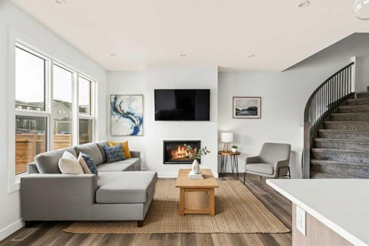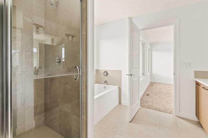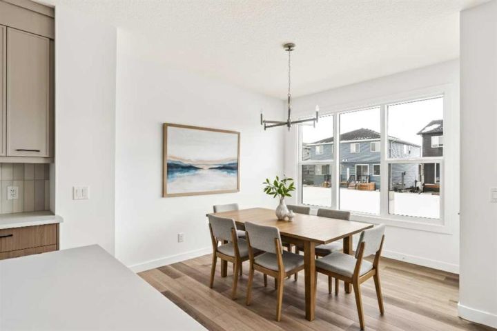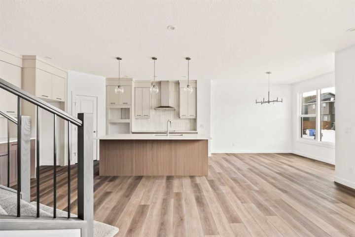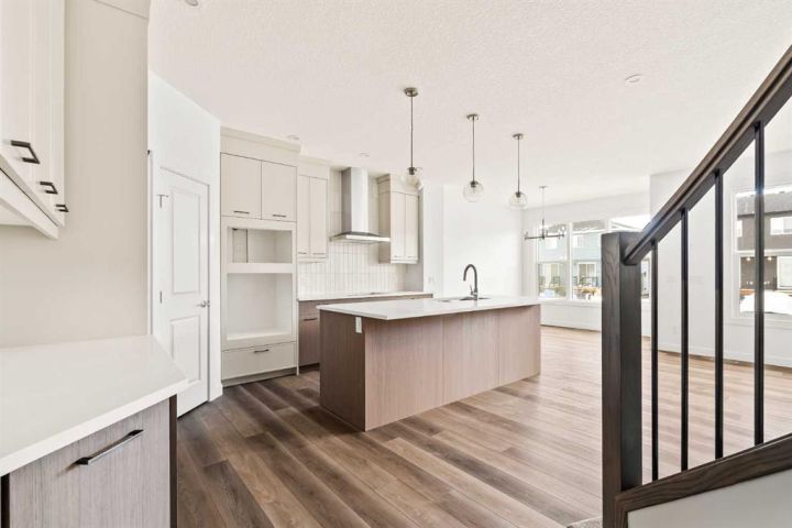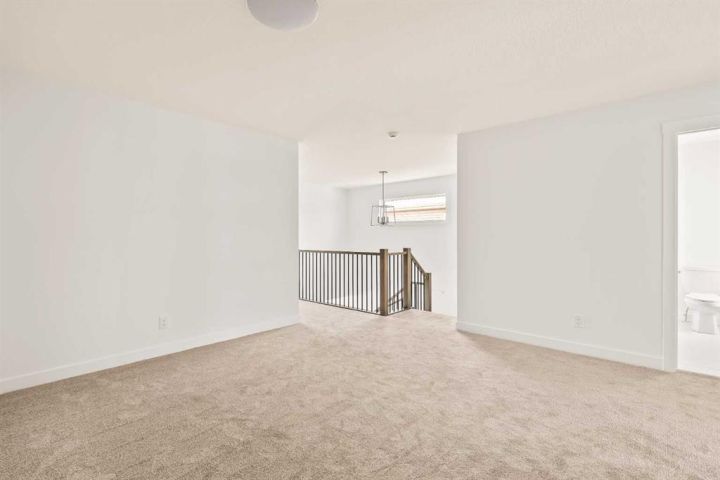 Introducing the Robson 24 by Brookfield Residential - a beautifully designed, fully move-in ready family home showcasing the modern Prairie elevation and situated on a large conventional lot (not zero lot line)! Thoughtfully planned with over 2,200 sq. ft. of developed living space above grade, this home perfectly blends style, function, and flexibility for today’s family lifestyle. The grand front foyer welcomes you with a sense of space and light, while the open-concept layout ensures seamless flow between the living, dining, and kitchen areas. The main level offers a spacious living area with a design that is perfect for entertaining. The kitchen is complete with an upgraded appliance package including a built-in chimney hood fan, built-in oven & microwave and a gas cooktop. The kitchen overlooks both the living and dining areas with a central fireplace in the great room providing the perfect space for cozy winter nights. A wall of windows across the back of the home allows for natural light from the west-facing backyard to flood the space with sunshine all day long. The main level is complete with a bedroom and full bathroom - perfect for a guest room, multi-generational living or easily can be converted to a home office space. At the heart of the home, a striking spiral staircase becomes an architectural centerpiece - a rare design feature that elevates this home beyond the ordinary. Upstairs, the curved staircase leads to a central bonus room that smartly separates the primary suite from the secondary bedrooms, offering privacy and a natural flow to the upper level. The primary retreat features a spa-inspired 5-piece ensuite with a private water closet, dual sinks, a soaker tub, and a walk-in shower, along with an expansive walk-in closet. Two additional bedrooms, a full bathroom, and a convenient upper-floor laundry room complete the second level. The undeveloped basement offers a private side entrance and awaits your creative vision - perfect for a future legal suite (subject to municipal approval), home gym, or media space with 9' foundation walls making development that much easier for a brighter and more open space. Laundry rough-ins with sink hookups are already in place for added convenience. Outside, the west-facing backyard is ideal for soaking up the sun and provides the perfect outdoor retreat while keeping the main living areas bright year-round. Situated on a large conventional lot, this home has a traditional side yard and offers an incredible outdoor living space. Backed by Brookfield’s comprehensive builder warranty and the Alberta New Home Warranty Program, this brand-new home allows you to purchase with complete confidence. With its timeless finishes, distinctive architectural details, and move-in-ready convenience, the Robson 24 is truly the perfect place to call home.