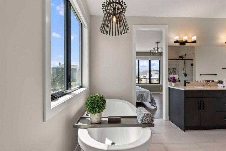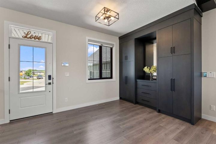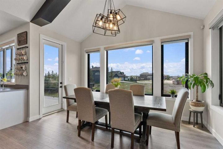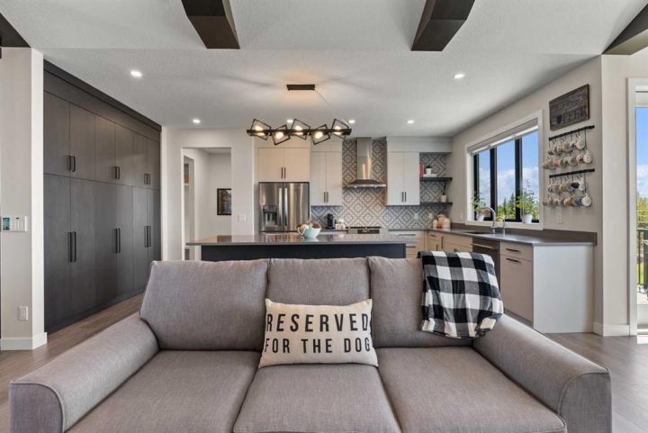 Discover this exceptional Monterra residence, situated just outside Cochrane. Offering nearly 3,400 square feet of thoughtfully developed living space on a generous 0.45-acre lot, this home delivers the premium features buyers expect. The main level showcases an open, airy design with vaulted ceilings that bath the living areas in natural light. The gourmet kitchen features a large island and soft-close cabinets, seamlessly connecting to the dining and living spaces—an ideal layout for entertaining family and friends. The private primary suite provides a retreat with an elegant ensuite that includes a soaker tub, a glass-enclosed shower, and dual vanities, complemented by a large walk-in closet with built-in organizers. Convenience is at hand with a main-floor laundry located along the corridor to the heated, insulated triple-car garage, ensuring everyday practicality. Step outside to the expansive outdoor living spaces, including 12x28-foot decks on both levels, perfect for entertaining and relaxation. The lower-level deck features a hot tub and a remote controlled enclosure offering 3 season comfortability, a serene retreat with stunning mountain views. Throughout the home, custom built-ins enhance both aesthetics and functionality, including a dedicated home office with integrated cabinetry. A built-in pantry provides abundant storage for daily living and entertaining needs. The finished lower level adds two additional bedrooms, a spacious recreation room that opens to a large patio, and a versatile three-season room equipped with retractable screens, enabling comfortable year-round enjoyment of the outdoors. This property blends luxurious finishes with practical design and breathtaking natural scenery, creating an outstanding living and entertaining environment. If you’re seeking a refined, well-appointed home in a tranquil Monterra setting, this residence represents a remarkable opportunity.