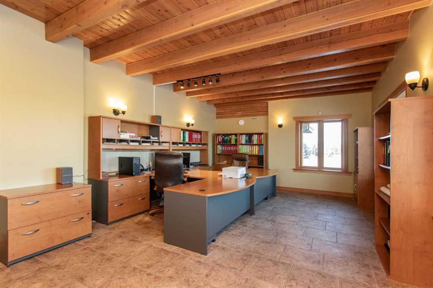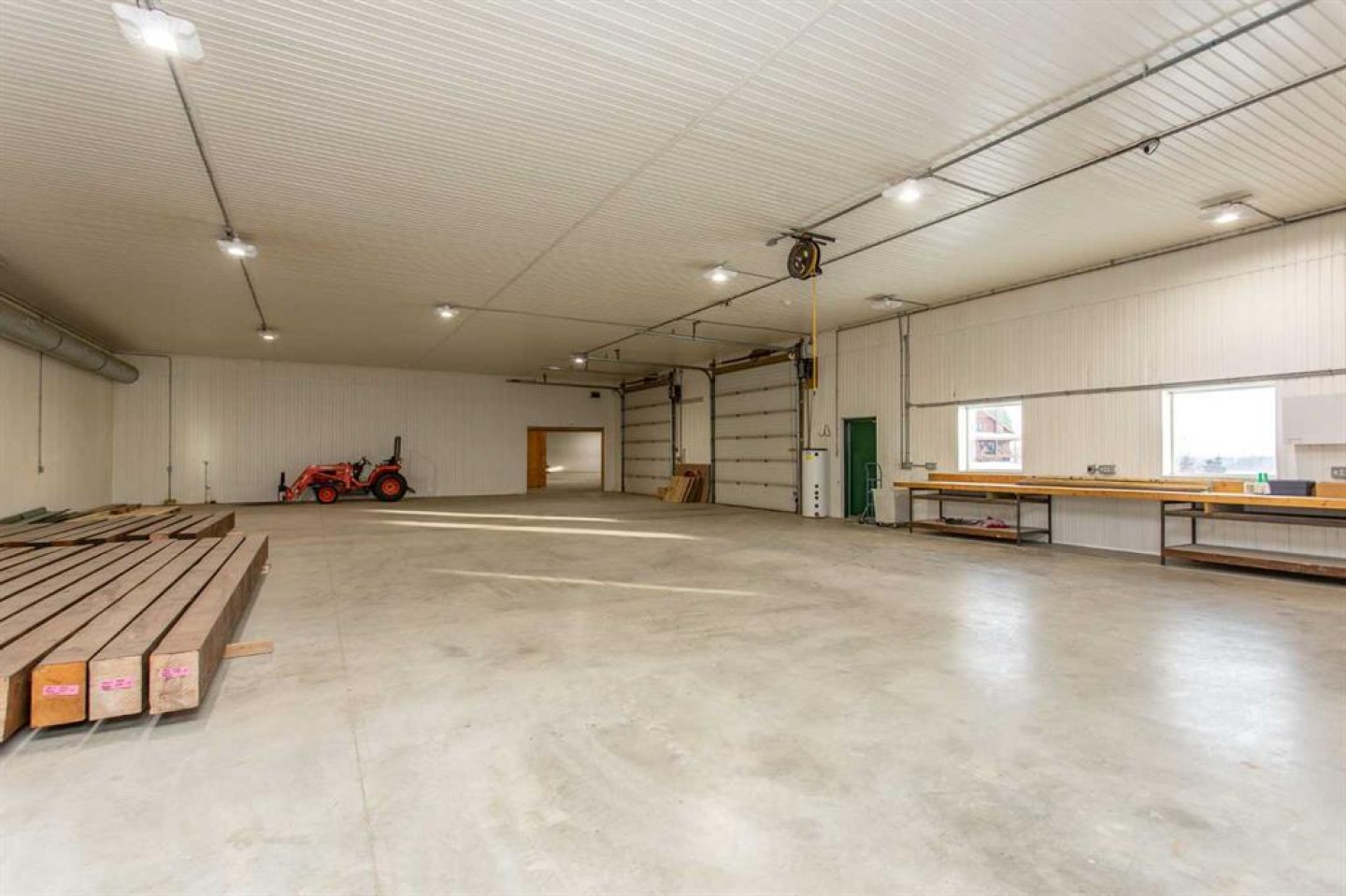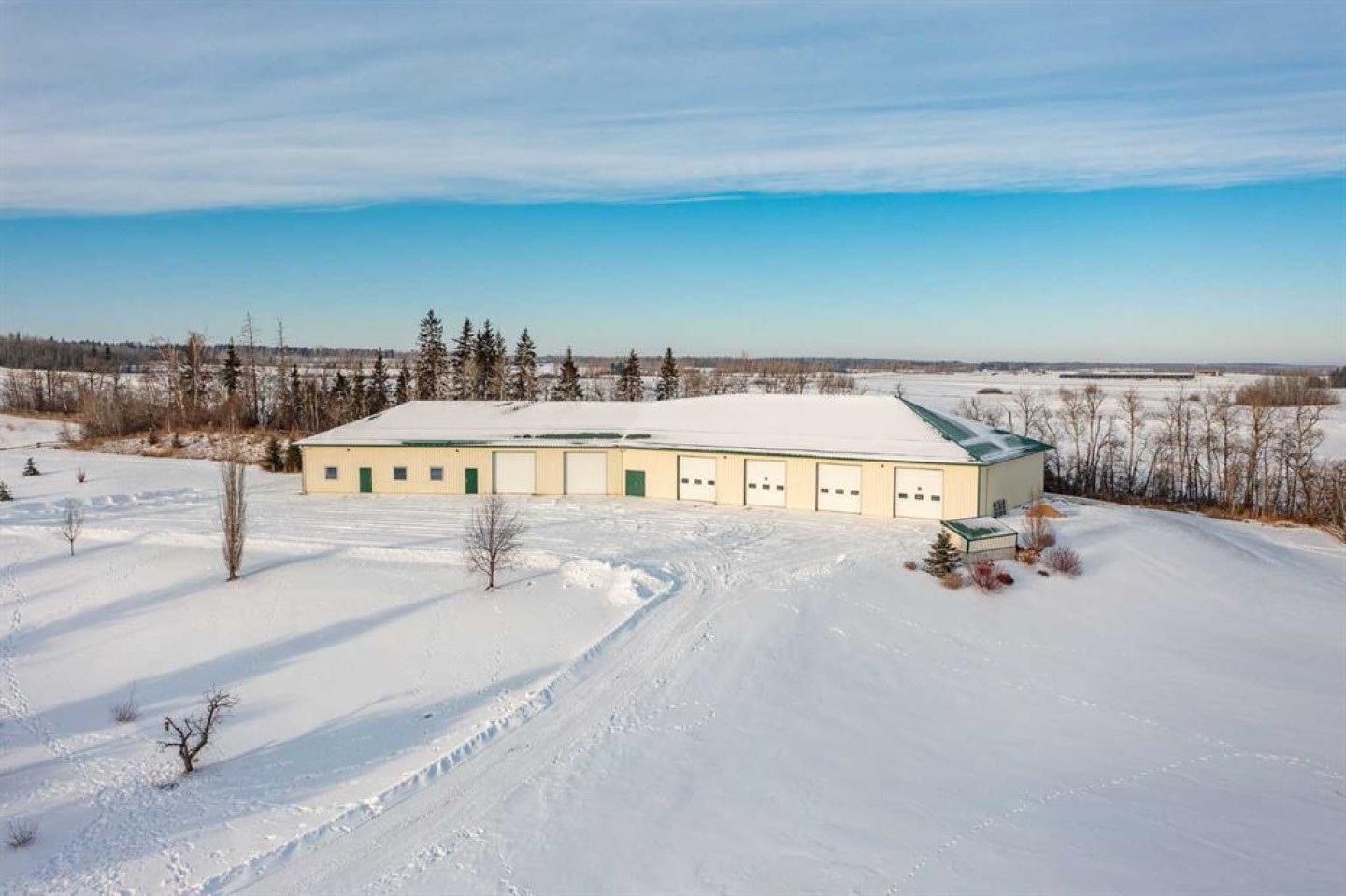 Completing the property is an impressive 13,500 sq ft shop, fully insulated and heated with radiant heat. With 14-ft ceilings, five overhead doors, mezzanine, office, kitchen, bathroom, mechanical rooms, 220V services, air compressor lines, floor drains, and a 20kVA diesel backup generator, the space is ideal for business use, storage, or hobbies.