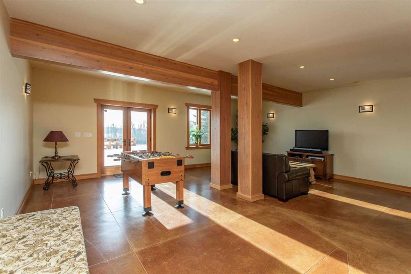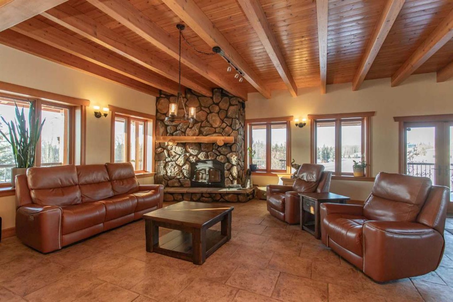 At the heart of the property is a stunning European-inspired, chalet-style two-storey home built in 2008, offering over 7,000 sq ft of developed living space. Constructed entirely with ICF concrete (no stick framing), the home is remarkably solid, quiet, and energy efficient, featuring one-foot-thick exterior walls, concrete floors throughout, and a Super-B insulated roof.