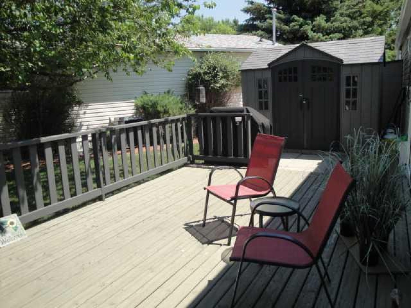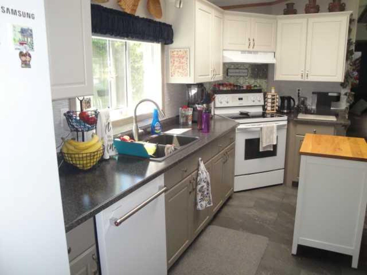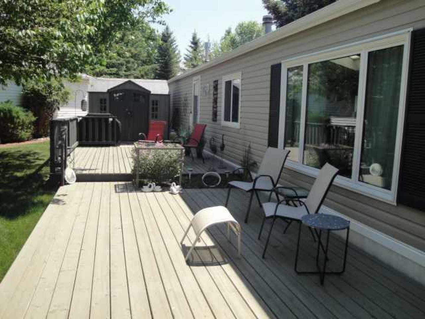 This beautifully maintained 1216 sq ft, 3 bedroom, 2 bathroom home in a desirable active adult community offers extensive updates throughout, including new lighting and plug-ins, two new storm doors, a new front window, and flooring replaced within the last two years. The bright, fully updated kitchen features pull-out shelves and newer appliances, while the ensuite boasts a newly installed walk-in shower. The inviting living room includes a cozy electric fireplace, perfect for year-round comfort. Additional highlights include a hot water tank replaced in 2018, new skylight, new smoke detectors, central air conditioning, and a recently sealed driveway. Outside, enjoy a large east-facing deck offering some shelter from the wind and overlooking a spacious yard area, along with the convenience of two sheds for extra storage space. Buyer must be approved by Parkbridge Estates Management.