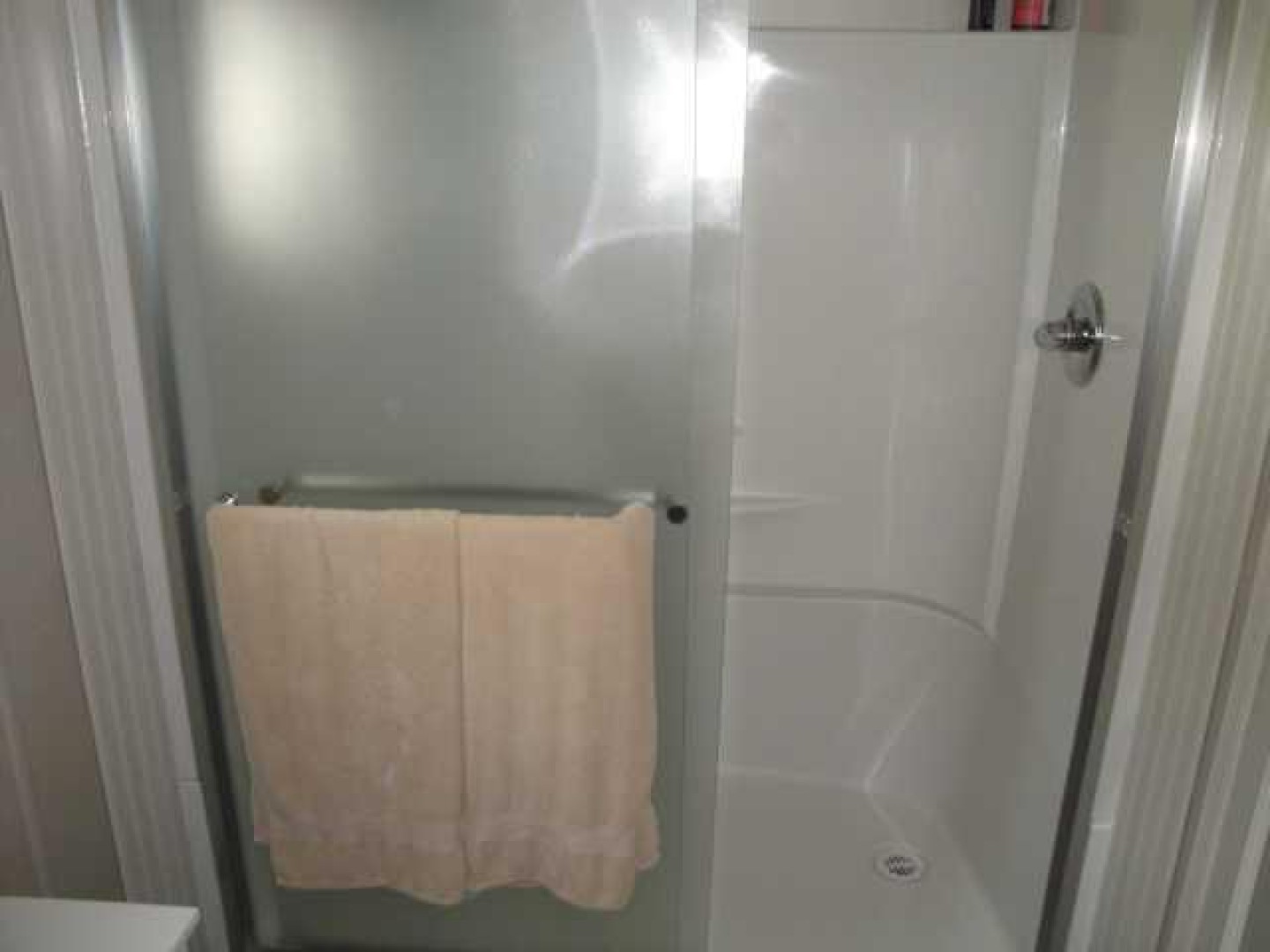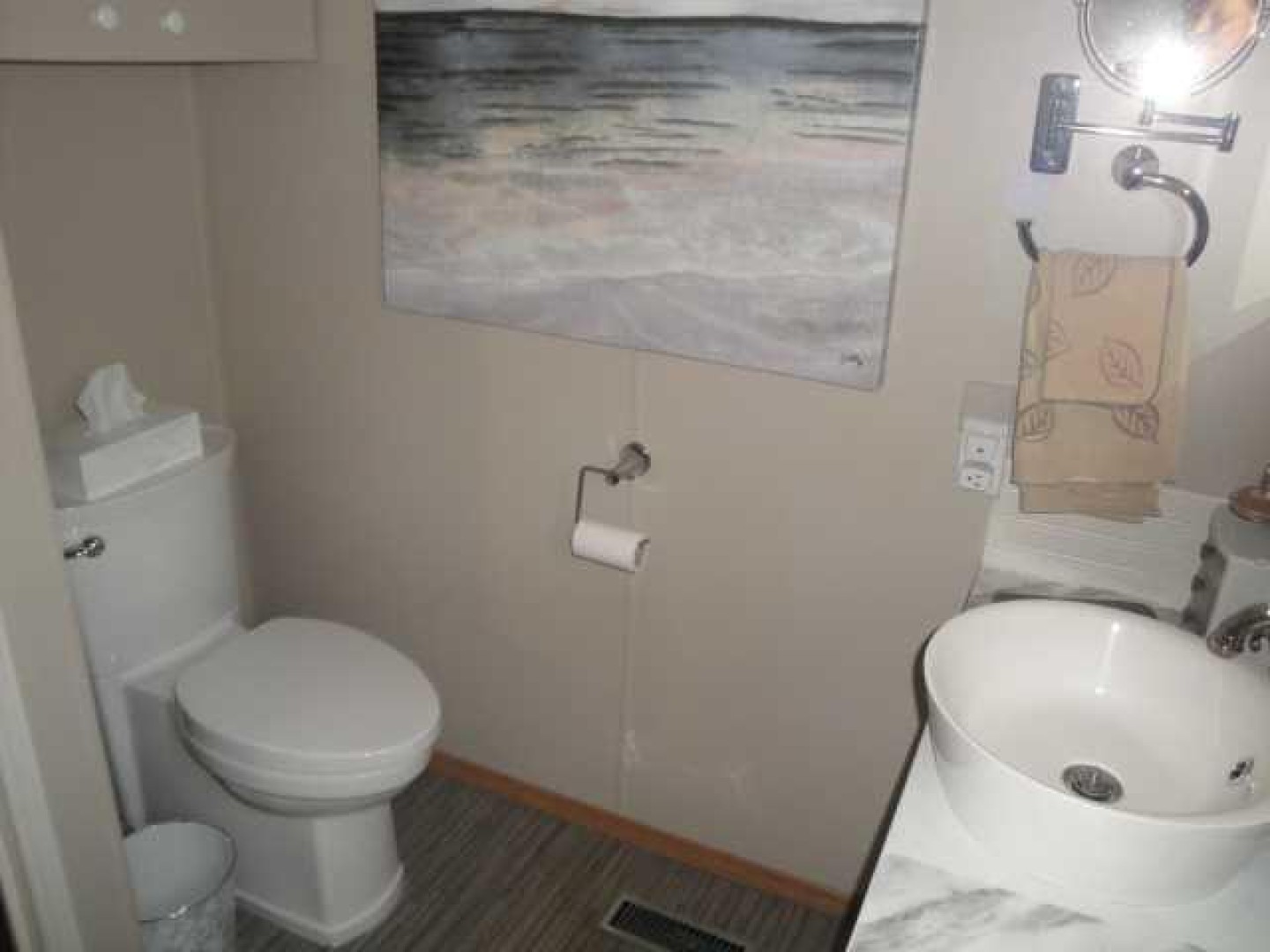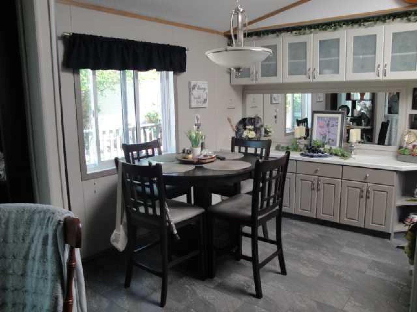 This beautifully maintained 1216 sq ft, 3 bedroom, 2 bathroom home in a desirable active adult community offers extensive updates throughout, including new lighting and plug-ins, two new storm doors, a new front window, and flooring replaced within the last two years. The bright, fully updated kitchen features pull-out shelves and newer appliances, while the ensuite boasts a newly installed walk-in shower. The inviting living room includes a cozy electric fireplace, perfect for year-round comfort. Additional highlights include a hot water tank replaced in 2018, new skylight, new smoke detectors, central air conditioning, and a recently sealed driveway. Outside, enjoy a large east-facing deck offering some shelter from the wind and overlooking a spacious yard area, along with the convenience of two sheds for extra storage space. Buyer must be approved by Parkbridge Estates Management.
