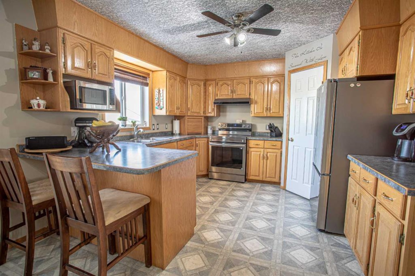 Before entering you will want to take a moment and savour the day on your covered porch. You're sure to fall in love with this gorgeous 5 bedroom/3 bath bungalow home sitting on its very own beautiful fenced landscaped yard, perfectly located in a desirable neighbourhood , steps away from the Christian Academy School and merely a short walk away from The Village . As soon as you enter you are greeted by a wide entrance, with a fabulous office space to your left and the Living Room featuring a perfectly placed picture window allowing an abundance of natural light to stream in creating a soft warm glow throughout . The heart of this delightful home is the abundance of wood cabinetry offering a great functional layout, a generous amount of counter space including a comfortable Eat -up Breakfast Bar and a walk-in pantry, with a garden door bringing in lovely views and warm morning sunshine ,the well appointed deck will be filled with leisure afternoon naps or enjoy a late evening fiesta under the Northern skies among friends and family. Down the hallway hosts two well appointed bedrooms and a lovely 4 piece Bath with a tub/shower combo .The Primary Suite sports a walk- closet ,an en-suite with a jacuzzi tub to and plenty of space for the King size bed . The lower level has a very functional layout, On the cooler evenings family and friends will gather before the crackling cheer, pleasant aromas and gentle flames of the wood- burning wood stove, while enjoying time around the Wet Bar sharing old stories and create new memories that will last a lifetime! A great Family Room to enjoy time watching netflix and hosting game nights . There are 2 additional Bedrooms , Bath, Laundry Room. Add to this the Massive detached heated garage, the over-sized shed with a playhouse upstairs ,greenhouse and garden boxes for your own herbs and spices . A beautifully-finished home, a picturesque park-like yard, a prime location, great extras and endless potential...this amazing home must be seen to be fully appreciated!Your NEW HOME AWAITS…