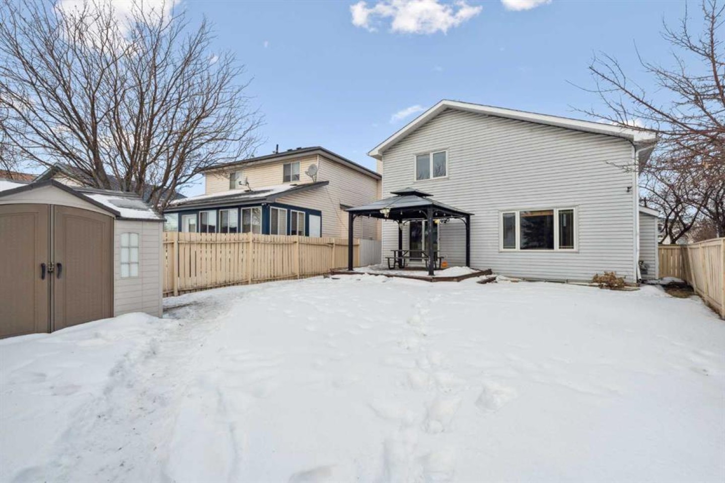 Outside, enjoy a fully fenced backyard featuring a raised deck with gazebo and a storage shed—perfect for relaxing or entertaining. Conveniently located close to parks, schools, shopping, public transit, and major roadways, this home offers excellent accessibility while remaining tucked into a well-established Calgary neighbourhood.