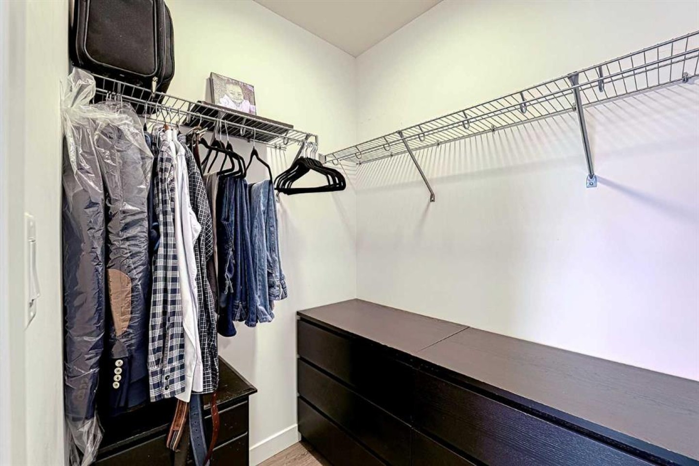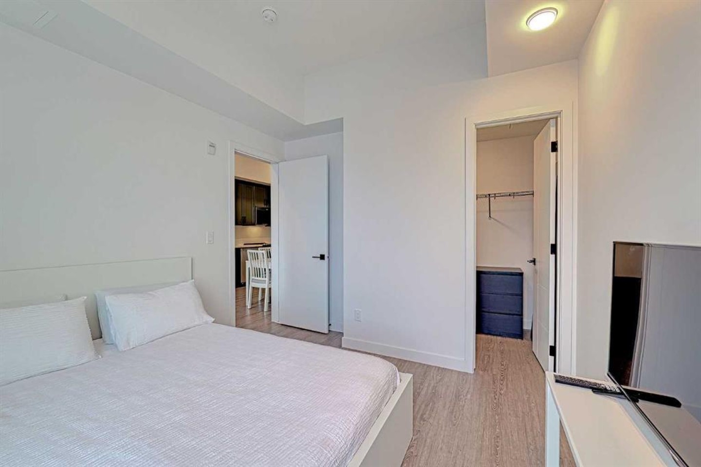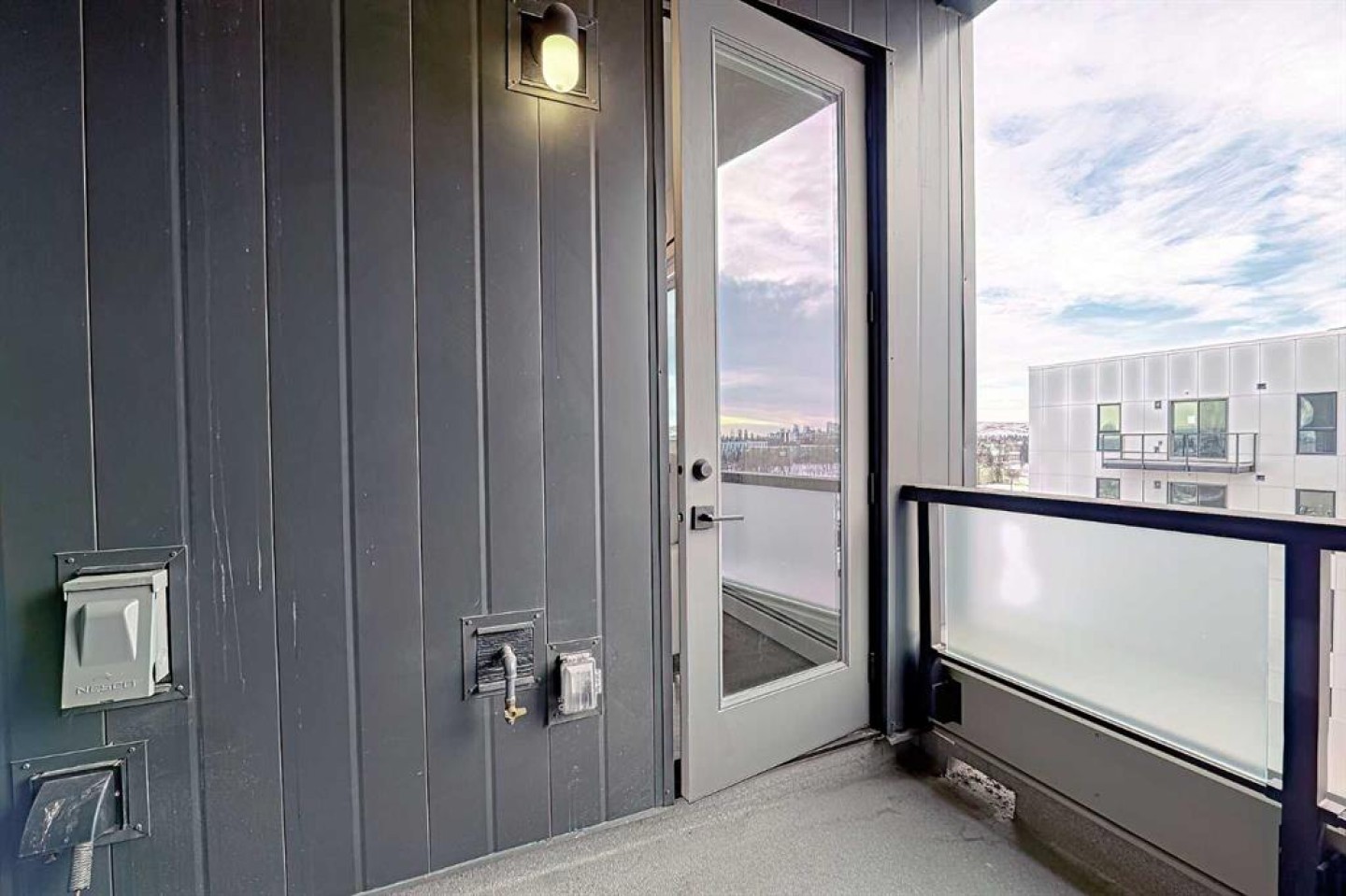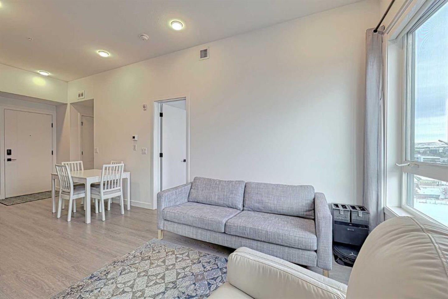 Live in one of Calgary's vibrant neighborhoods; UNIVERSITY DISTRICT! Everything you need at your fingertips; Restaurants, Pubs, Entertainment, Shopping Mall, Parks, Hospitals, etc... This clean, like new, TOP FLOOR unit has luxurious interior finishes, 10 ft high ceilings (only available on the top floor), private covered balcony that's great for year around use, titled parking stall (#21) located close to the elevator, a storage unit (#141) is just across the hall from the unit's door, and a fitness facility on the same floor as the unit. This home's open floor plan combines modern style with comfort; ample storage, stainless steal appliances, gorgeous grey cabinetry, beautiful easy to maintain vinyl plank flooring, the list goes on. The spacious bedroom has a large window and a walk-in closet. The 4-piece bathroom boasts a deep tub (upgraded) and large mirror. The in-suite laundry room has stacked washer dryer with space for storage. The patio is welcoming and covered and there is A/C rough-in. Invite your family and friends to enjoy the common terrace with picnic tables and BBQs or use the meeting rooms that are conveniently located on the 2nd floor of the building. This is a premium location for professionals and students in the area. Enjoy the community parks, outdoor skating rink, shops, restaurants, dog park, and so much more. This unit is move in ready! Let's make it your new home!