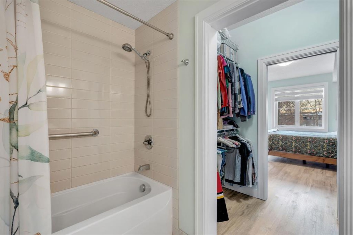 An exceptional penthouse residence in the heart of Parkdale. Positioned on the top floor, this rare offering spans over 1,000 sq. ft. and features two bedrooms, two bathrooms, two titled parking stalls, and a titled storage locker—a premium combination seldom found. Designed for both comfort and sophistication, the home showcases vaulted ceilings in the living room—a distinctive architectural feature exclusive to the penthouse level, creating an airy, light-filled atmosphere. In-floor heating, air conditioning with dual wall units, and full-size front-load in-suite laundry ensure year-round comfort and convenience. The kitchen and bathrooms are finished with double-slab granite countertops, refreshed white cabinetry, custom tile backsplashes, and LG stainless steel appliances, including a new electric range with air-fry functionality. Thoughtful upgrades such as added kitchen drawers for enhanced organization, modern vinyl plank flooring, a tiled fireplace surround, and freshly painted walls elevate the overall aesthetic. Neutral zebra blinds throughout and a motorized blind in the primary bedroom add a polished, contemporary touch. Step outside to a rare, east-facing, double-length patio, exclusive to this unit, complete with a gas BBQ hookup—perfect for morning coffee or entertaining. Additional amenities include secure underground guest parking, a car wash bay, and nearby free short-term street parking zones. The building is also outside the floodway and flood fringe zones and remained dry during the 2013 floods, offering peace of mind. Ideally located just one block from the Bow River Pathway system, and within walking distance to Foothills Medical Centre, the Cancer Centre, and major transit routes, this home is perfectly positioned for professionals. Enjoy effortless commutes to the University of Calgary, Children’s Hospital, Downtown, and Market Mall, with quick westbound access to Highway 1 for weekend mountain escapes. This is a rare penthouse opportunity that seamlessly blends elevated design, premium upgrades, and an unbeatable lifestyle location.