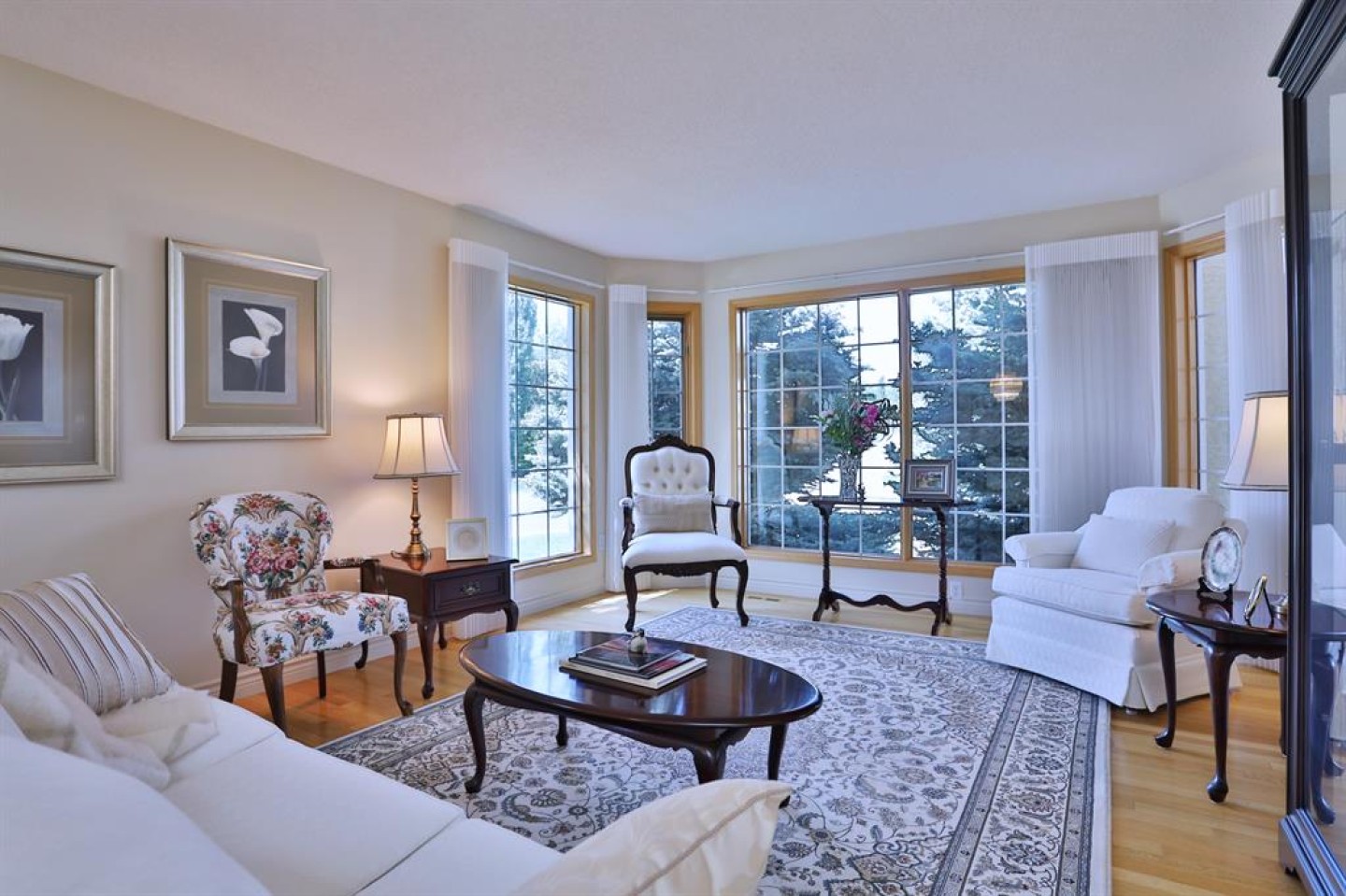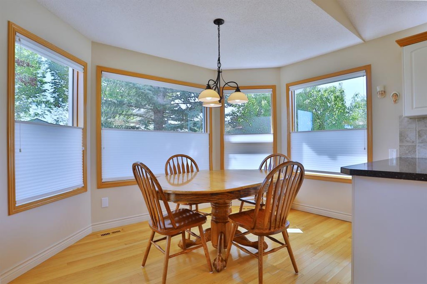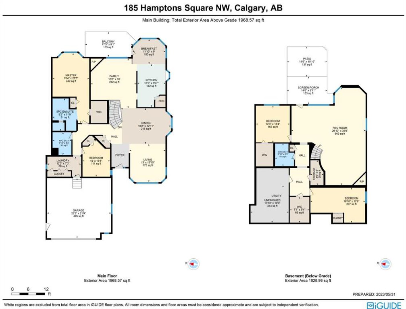 Backing onto a park in exclusive Hamptons Square is where you’ll find this beautifully maintained home in the highly-desirable golf course community of the Hamptons. Built by Calbridge on this wonderful corner lot, this mint condition walkout bungalow enjoys gleaming hardwood floors & skylights, 4 bedrooms & 3 full bathrooms, renovated white kitchen with granite countertops & fabulous walkout level with sensational enclosed patio. You will just love the warm & inviting design of the air-conditioned main floor with its expanse of vaulted ceilings & windows, featuring the West-facing living room with wraparound windows, open concept formal dining room with bay window & sun-drenched family room with new fireplace (2022). The beautiful updated kitchen has granite counters, walk-in pantry & the upgraded appliances include cooktop stove, double built-in convection ovens & Bosch dishwasher. Two bedrooms & 2 full baths on the main floor highlighted by the private owners' retreat with large walk-in closet & jetted tub ensuite with heated floors, skylight & separate shower. The 2nd bathroom - also with heated floors, is conveniently right across from the 2nd bedroom. The walkout level is finished with 2 big bedrooms, full bath with oversized walk-in shower, huge open games/rec room with fireplace & fabulous enclosed patio with access onto a 2nd patio in the private treed backyard. Main floor laundry room complete with sink, lots of closet space & Bosch washer & dryer. Additional features & extras include Hunter Douglas blinds, NEST thermostats & CO/smoke detectors, motion & hue lights, underground sprinklers, heat lamps in the main & walkout bathrooms, oversized 2 car garage with built-in cabinets & central vacuflo system with 3 hoses (2 for the house & 1 for the garage). Other improvements: clay tile roof (2022), renovated bathrooms with quartz counters (2015), hot water tank (2019), both furnaces (2017), water softener (2014) & window glass (2017). Prime location within walking distance to bus stops & tennis courts, only a few short minutes to shopping at Hamptons Co-op & Edgemont Superstore, plus quick easy access to Nose Hill Park, Crowfoot Centre & LRT, major retail centers, University of Calgary, hospitals & downtown.