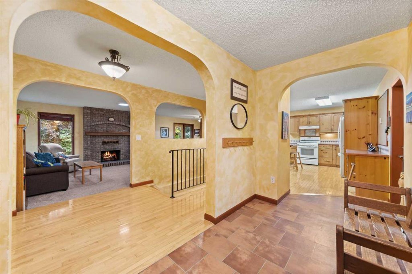 Welcome to your dream family home, perfectly located on an oversized lot with plenty of parking, including a large concrete RV parking area. The private back yard has a playhouse for the kids tucked in one corner and backs onto a large park with playground. Spacious yet cozy, this 6 bedroom home with over 3200 sq. ft. of developed living space offers the perfect blend of comfort, functionality, and charm. Entering the beautiful front courtyard is the start of your journey to discovering all the great features this home offers, like the large open entrance area, the classic wood-burning fireplace with log lighter and solar tube in the sunken living room, hardwood and Artica tile flooring, carpeting that was replaced just three years ago, solid pine doors in the kitchen cabinetry and throughout most of the house, a large kitchen island, a gas stove along with a second oven, three generous-sized bedrooms, and a family bath that boasts a jetted tub as well as a separate shower. The large lower level family room is home to the second fireplace, this one gas. Two of the three basement bedrooms offer double pocket doors and built-in desks. A large laundry room has plenty of room for a second fridge and freezer and a shiny new efficient boiler in the utility room is sure to impress. Dining room garden doors offer access to the large rear deck with pergola that overlooks the rear yard and park behind. Located in the welcoming community of Didsbury, this home combines small-town charm with convenient access to local amenities, schools, and parks and the Didsbury golf course just across the street. It’s an ideal setting for those looking to settle down in a friendly and serene neighborhood. Don’t miss out! Schedule your viewing today and envision the life you’ll create in this great family home.