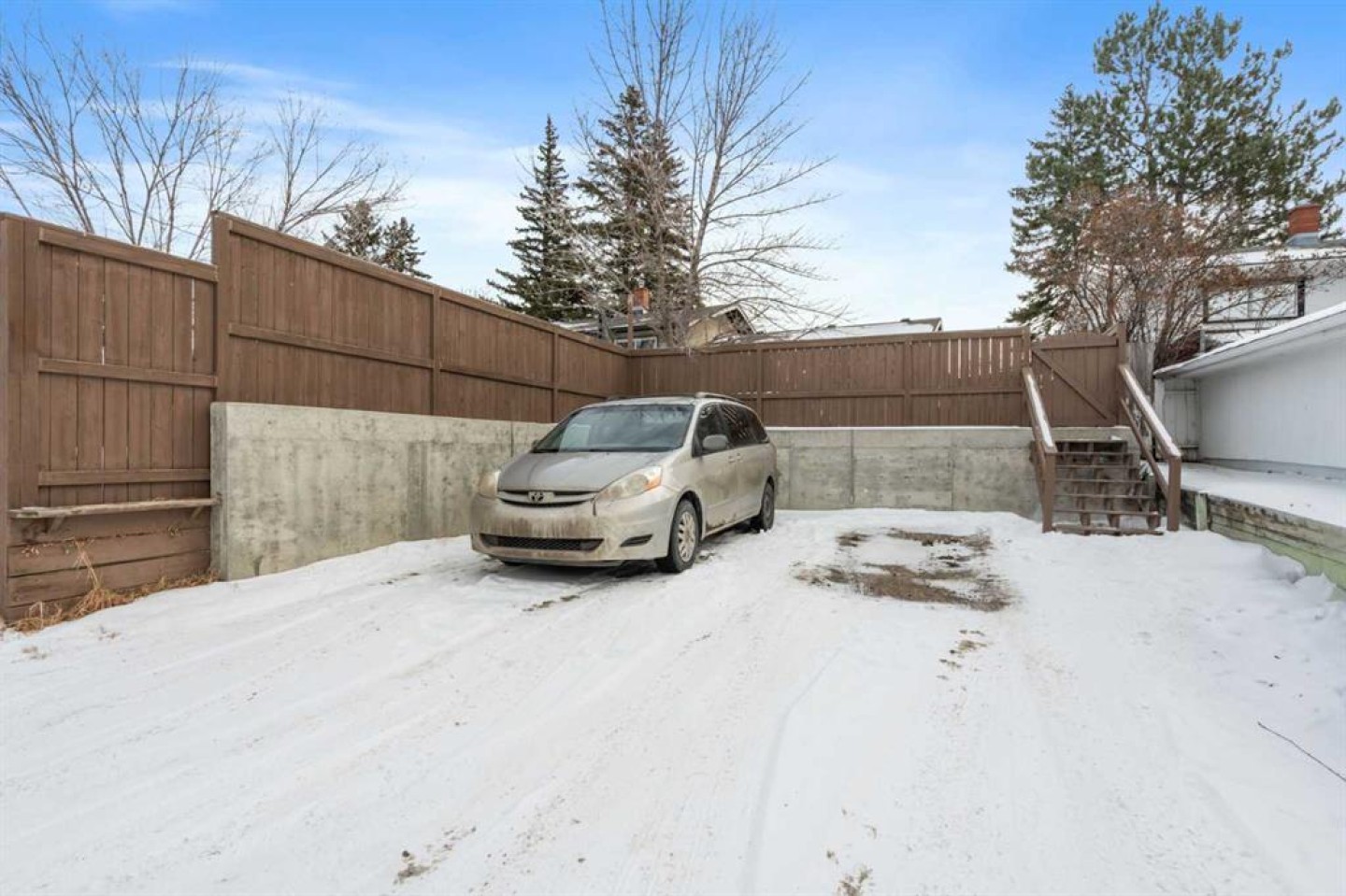 Outside, enjoy a fully fenced, spacious backyard, mature trees, and a decorative hardscaped patio—ideal for summer evenings. The rear parking area includes two off-street parking stalls accessed from the back alley, supported by an engineered concrete wall (2012). There is also future potential to build a garage, subject to City approval.