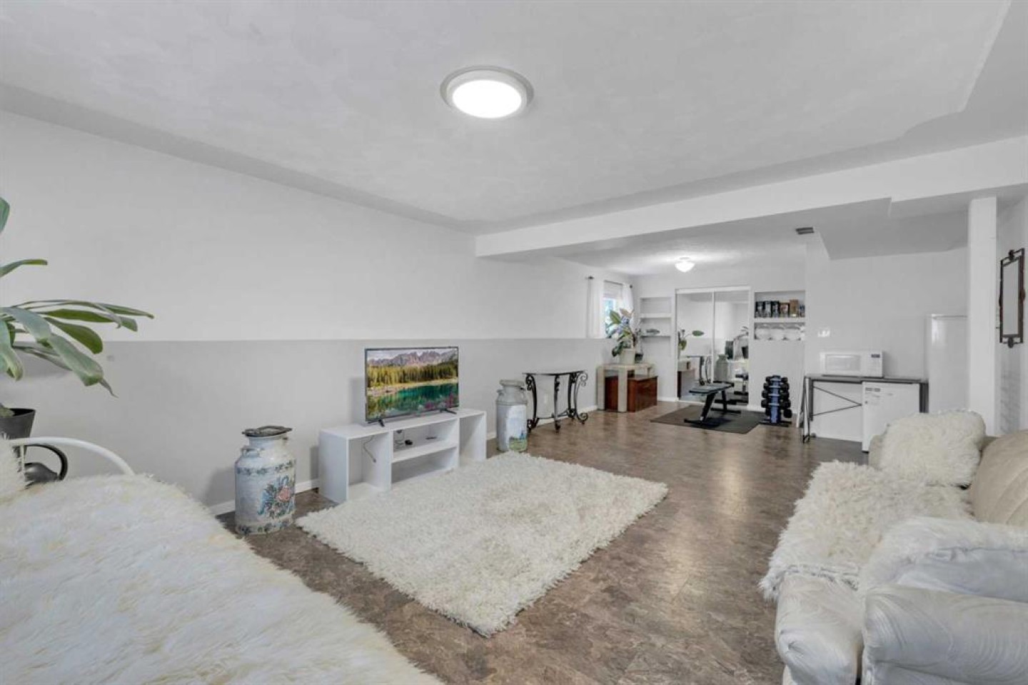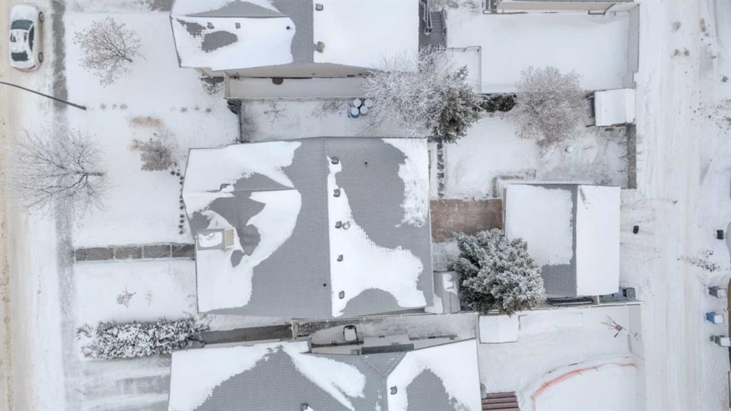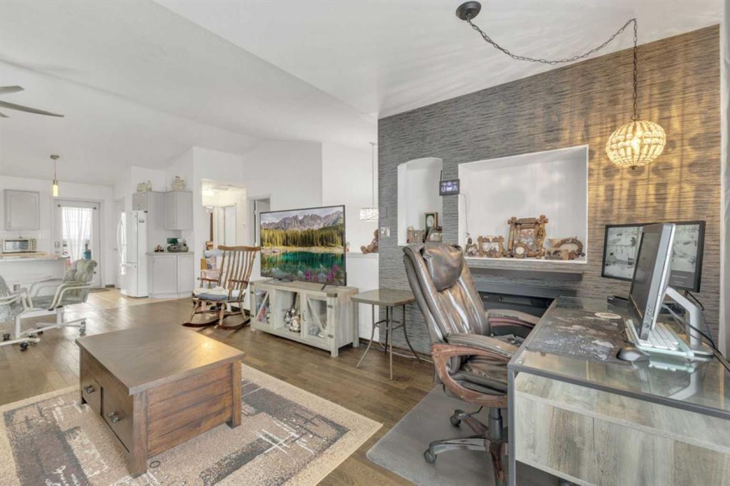 This well-maintained home is surrounded by stunning, mature landscaping featuring an abundance of flowering perennials, established trees, and vibrant shrubs that create incredible curb appeal and a private, park-like setting ~ Peace of mind comes with major updates completed within the last year, including the furnace, humidifier, hot water tank, and central air conditioning, while the garage door and kitchen appliances (fridge, stove, dishwasher, and microwave) are all under five years old ~ The front yard showcases lush gardens and mature trees, while the west-facing covered veranda offers the perfect place to relax and enjoy evening sun ~ Inside, the open concept main floor is highlighted by vaulted ceilings and rich hardwood flooring, enhancing the sense of space ~ The bright living room features a stylish fireplace with built-in shelving and a large picture window overlooking the front yard ~ The spacious dining area easily accommodates family gatherings and entertaining ~ The functional U-shaped kitchen offers ample cabinetry and counter space, with an eating bar, full tile backsplash, window over the sink, wall pantry, and garden door access to the covered deck ~ The primary bedroom comfortably fits a king-size bed, includes dual closets, and offers private access to the main four-piece bathroom through a cheater door ~ A second generously sized bedroom completes the main level ~ The fully developed basement features large above-grade windows, a spacious family room with a cozy gas-burning stove, a versatile flex area with mirrored closets, an additional bedroom, a three-piece bathroom, laundry area, and plenty of storage ~ The backyard is a true retreat with meticulously maintained gardens, mature trees, colorful flowers, garden beds, two sheds, enclosed storage under the deck, a loft in the garage, and multiple outdoor living spaces including a covered deck, lower concrete patio, and firepit area ~ Fully fenced with alley access to the double detached garage ~ Located close to multiple schools, parks, playgrounds, walking trails, the YMCA, shopping, and a wide range of amenities.
