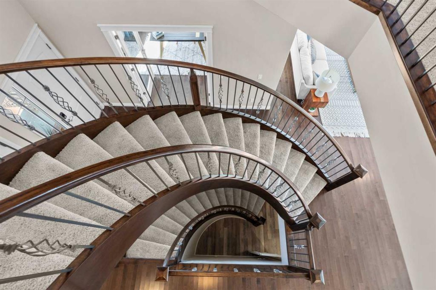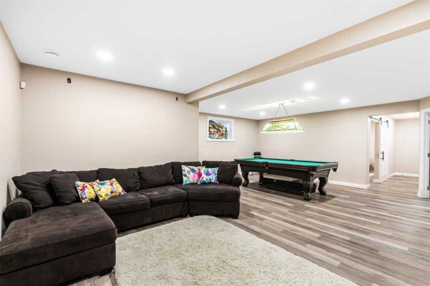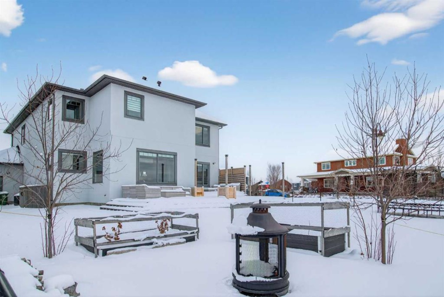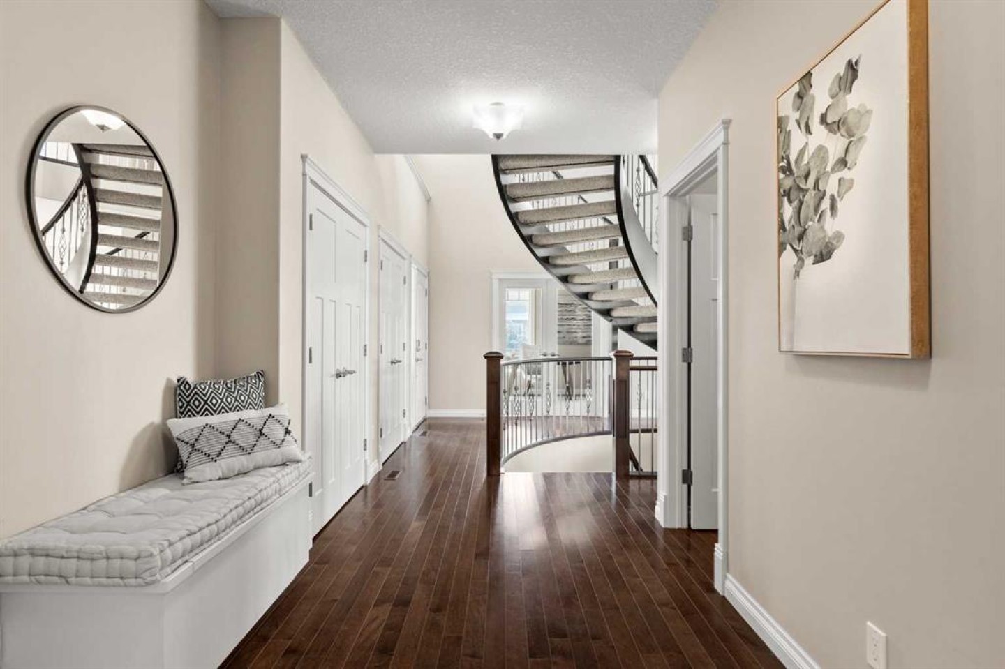 Welcome to 102 Ranch Road, a beautifully appointed 2-storey home in the prestigious Air Ranch community of Okotoks. Offering over 4,000 sq. ft. of finished living space, this property blends thoughtful design with luxurious features for everyday living. The main floor showcases rich hardwood flooring and an open-concept layout with a show-stopping spiral staircase that certainly makes a statement! The chef’s kitchen with quartz counters, premium appliances, walk-through pantry and a massive island are perfect for entertaining. A private office, stylish powder room, and mudroom with access to the heated triple garage add convenience. Upstairs, you’ll find a spacious bonus room, laundry, and four generous bedrooms, including a luxurious primary suite with spa-inspired 5-piece ensuite and oversized walk-in closet. The fully finished basement expands the living space with a large rec room, fitness room that could be an additional bedroom, another bedroom, and full bath—plus a rough-in for a future bar and additional basement laundry area. Step outside to your huge composite deck overlooking a big backyard designed for family fun, complete with a firepit and a trampoline. Additional features include two central A/C units, a medical-grade air filtration system, whole-home water filtration, underground sprinklers, and premium finishes throughout. Ideally located close to top-rated schools, parks, shopping, and golf, this exceptional property combines luxury, comfort, and community in one of Okotoks’ most desirable neighborhoods.