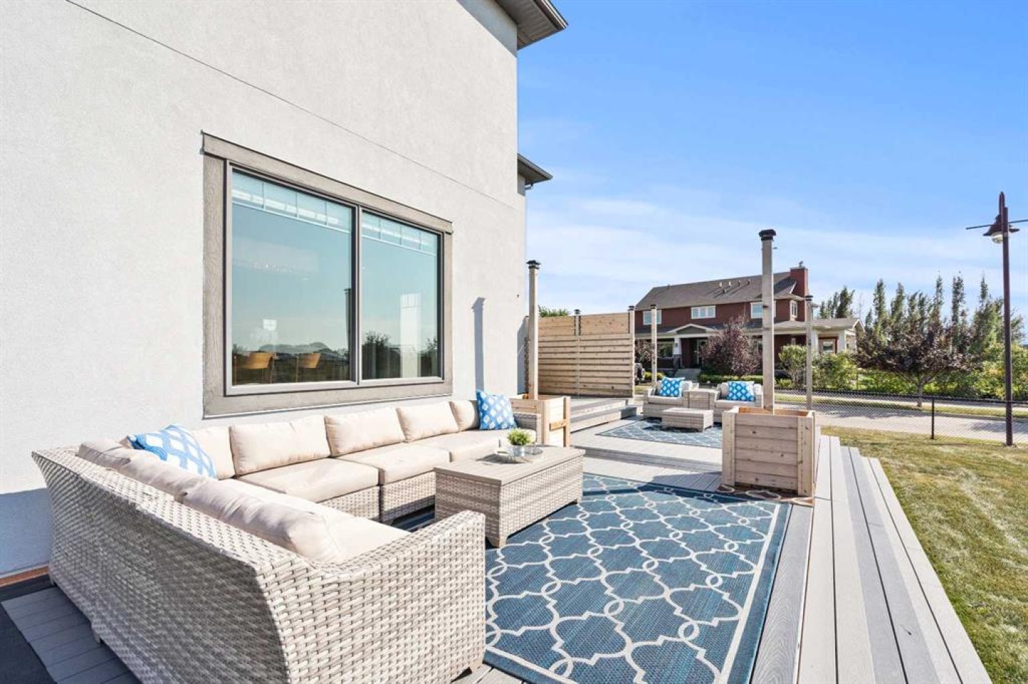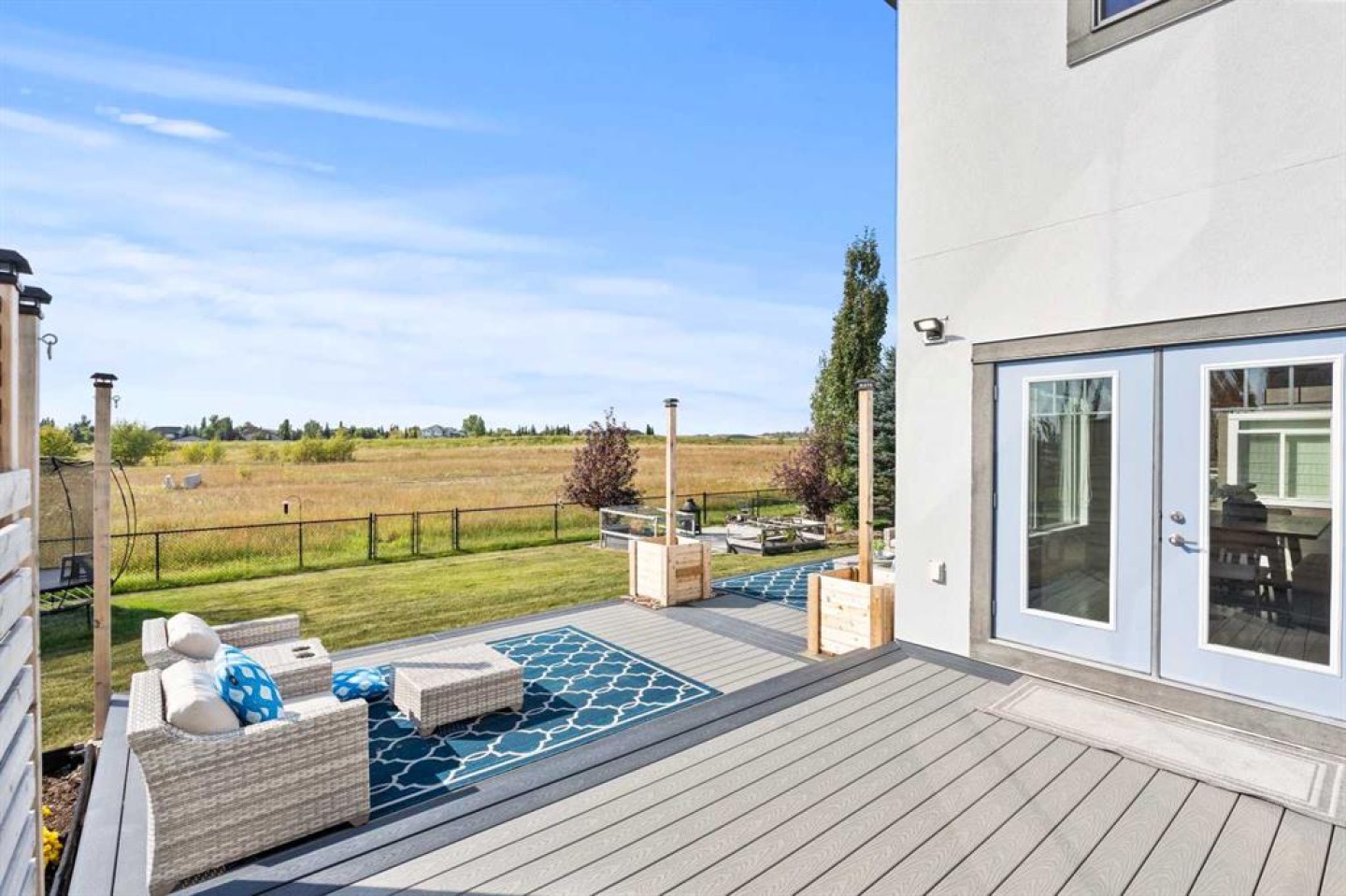 water filtration, water softener, water fountain and pump in front yard, cedar pillars on deck, garden boxes, firepit, trampoline, deck sectional seating, sun sails that hook onto cedar pillars on deck