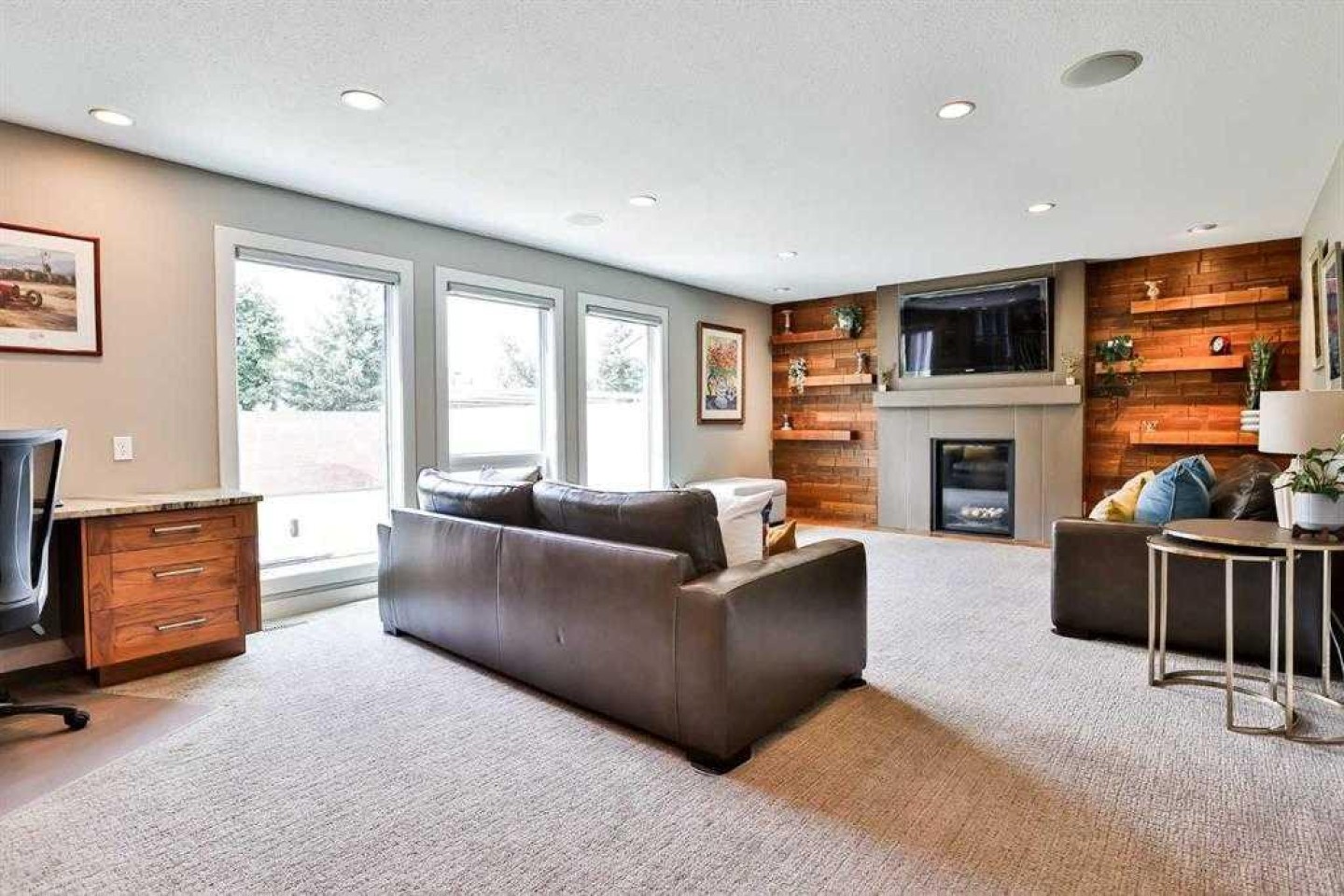 New Year, New Home?! Step into sophistication in this meticulously upgraded home, where every detail has been thoughtfully designed for comfort, function, and wow factor. From the grand entrance, you’re welcomed into a stunning formal living room with gleaming floors that flow into the heart of the home, an expansive kitchen and dining area that spans an entire level. This one-of-a-kind chef’s kitchen is a true showstopper, featuring custom cabinetry by Cabinet Expression, a massive 10-foot island, built-in stove and microwave, induction cooktop, refrigeration drawers in island, beverage fridge, two sinks, quartz counters, marble flooring, under-cabinet lighting, touch tap, and a garburator. Just off the kitchen is a warm and inviting family room and home office area, complete with a custom wall unit with built-in TV, shelving, and fireplace. Upstairs, you’ll find three bedrooms, all with plush, luxurious carpeting and two bathrooms. The primary suite is a personal retreat with its built-in TV, spa-inspired ensuite with double sinks, rainfall tile shower, heated floor, and an impressive custom walk-in closet. Near the garage entry, the mudroom includes access to a beautifully finished laundry room with sink, folding station, and hanging area. A stylish half-bath features a tile accent wall and built-in storage. The lower level offers a spacious fourth bedroom, home gym, and massive storage space. Downstairs, the basement is made for entertaining, complete with a large recreation area, wet bar, and a unique 3-piece bath with eye-catching aqua tile and finishes. The built-in speakers throughout the house, on the covered patio, and heated garage are linked to the Control4 System. Outside is your own private oasis: a covered patio with tile flooring, stone feature walls, a built-in gas BBQ and TV, plus two lower teak deck areas with lighting, built-in planters, and a cozy gas firepit. The yard is fully equipped with underground sprinklers and enclosed by a cinder block fence for privacy. Recently installed triple glazed windows and newer high end kitchen appliances too! Ideally located directly across from Nicholas Sheran Park, you’ll enjoy instant access to 106 acres of green space, including a lake, 7 km of walking trails, disc golf, playgrounds, and nearby schools. This is more than a home, it’s your dream LIFESTYLE waiting to happen. Don’t miss the chance to make it yours!