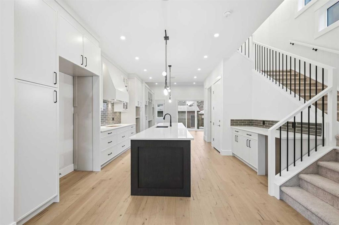 Welcome to 5005 21A Street. This modern 5-bedroom, 3.5-bath home opens with a bright dining area that leads directly into the main living space. The kitchen is built for both daily use and entertaining, featuring quartz countertops, ceiling-height cabinetry, a large island, and a dedicated coffee bar.