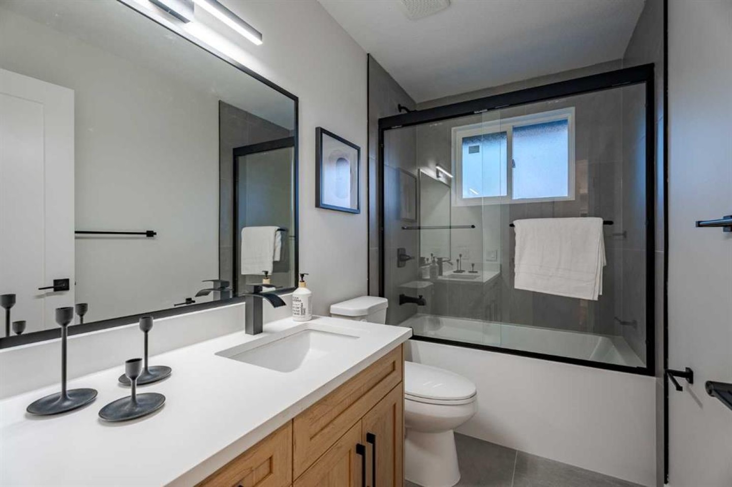 | LEGAL BASEMENT SUITE | SEPARATE LAUNDRY & ENTRY | EXTENSIVELY RENOVATED | OVERSIZED GARAGE | RV PARKING | If a home could make an impression, this one surely would. Welcome to this fully reimagined bungalow in Huntington Hills, where every detail has been thoughtfully updated and nothing left untouched. Featuring a NEW roof, siding, furnace, water tank, double-pane windows, doors, trims, flooring, cabinetry, and more. Located steps from the Huntington Hills Community Centre and playgrounds, and minutes from major shopping at Beddington Towne Centre and Deerfoot City, this property combines modern living with everyday convenience. From the street, you’ll love the home’s stunning curb appeal — board and batten siding, warm wood accents, custom lighting, and a fully landscaped yard create a timeless, modern look. Inside, a formal mudroom with chevron-tiled floors and custom shaker built-ins welcomes you in style. The open-concept main floor features warm LVP flooring throughout. The living room features a custom-tiled fireplace with wood mantle, and a large window filling the space with natural light. The dining area is complete with a statement chandelier and dry bar, ideal for a coffee or wine setup. At the heart of the home lies the chef-inspired kitchen, showcasing ample shaker cabinetry, a textured island with waterfall quartz, built-in pantry, and high-end stainless steel appliances. A patio door provides direct access to the backyard. Down the hall, a stylish 3-piece bathroom and separate laundry closet with a new washer/dryer add convenience. The primary suite offers space for a king bed, a feature wall, custom walk-in closet, and a private 3-piece ensuite with glass shower. Two additional bedrooms complete the main level. The LEGAL basement suite is equally impressive, with a private rear entrance, mudroom, large family room with 2-piece bath, and French doors leading to the living quarters. The suite includes a spacious living area with entertainment wall and fireplace, a kitchenette with new stainless steel appliances, a 3-piece bath, and two large bedrooms—a perfect mortgage helper or rental opportunity. Outside, enjoy a fully landscaped yard, a large deck for summer BBQs, and an oversized double garage with epoxy flooring—ideal for car enthusiasts or added storage. This one-of-a-kind property blends style, functionality, and income potential in one stunning package. Book your showing today and prepare to fall in love!