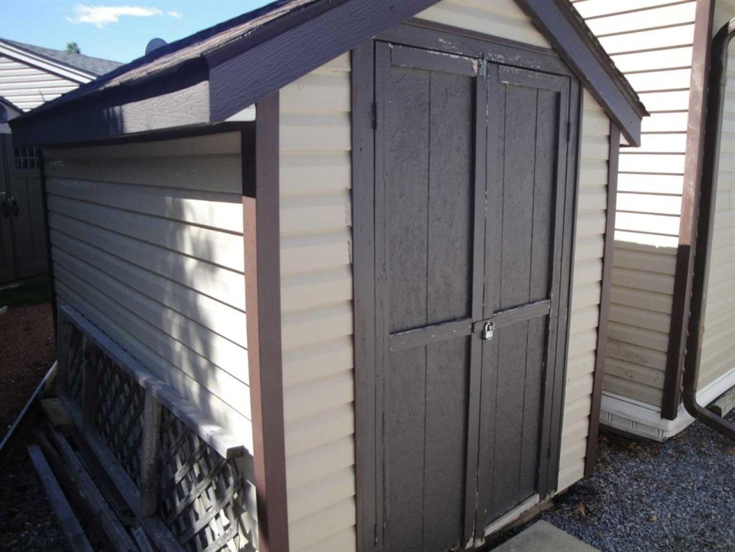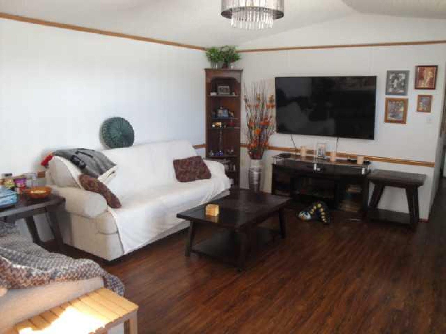 Welcome to this beautifully maintained 1216 sq ft mobile home, nestled in a vibrant 55+ community. Designed for comfort and ease, this home features three generously sized bedrooms and two full bathrooms, including a serene 4-piece ensuite. The open-concept layout with stylish laminate flooring offers a fresh, modern feel, while central air conditioning keeps things comfortable year-round. The kitchen is equipped with a newer stove and dishwasher, making meal prep and cleanup a breeze. A spacious enclosed carport with extra storage and an oversized deck provides the perfect space for enjoying sunny afternoons or hosting gatherings. Additional highlights include abundant natural light throughout and a handy storage shed. Located just minutes from shopping and essential amenities, this low-maintenance home is a wonderful opportunity to downsize without compromise. Buyer must be approved by Parkbridge Estates management.