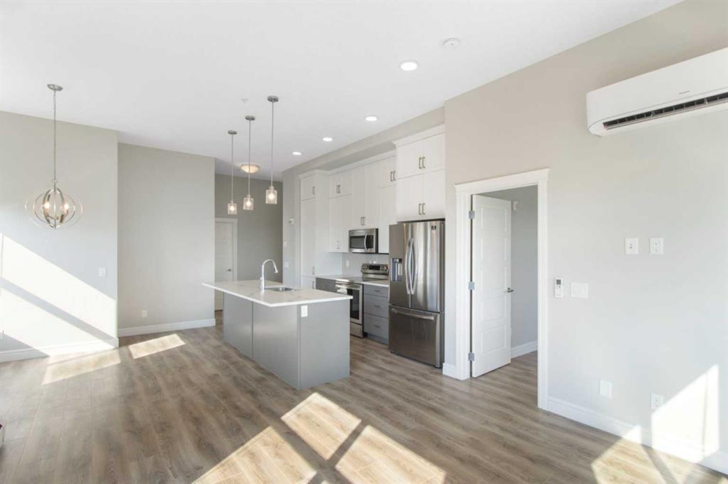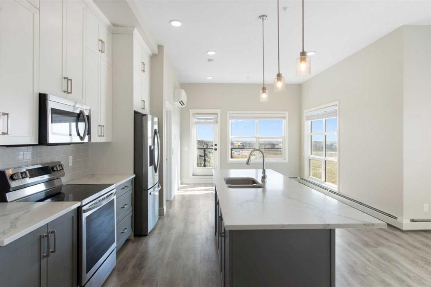 YOU DON’T WANT TO MISS THIS! Discover upscale urban living in this rare top-floor, corner unit in the heart of Seton—one of Calgary’s most vibrant and amenity-rich communities. Boasting nearly 11-foot ceilings, this 2-bedroom, 2-bathroom home feels open and airy, flooding with natural light from its expansive corner windows. The modern floor plan is designed for both comfort and entertaining. A spacious kitchen showcases stainless steel appliances, quartz countertops, sleek cabinetry, and a large island, perfect for cooking or gathering with friends. High-end laminate flooring throughout ties the space together with a warm, stylish finish. The primary suite includes a generous walk-in closet and a private ensuite for your own retreat, while the second bedroom features a cheater ensuite, ideal for family or guests. Practicality meets luxury with TWO titled underground parking stalls—a rare find that ensures year-round comfort and convenience. Even better, this home comes with not just one, but TWO storage lockers, giving you extra space for seasonal items, sports equipment, or household overflow. With rising storage rental costs in Calgary, this added value translates directly into ongoing savings and peace of mind. Seton is known as Calgary’s “downtown of the south,” offering everything you need right at your doorstep. Enjoy trendy restaurants and bars, coffee shops, and everyday essentials just steps away. Meet friends for brunch at Red’s Diner, catch a movie, or take advantage of quick access to South Health Campus. With shopping, fitness facilities, and an energetic community vibe, you’ll love the lifestyle this location provides. This is more than a home—it’s a complete lifestyle upgrade. Don’t miss your chance to own this exceptional top-floor corner unit in Seton!