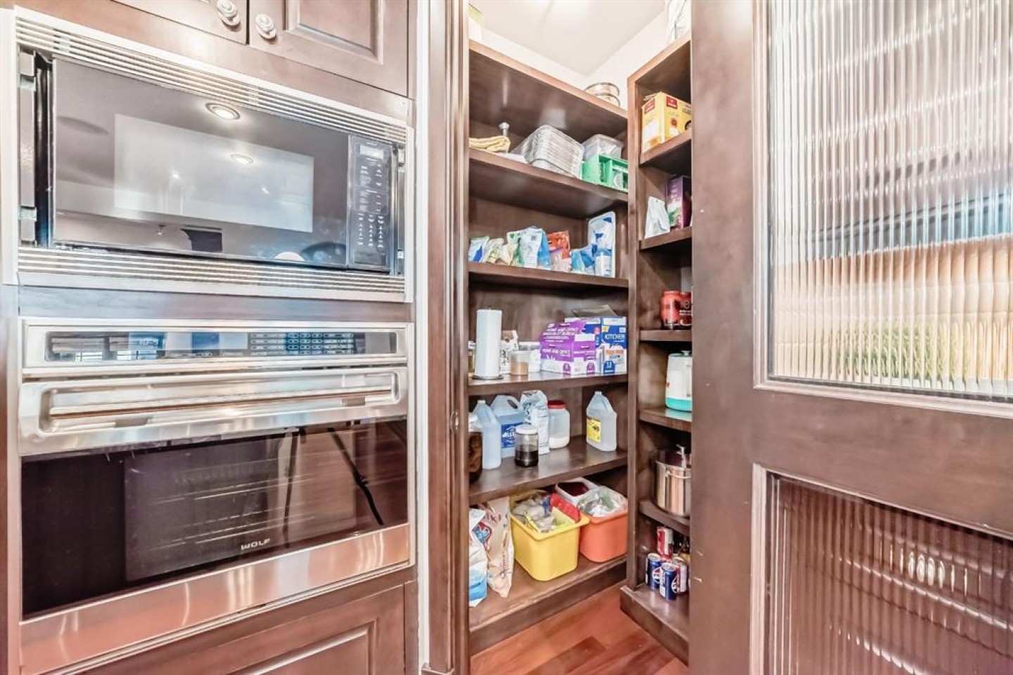 Bar, Bidet, Bookcases, Built-in Features, Ceiling Fan(s), Crown Molding, Double Vanity, French Door, Granite Counters, High Ceilings, Jetted Tub, Kitchen Island, Natural Woodwork, No Animal Home, No Smoking Home, Open Floorplan, Pantry, Primary Downstairs, Recessed Lighting, Separate Entrance, Skylight(s), Soaking Tub, Storage, Sump Pump(s), Tankless Hot Water, Tray Ceiling(s), Walk-In Closet(s), Wet Bar, Wired for Sound