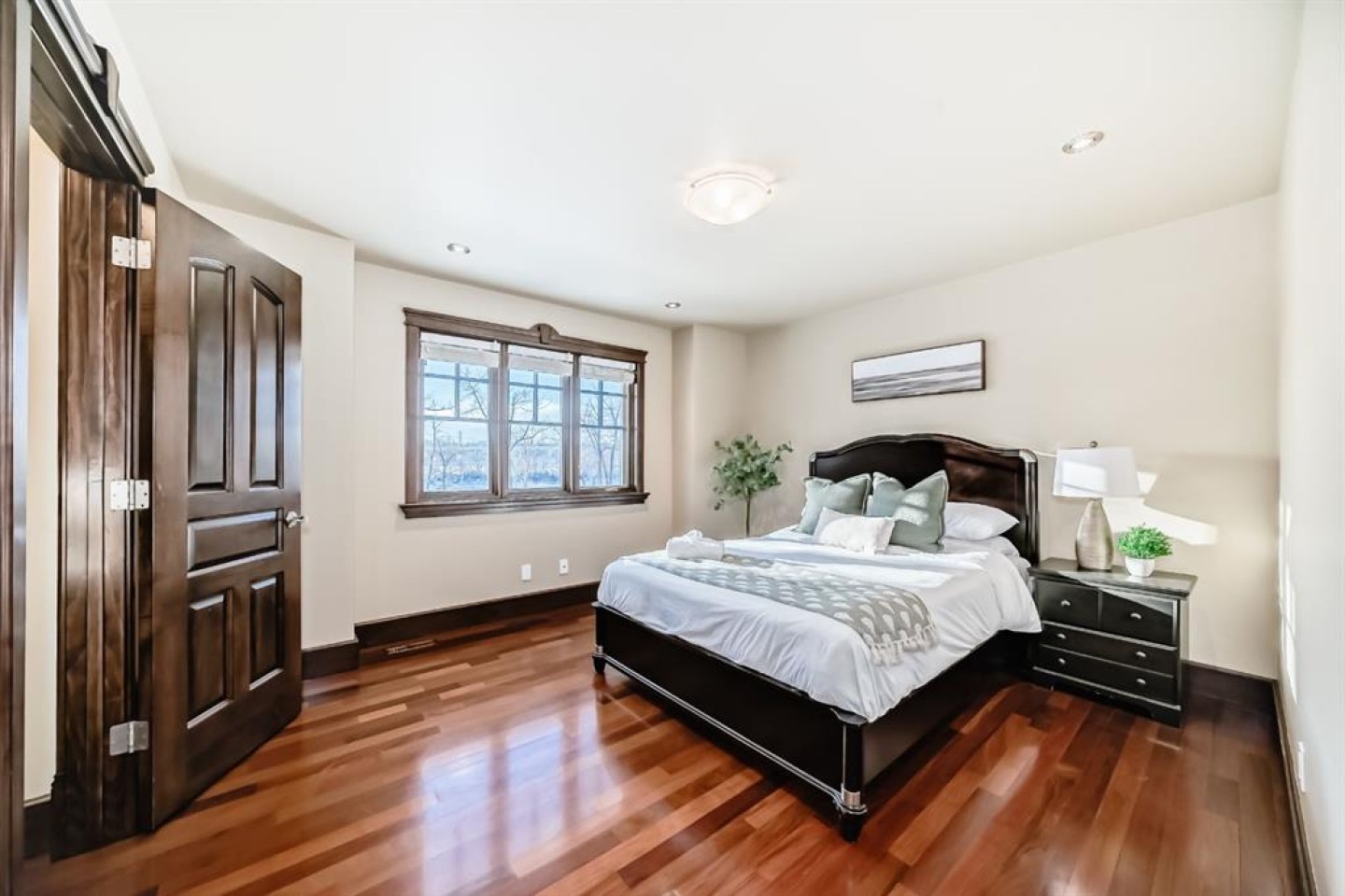 Welcome to this extraordinary custom riverfront estate positioned directly across from downtown Calgary, offering unobstructed Bow River and skyline views on a rare 179’ deep lot in the heart of Hillhurst. Situated on an expansive ~8,300+ sq. ft. parcel, this one-of-a-kind residence offers over 5,200 sq. ft. of meticulously crafted living space plus more than 1,100 sq. ft. of covered outdoor living, delivering exceptional scale, craftsmanship, and enduring luxury. This custom-built home features over 8,000 board feet of handcrafted maple millwork, solid maple doors, Brazilian walnut flooring, and an extraordinary selection of exotic hardwoods including tigerwood, bird’s-eye maple, ebony, walnut, and cherry. Architectural details include curved moldings and archways, stone posts, wainscotting, in-stair lighting, built-in speakers, over 200 pot lights, and 11 skylights, creating a warm, timeless ambiance throughout. The main floor is thoughtfully designed for both everyday living and elegant entertaining, highlighted by a front-facing primary bedroom with spa-inspired ensuite featuring in-floor heating, jetted tub, and shower. A formal dining room or executive office complements the showpiece chef’s kitchen, equipped with a 36” Wolf gas range with pot filler, Sub-Zero refrigerator, Bosch dishwasher, walk-in pantry, beveled granite countertops, curved cabinetry, and a custom removable island table. The adjoining living room centers around a fireplace and opens seamlessly to expansive covered decks with cedar ceilings and stamped concrete flooring for year-round indoor-outdoor living. The upper level hosts four additional bedrooms, including two luxurious primary suites with fireplaces and spa-inspired ensuites. The main upper retreat offers a fireplace, sitting area, walk-in closet, steam shower, air-jetted tub, heated floors, and refined finishes. Two additional bedrooms share a Jack-and-Jill bath, alongside a wet bar, second-storey balcony with breathtaking river and skyline views, and a dedicated laundry room. The fully developed walk-out basement features in-floor heating, a recreation room, full kitchenette, two additional bedrooms, and two bathrooms, ideal for extended family, guests, or future income potential. Outdoor living is exceptional, with newly landscaped grounds, and two private putting greens. The real-stone exterior, stamped-concrete driveway, rear alley access, finished four-car garage, 66’ RV pad, and parking for up to eleven vehicles complete this rare offering. Recent upgrades include a new roof, downspouts, central A/C, updated mechanicals, and a pre-poured foundation provides a ready-to-build addition (with city of Calgary Permit Approval). Energy-efficient features include triple-pane windows, thicker plywood sheathing, and premium construction materials, enhancing comfort, durability, and lowering utilities. Steps from river pathways, downtown, UofC, SAIT, and Foothills Hospital, this is a rare riverfront estate that truly stands apart.