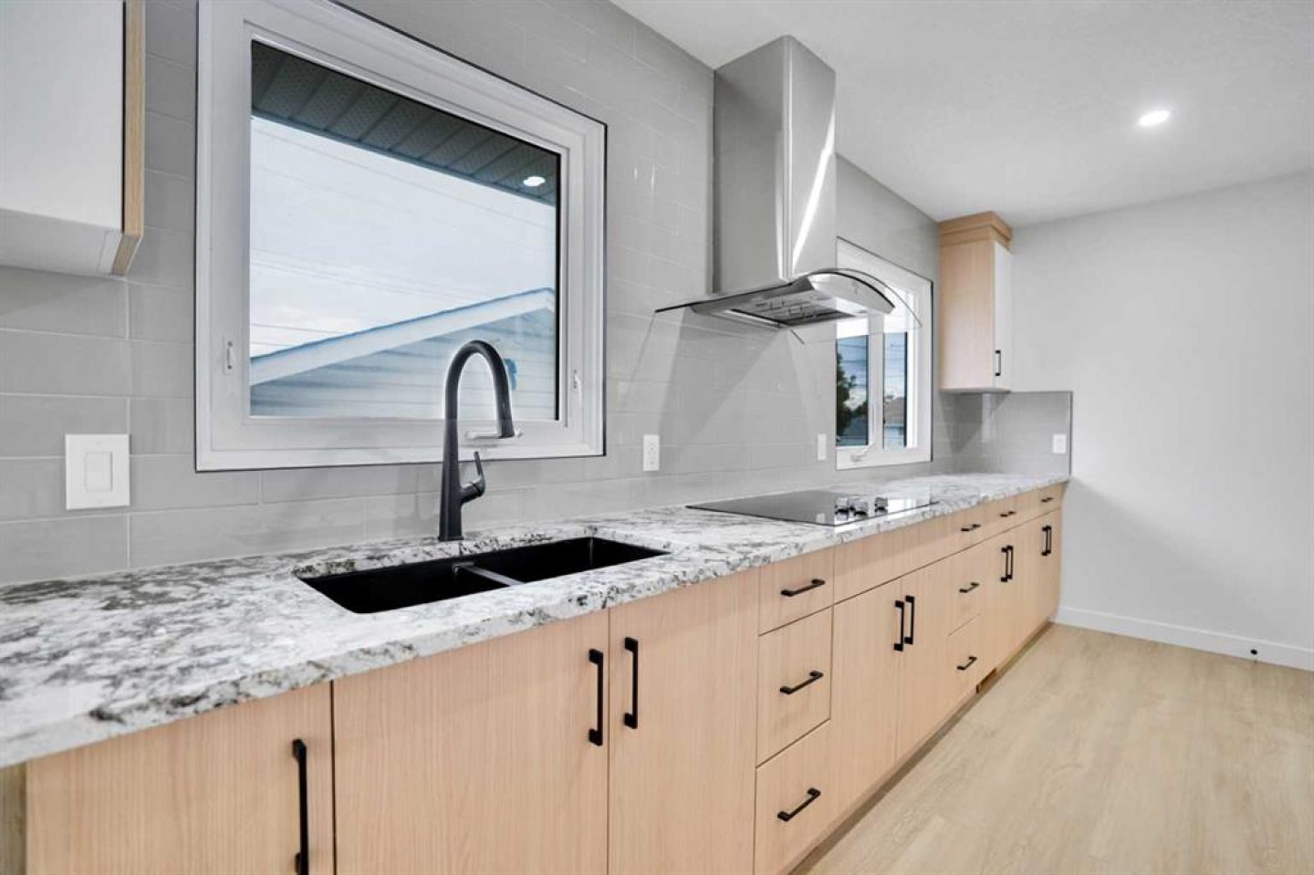 Welcome to your dream home in Thorncliffe! Perfectly located within walking distance to shopping, schools, and everyday amenities, this fully renovated bungalow offers the perfect blend of style, comfort, and convenience. Featuring 4 bedrooms, a Office/den space, 3.5 bathrooms, a detached garage, and over 2,400 sq. ft. of reimagined living space, this property has been stripped to the studs and rebuilt with precision—everything is brand new and never lived in. The exterior shines with new stonework, roof, gutters, downspouts, exterior doors, few new upstairs windows, new floor, paint, lighting fixtures, brand new appliances and all new basement windows, plus immaculate landscaping with concrete walkways, fresh sod, fencing, and new front stairs. A spacious sun deck overlooks the beautifully maintained backyard, ideal for relaxing or entertaining. Inside, the open-concept main floor is bright and inviting. The living area flows seamlessly into a custom chef’s kitchen with brand new built-in appliances, a electric cooktop, and chimney hood fan. A half-bath for guests adds convenience, while the primary bedroom offers a walk-in closet and spa-inspired ensuite with a luxurious shower. A second large bedroom with its own full bath, plus separate laundry completes the main level. Fully finished Illegal basement suite comes with 2 bedrooms plus Office/den space complete with a custom kitchen, huge living area with a big window, full bathroom, separate laundry, and a separate entrance—perfect for extended family or guests. Set in one of Calgary’s most desirable communities, you’ll enjoy quick access to parks, schools, transit, shopping, and major routes. With every detail thoughtfully redone—new, modern, and move-in ready—this home offers peace of mind and unmatched comfort. Everything is new. Everything is ready. All that’s missing is you! Book your showing today...