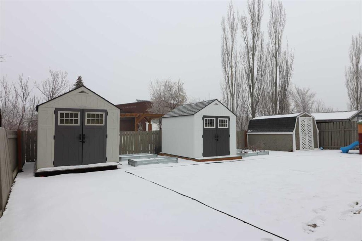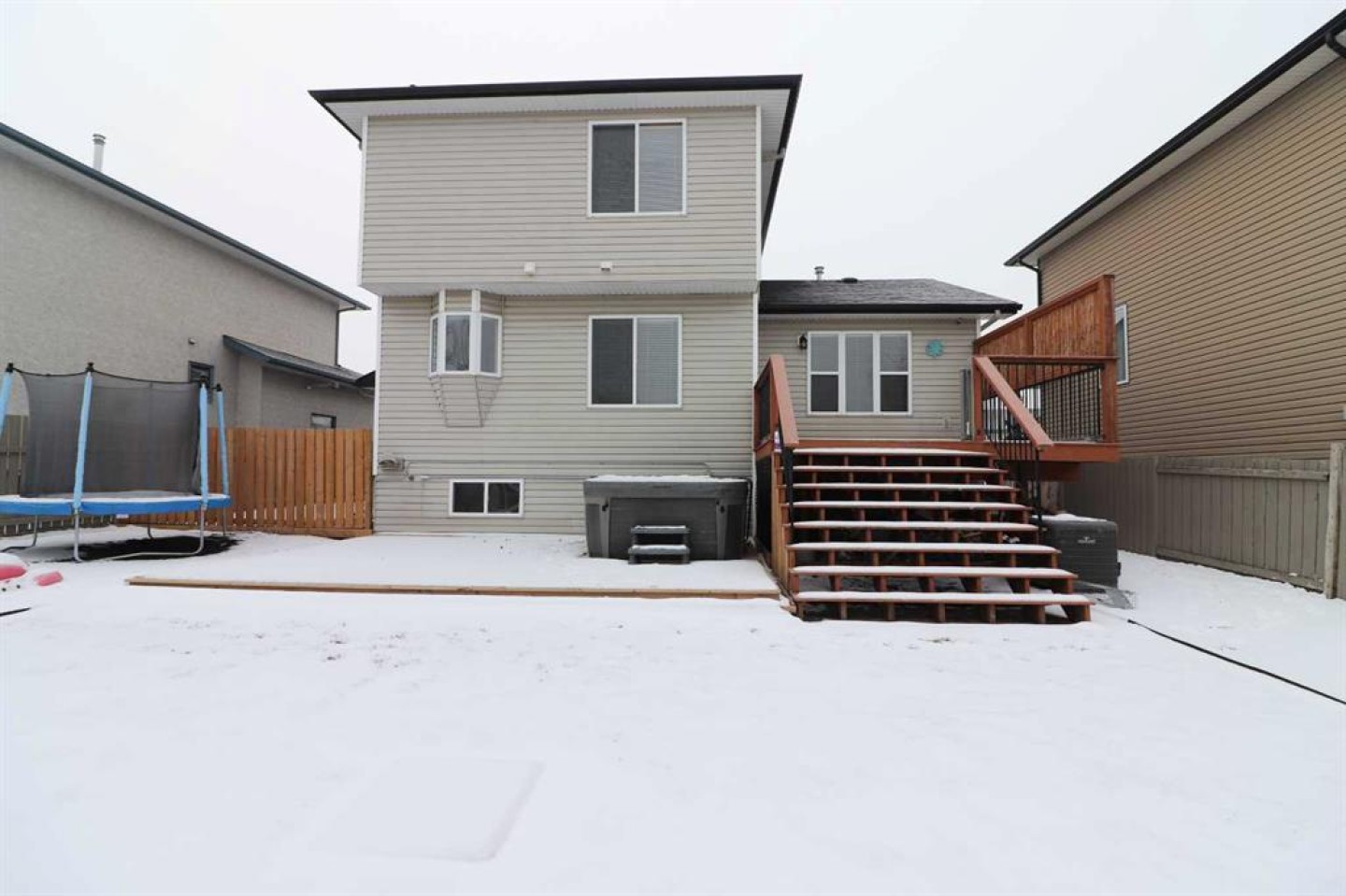 Outside, enjoy the beautifully landscaped, fully fenced backyard featuring a private deck conveniently located off the kitchen, garden beds, and multiple storage sheds. This home offers ample space inside and out and is perfect for families seeking comfort, style, and a great location. The play house and trampoline can stay if new owners want them. New washing machine as of 2025, New dishwasher as of 2024. All other appliances are from 2020. Furnace, AC & Water Heater new as of 2021.