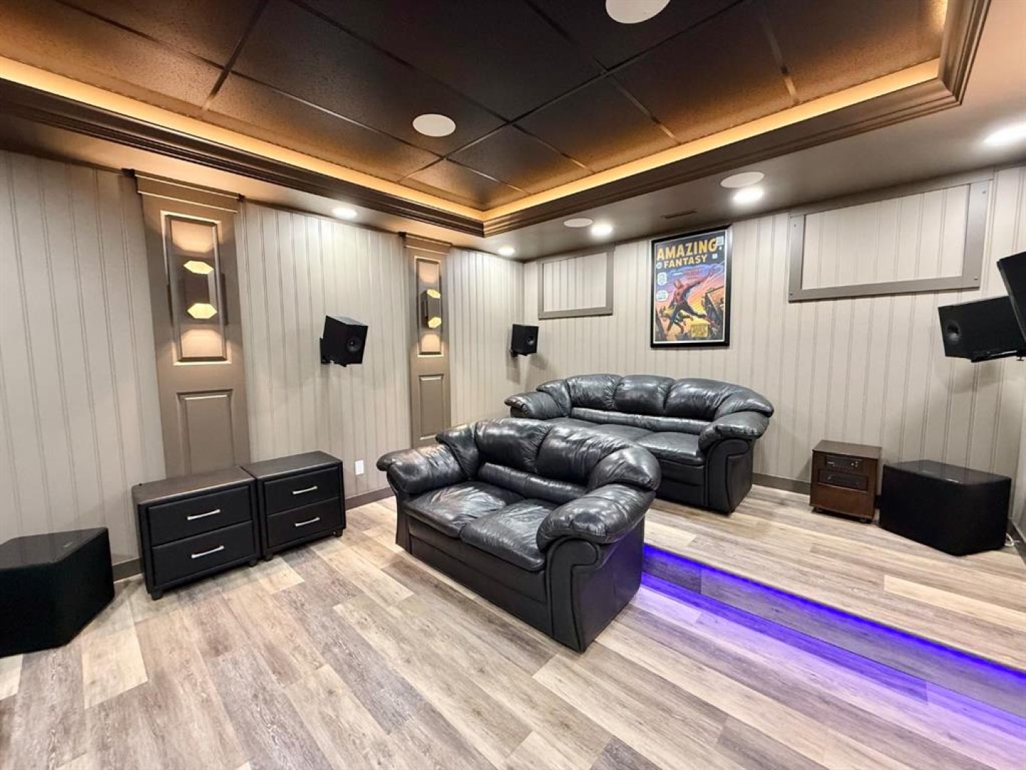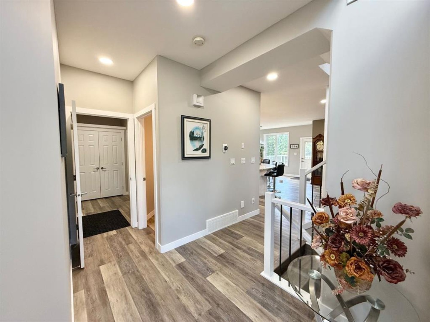 Custom Whitecourt Home. Step into unparalleled elegance with this meticulously designed 5 bedroom residence, where every detail exudes sophistication and comfort. Boasting a triple car garage with a convenient drive thru bay leading to the backyard, this home is tailored for both functionality and style. A dedicated dog wash station with hot and cold taps in the garage and EV Level 2 charging for your electric vehicle add modern convenience to your everyday living. The interior showcases wider, custom designed stairs for effortless furniture movement, quartz countertops flowing seamlessly throughout and a bedroom that’s transformed into a state of the art home theatre, perfect for immersive entertainment. A bar area downstairs complements the at home theatre, ideal for entertaining guests.