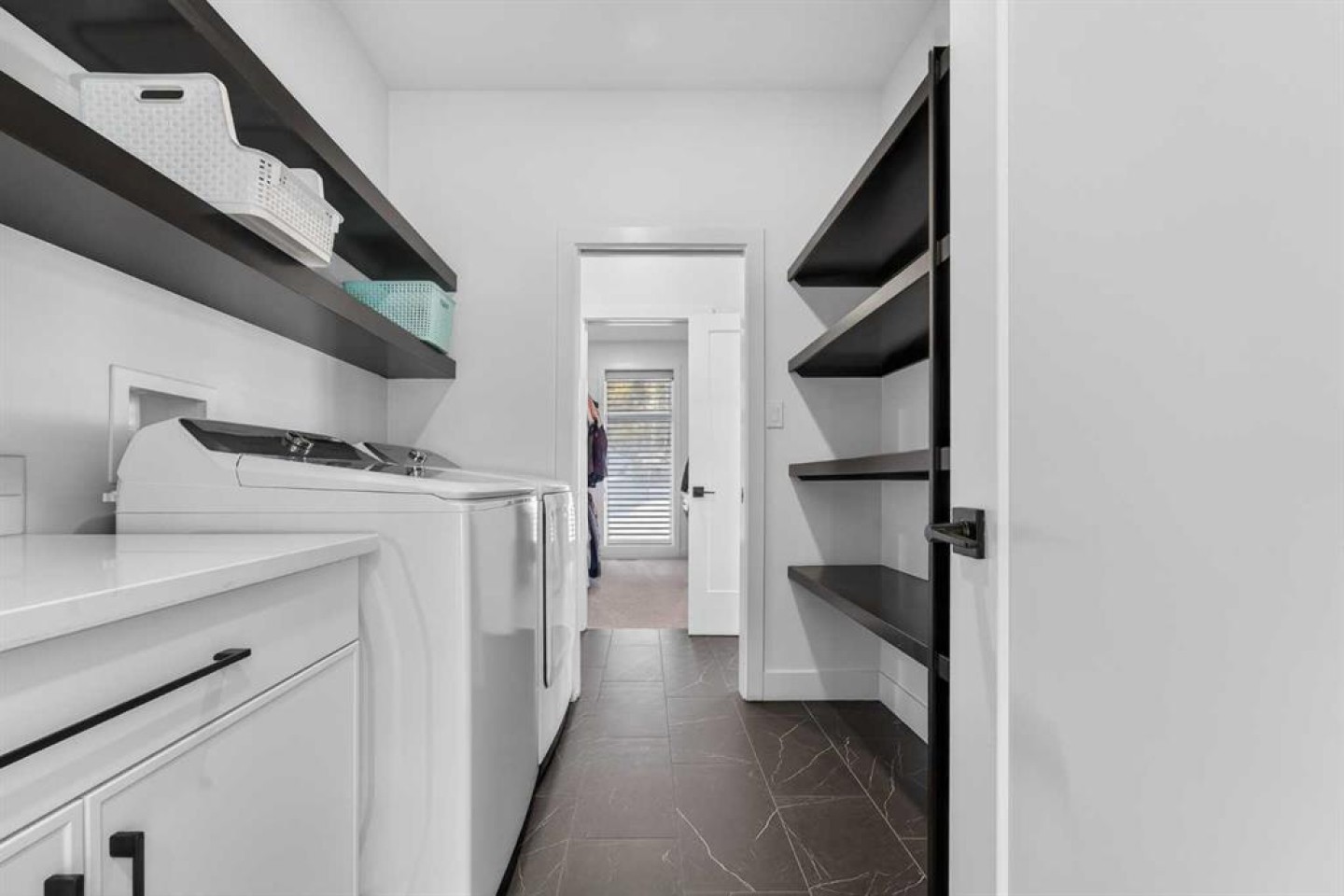 The kitchen is as functional as it is beautiful, designed for both entertaining and everyday living. A large quartz waterfall island offers generous seating, while premium Fisher & Paykel appliances—including a gas cooktop, dual fridge/freezer, and built-in oven and microwave—deliver a seamless, high-end finish. The butler’s pantry, complete with custom shelving and a secondary sink, adds a layer of practicality that serious cooks will appreciate.