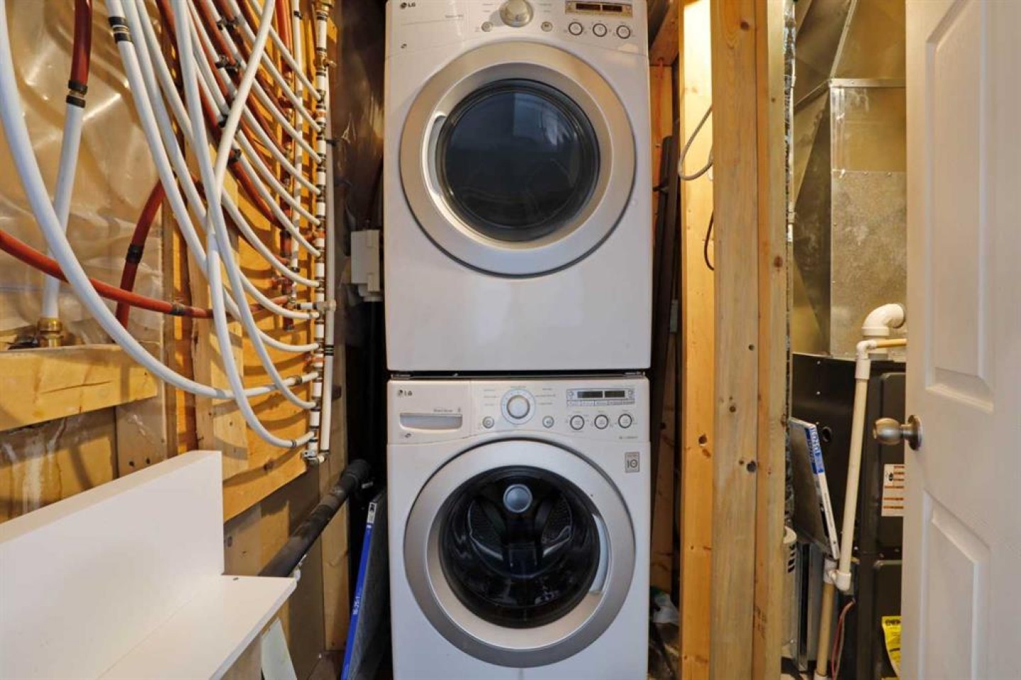 Fridgedaire Stainless Fridge (New Nov 2025), Whirlpool Ceramic Top Electric Stove (2020), Samsung Built-in Dishwasher (2020), LG Stacking Washer & Dryer, Hood Fan, Countertop Microwave, All Window Coverings (Blinds on main & top floor New Nov 2025), Central Air Conditioning (2020).