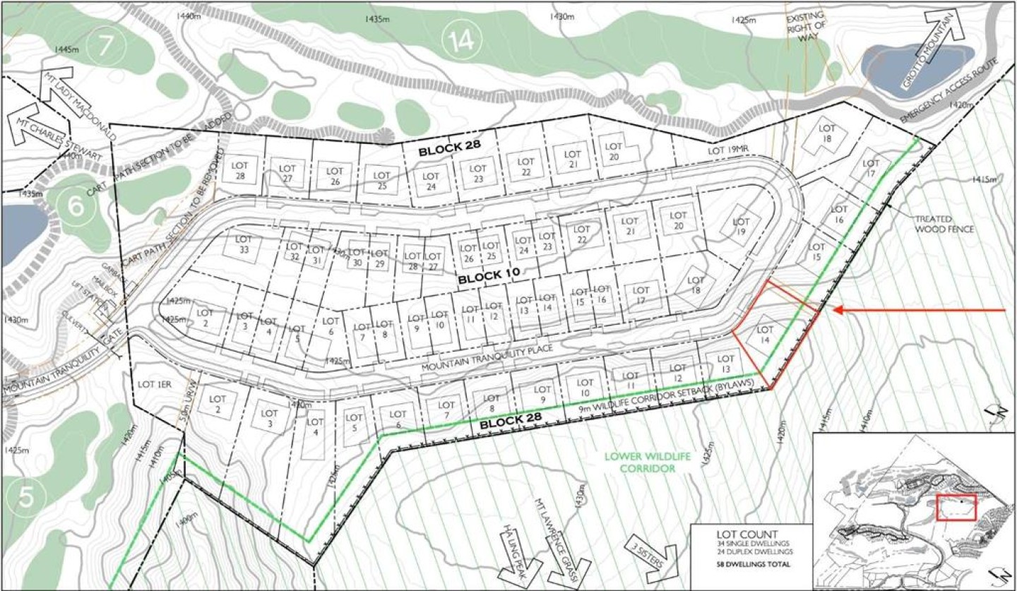 Experience unparalleled breathtaking views from this incredible south-facing homesite with direct views of the south and west. Situated on the best lot in all of Silvertip's newest luxury development, this lot offers direct views of the iconic Three Sisters in addition to the sprawling mountain range. Overlooking the valley, this property provides you with elevation, views and privacy all year long. Mountain Tranquility at Silvertip offers a prestigious homesite for you to build your custom home and this unique lot offers endless opportunities. Lot 14 backs onto a wildlife corridor, ensuring a tranquil and peaceful environment with stunning views all year long. This large homesite offers 12,630 square feet of space (0.29 acre) and is also one of a few within the development to include a private (not shared) driveway due to its exceptional frontage. Renderings of a home designed for the lot are included for inspiration but a much larger home could be built if desired. Build your dream home today and start enjoying a full time or part time mountain retreat with optimal sunshine and tranquility all year long. Surrounded by Silvertip golf course, wildlife corridors and mountain views from every angle, while being just minutes from Canmore's endless amenities, this is one of the best locations in all of Canmore. Development is well underway at Canmore's newest luxury development with roadways in place - meaning you can start building your dream home right away!