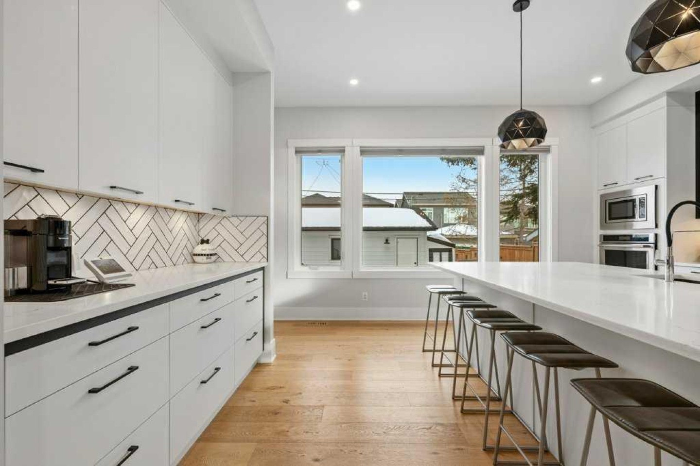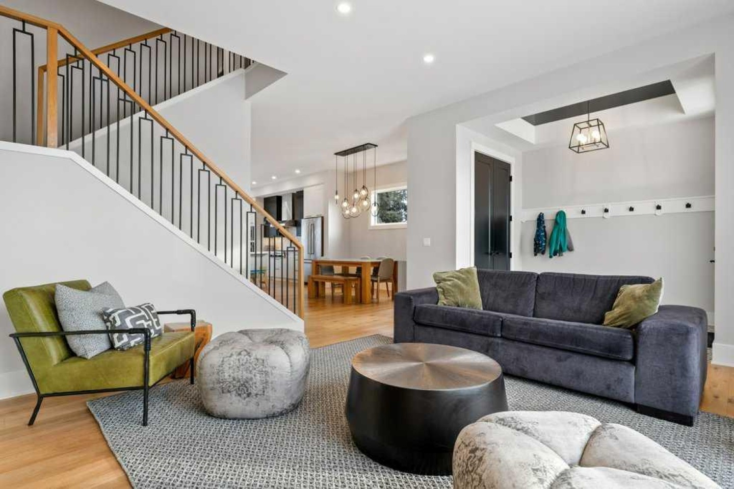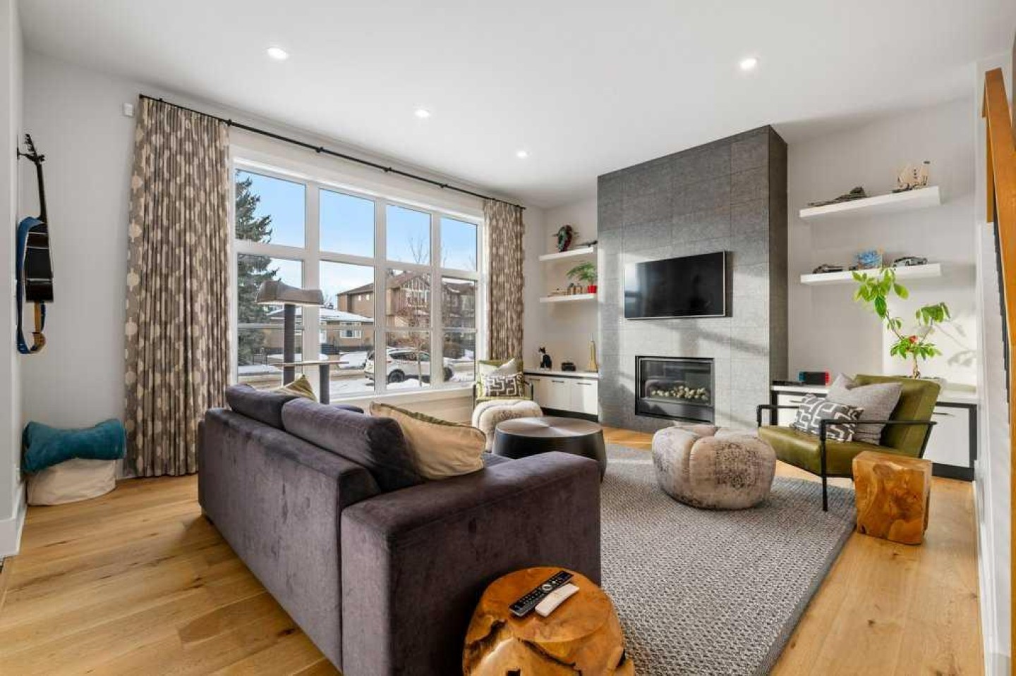 Stunning modern farmhouse located on a quiet street in the heart of the inner-city community of Renfrew. Custom built on a rare 60-foot lot with a 26-foot-wide footprint, this home offers exceptional space and functionality—ideal for growing families. The open-concept main floor is flooded with natural light and showcases 10-foot ceilings, wide-plank engineered oak flooring, solid core doors, custom railings, and a striking gas fireplace with floor-to-ceiling tile and built-in cabinetry from your family size front foyer into the West facing lifestyle room, the perfect start to this impressive plan.