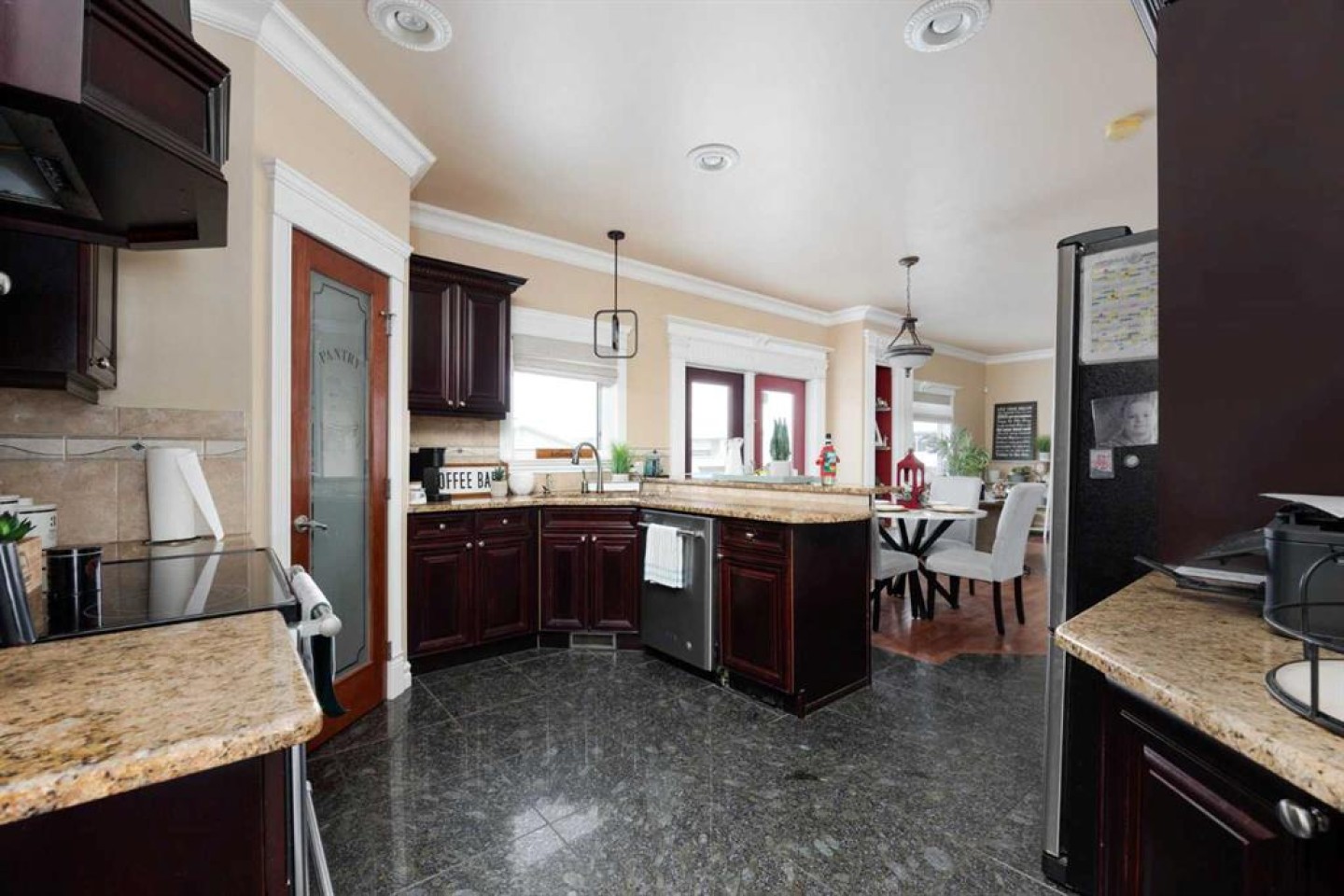 Welcome to 158 Pickles Crescent, a beautiful, grand, and spacious family home located on a corner lot in the desirable community of Timberlea. With alley access, a double attached garage, and an exposed aggregate driveway, this home offers both convenience and great curb appeal for everyone in the family and your tenant. Inside, you’ll love the traditional layout with stylish, high-end finishes throughout. The kitchen is perfect for everyday living and entertaining, featuring dark wood cabinets, granite countertops, stainless steel appliances, and hardwood flooring that adds a cozy, inviting feel. Large living areas with oversized windows bring in tons of natural light, and one living room includes a lovely fireplace—perfect for relaxing at the end of those snow-filled days. The main floor also offers a handy 2-piece powder room, a spacious laundry room, and easy access to the garage. Upstairs, there are four generously sized bedrooms, including a fantastic primary suite with a beautiful ensuite, walk-in closet, and its own sitting area—your own private retreat to get away. Downstairs, the fully developed basement includes a separate entrance and a legal two-bedroom suite, making it ideal for extended family, guests, or extra income. The open living area flows into a functional kitchen with plenty of cupboard and counter space, and both bedrooms are large and share a 4-piece bathroom. Outside, the fenced backyard is perfect for kids and pets, while the large deck is ready for summer BBQs and outdoor entertaining. Alley access in the back provides added yard parking if you need it.
