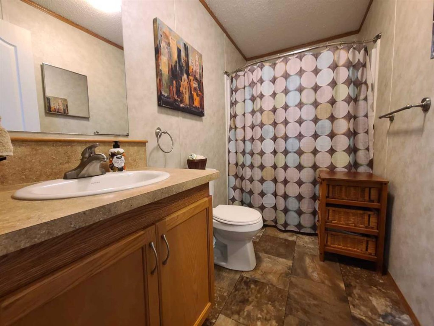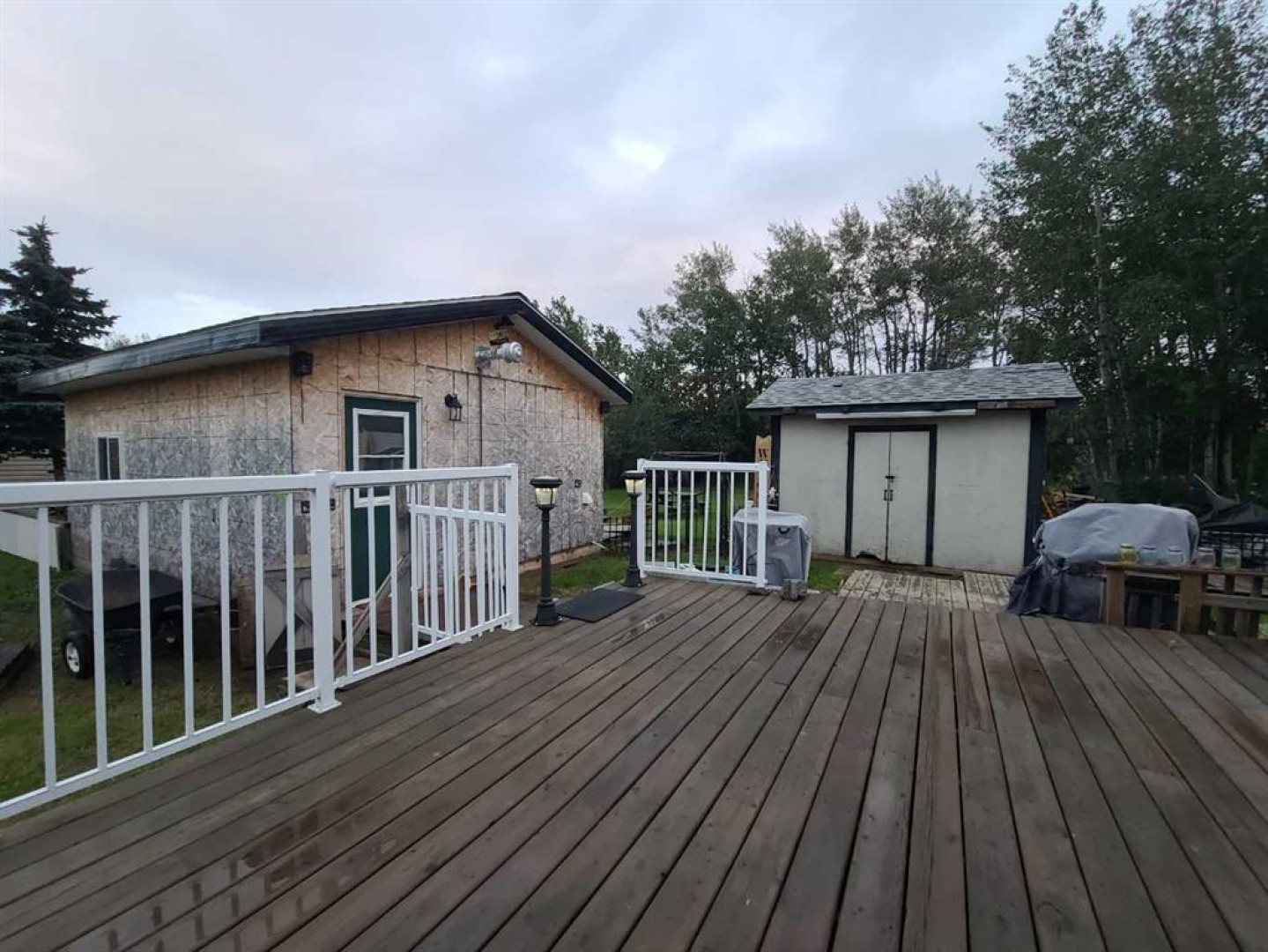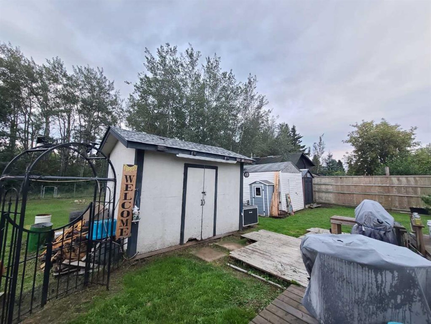 With two large and private lots and a spacious home, you will find all that you need here! Measuring 1,520 square feet, the open concept main living area is large and accommodating. Plenty of space for family and friends to gather. The kitchen is very spacious and has a handy island and huge pantry. The living room and dining room are directly adjacent the kitchen and with the vaulted ceilings, the overall feeling is of roominess. There are two large bedrooms and one bathroom on the one end of the house and on the other end is your private primary suite with walk-in closet and 4 piece bathroom with soaker tub. The large laundry room serves as the second entrance and has a huge closet and plenty of room for a deep freeze. The yard consists of two lots and is very private. FIVE sheds give you lots of storage and the largest of the sheds measures 16x20 and is insulated, heated and has an air conditioner to keep you comfortable any time of the year. A large deck is great for entertaining outside and part of the deck is covered and partially enclosed to keep you out of the elements. Even with all of this you still have lots of yard left. It has a nice lawn and firepit area and you could even build a garage or put in a large garden if you like. Plus extras like central air conditioning and a new hot water tank in 2024 let you know you are getting a great house. Call today to find out more and to book your private viewing!