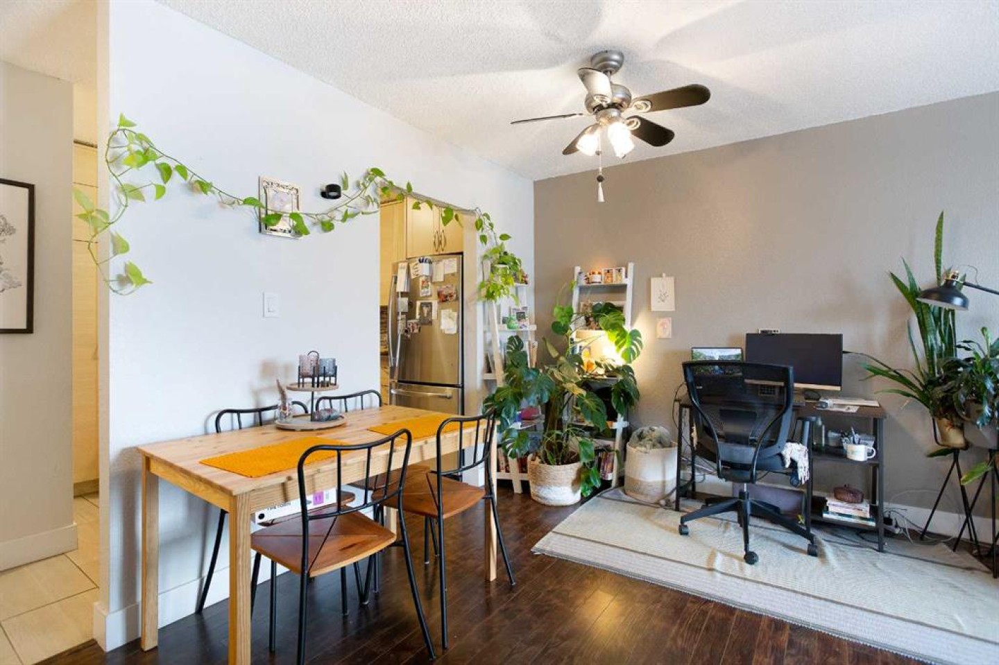 Situated in the established inner city community of Renfrew, this two bedroom condo offers a walkable lifestyle with quick access to downtown, Bridgeland, and the Bow River pathway system. The area is known for its mix of quiet residential streets and close proximity to cafes, restaurants, parks, tennis courts, and major transit routes along Edmonton Trail. Downtown is easily reached by foot, bike, or transit, making this location attractive for both daily living and long term rental demand. The unit offers over 700 square feet of well planned living space with a bright west facing exposure and downtown views. A full length balcony spans the width of the unit, creating a generous outdoor space that captures afternoon and evening sun. The kitchen features dual sinks, ample counter space, and a practical layout for everyday use. Two well sized bedrooms and a full bathroom provide flexibility for a variety of living arrangements. The bathroom has been updated, and the unit includes in suite laundry with an updated washer and dryer along with in suite storage. An assigned storage locker located outside of the unit adds additional convenience, and the property also includes covered parking. As rental demand remains strong and vacancy stays low in inner city areas such as Renfrew, this is an affordable option for a first time buyer or an investor seeking a well located condo that continues to rent easily.