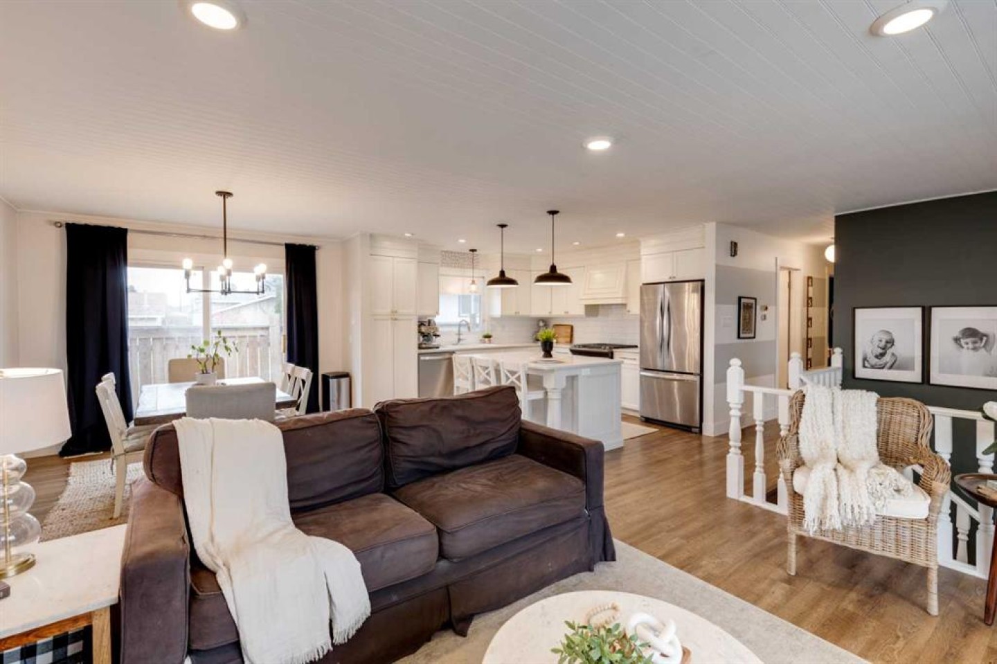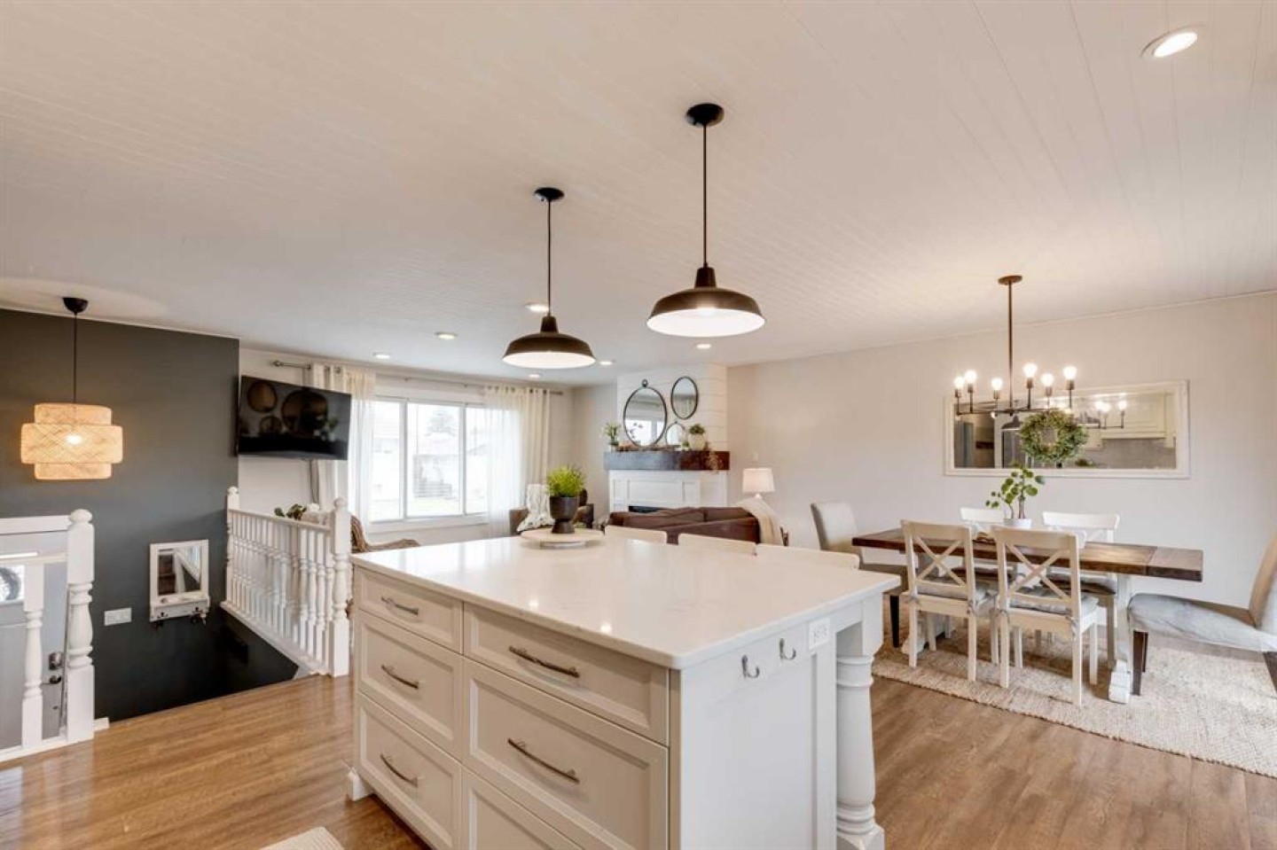 This beautifully updated 4 bedroom, 3 bath bi-level offers a perfect blend of modern style, and family-friendly functionality. The warm white kitchen is both inviting and practical, featuring quartz countertops, tiled backsplash, a spacious island, and a full stainless steel appliance package - ideal for everyday living and entertaining alike. The open-concept main floor is bright and welcoming, highlighted by a cozy yet contemporary gas fireplace, updated lighting, and durable easy-care vinyl plank flooring throughout. The generous primary bedroom accommodates a king bed and includes an updated 3-piece ensuite. Two additional main-floor bedrooms create an ideal layout for families, while the 5-piece main bathroom with dual sinks makes busy mornings a breeze. Downstairs, the lower level expands your living space with a large family room, a fourth bedroom, and office or potential 5th bedroom, and a modern 3-piece bathroom complete with a walk-in tiled shower. A spacious laundry room offers added convenience with a sink and built-in storage cabinetry. Extensive recent updates provide peace or mind, including paint, shingles, furnace, air conditioner, and all windows & doors. Outside, enjoy a low-maintenance, fully fenced yard with both deck and patio spaces. The corner lot offers added flexibility and potential to expand enclosed yard areas. An oversized attached double garage provides ample room for vehicles, storage, and hobbies.. A move-in ready family home with thoughtful updates throughout - this one is not to be missed!