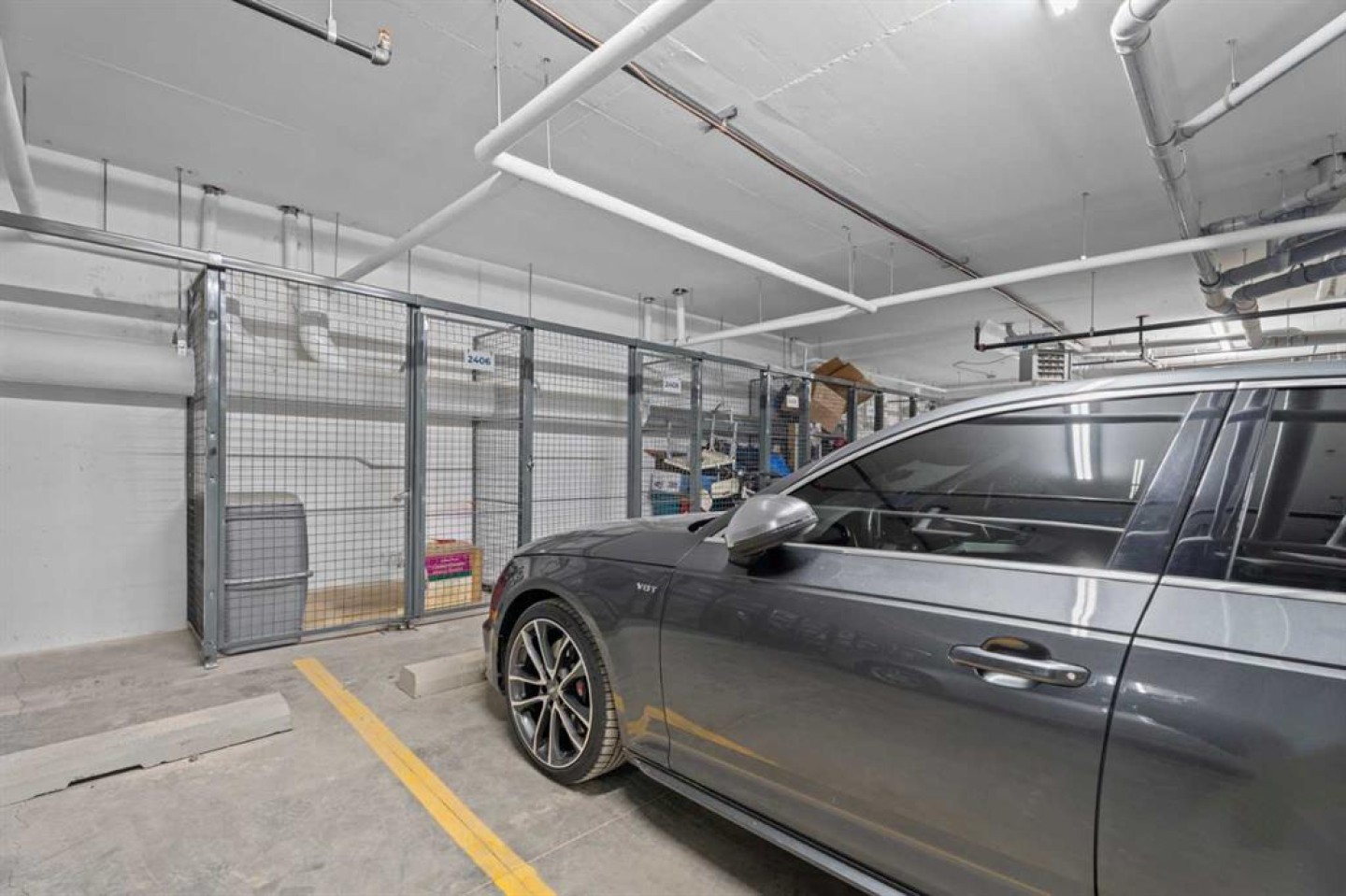 Extras like in suite laundry, air conditioning, and a large balcony (with mountain views on a clear day!) overlooking the dog park make this home even more appealing, especially in a pet friendly building! You'll also enjoy the convenience of a heated underground parking stall, separate storage locker, and low condo fees.