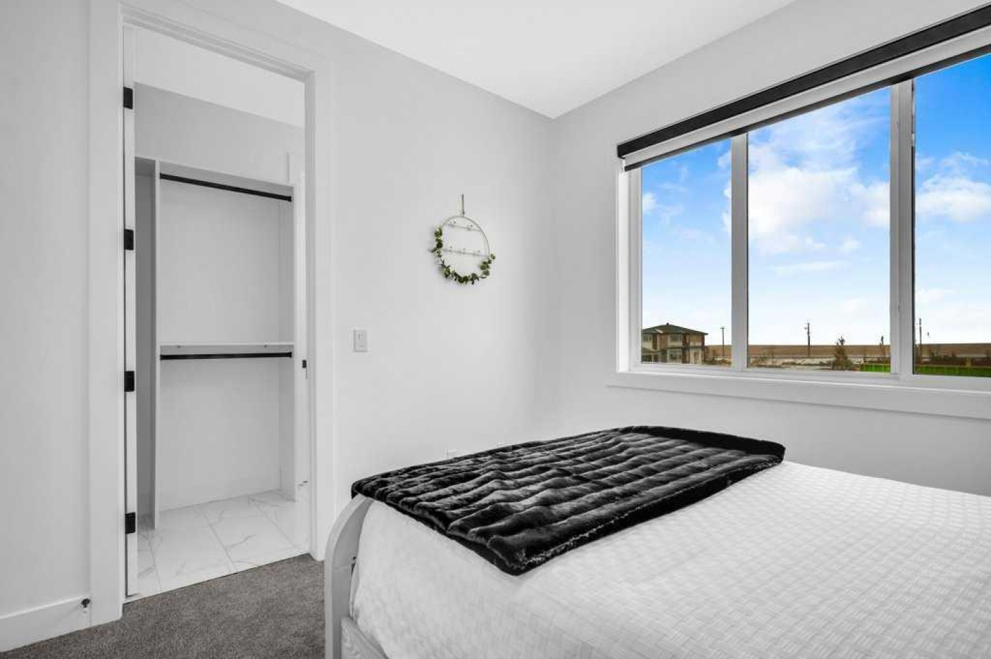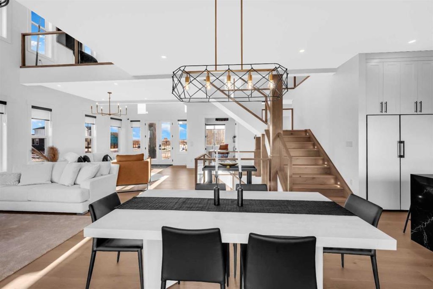 Welcome to this stunning luxury home by Brilliance Homes in the community of Goldwyn Estates. With a triple car garage, 6 bedrooms, and 6 bathrooms spread across just under 3,500 square feet, this home offers thoughtful design, top tier finishes, and all the bells and whistles you’ve come to expect from the Showhome. Nestled in a prime location with quick access to both Airdrie and Calgary, Goldwyn Estates offers the best of both worlds. You'll enjoy being just minutes from the amenities of CrossIron Mills while still surrounded by peaceful green space, walking paths, a pond, and a beautifully landscaped park and playground just steps away. Inside, you're greeted by 10 foot ceilings and a flowing open concept layout. The spacious main floor features a walk through mudroom, a private bedroom with a full bathroom, perfect for guests or multi generational living, and a separate office or den. The living room showcases dramatic open to below ceilings that seamlessly connect to the chef-inspired kitchen, complete with quartz countertops, sleek built-in appliances, and a fully equipped spice kitchen. Upstairs, the primary suite is a true retreat with tray ceilings, a beautifully finished ensuite, and a generous walk-in closet. You'll find three more bedrooms upstairs, with three full bathrooms as well. Say goodbye to morning chaos. A full laundry room and a bonus room with tray ceilings complete this level, offering space for the whole family to unwind. The fully finished walkout basement is where function meets fun. With two more bedrooms, a full bathroom, a home gym, and a spacious rec. room with a wet bar, this level is ready for movie nights, fitness goals, and everything in between. The backyard opens directly onto a scenic walking path, offering the perfect balance of privacy and connection to nature. Now is the time to secure your future dream home! Don’t miss your chance to live in luxury with Brilliance Homes at Goldwyn Estates.