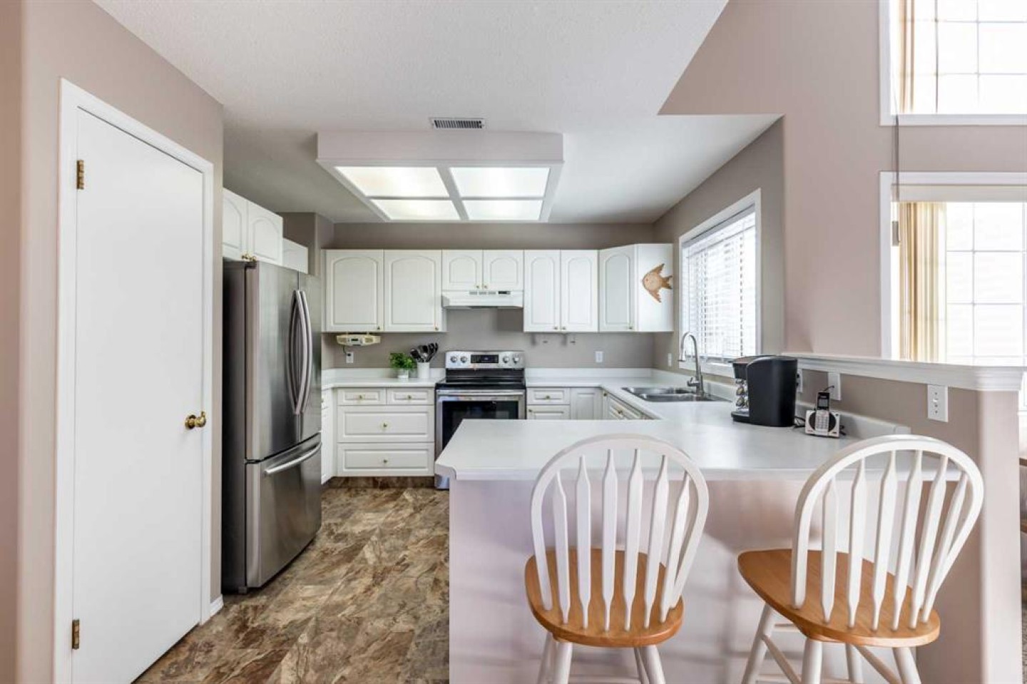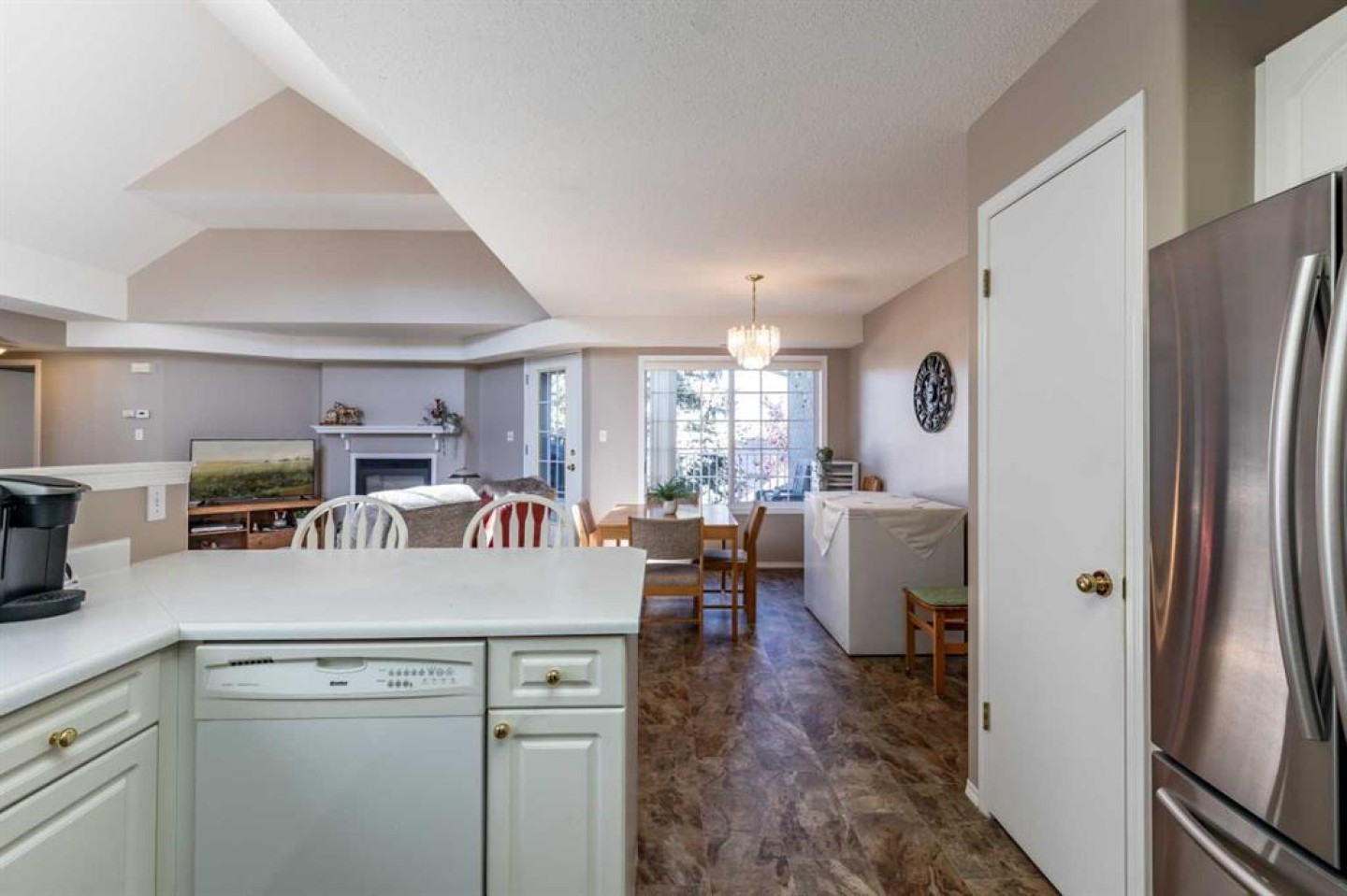 Welcome to this Bright & Spacious Condo located in The Casitas in Ross Glen. This light filled condo is complete with 2 bedrooms, 2 bathrooms featuring vaulted ceilings, an open-concept layout, and tons of natural light. Relax by the cozy fireplace or enjoy morning coffee on the large private deck. The crisp white kitchen offers plenty of cabinetry, counter space, and a sit-up bar for casual dining. The spacious primary suite includes a 4-piece ensuite, a large second bedroom plus and full laundry room, central A/C, and roughed-in vac. The single car garage is an added convenience you're going to love! This a well-maintained 35+ community a true “lock-and-leave” lifestyle—perfect for easy, carefree living. Don’t miss your chance to see this exceptional home! Pet allowed with restrictions.