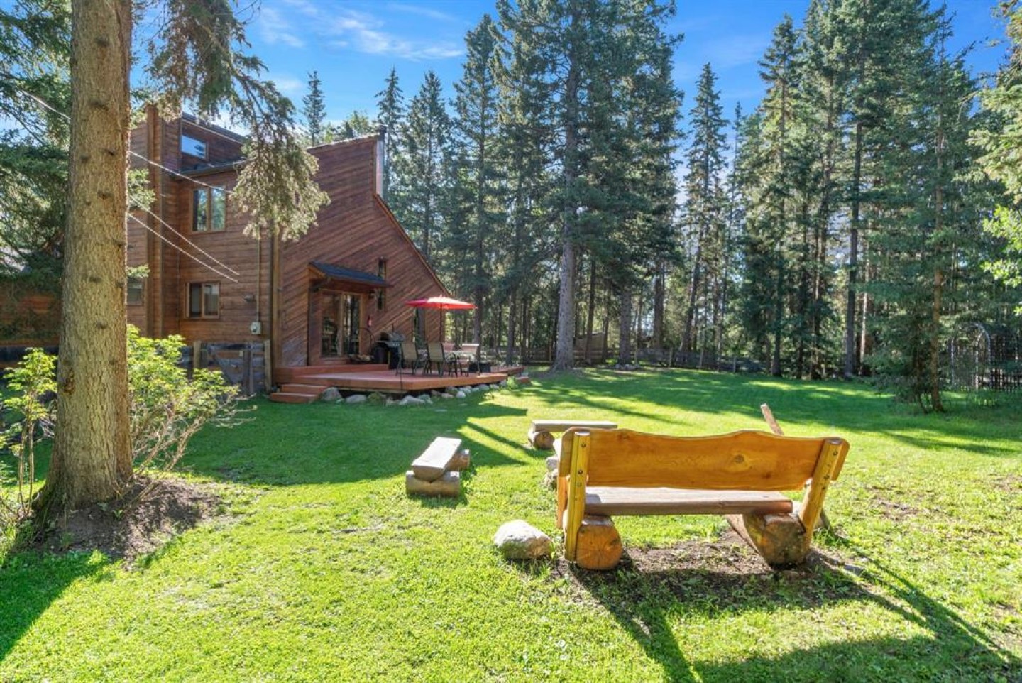 Escape to your own private 2.51 acre woodland paradise with this charming 4-bedroom, 2-bathroom home set on a beautifully treed lot in the serene Benchlands community. Nestled among towering evergreens, this property offers peace, privacy, and the perfect blend of rustic charm and modern comfort. Inside, warm wood accents and vaulted ceilings with skylights create a bright, inviting atmosphere. The sun filled living room features large windows overlooking the forest and a cozy airtight wood burning stove set against a stone feature wall. The spacious kitchen offers ample cabinetry, a gas stove, and direct access to the outdoors, ideal for both everyday living and entertaining. Bedrooms are generously sized, and bathrooms include unique touches such as vibrant tile work and wood finishes. The property includes an oversized detached garage with space to park 2 cars plus workshop space for quads or motorbikes, or woodworking, plenty of parking with a carport also attached to the house. Lush green space for outdoor activities, and the ability to have 2 horses onsite with corrals and horse shelter already in place. With its private driveway, fire pit area, and direct access to nature, this home is perfect for year-round living or a weekend getaway with easy access to the Waiparous area crown lands and the Ghost River just a few minutes walk from your front door. Call to book a showing today. New Starlink internet system just installed and will be left with the property. New roof 2024, new flooring 2024, new paint.