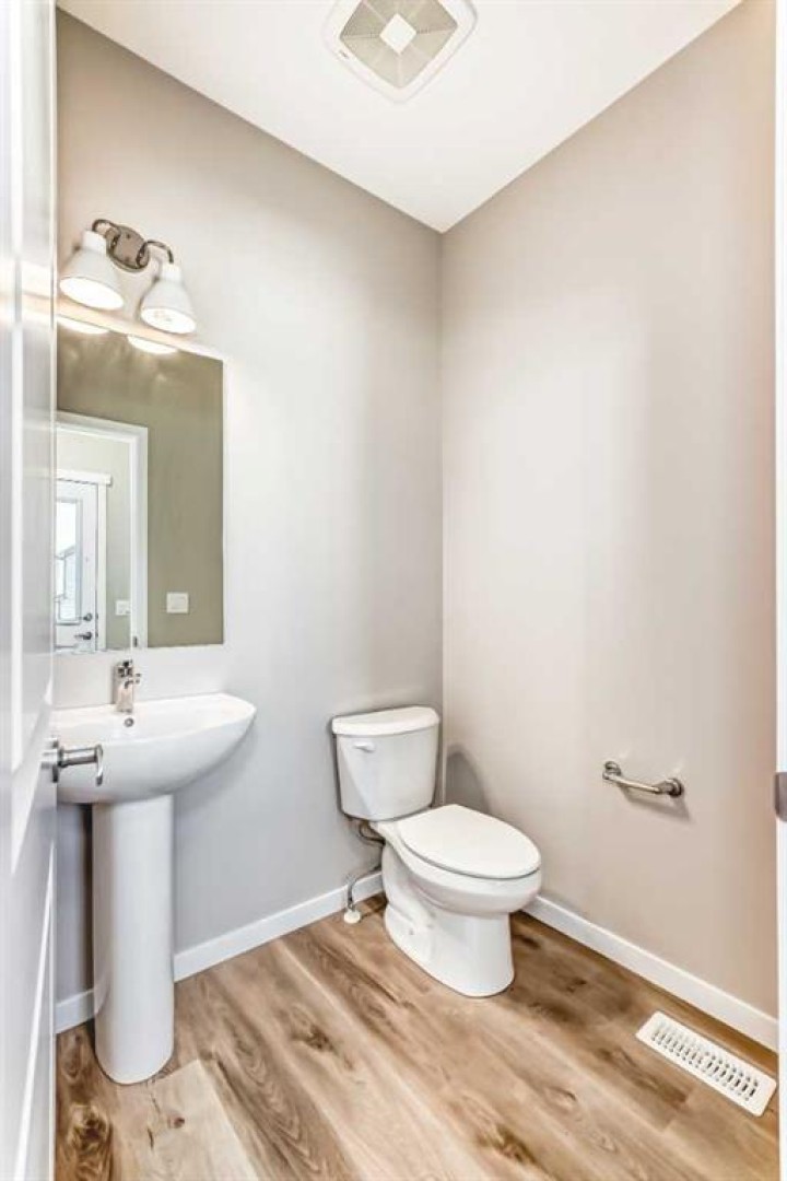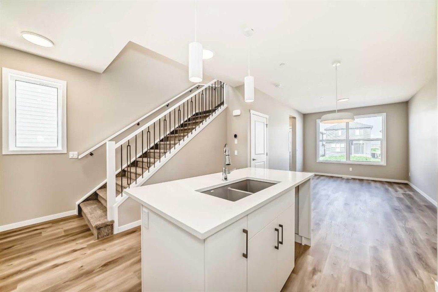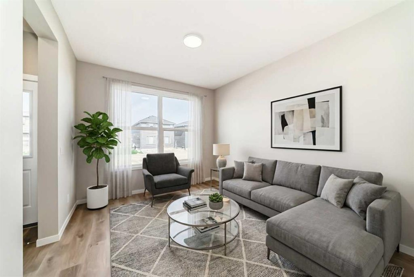 If you’ve been searching for a brand-new home but don’t want to wait for construction, this is your chance. Be the first to call this beautifully designed, never-lived-in 3-bedroom home by Hopewell Residential your own. Offering nearly 1,400 sq. ft. of thoughtfully planned living space and a side entrance for a potential future basement suite (a secondary suite would be subject to approval and permitting by the city/municipality), this home blends style, function, and future flexibility. From the moment you step inside, the home feels bright and welcoming thanks to an abundance of windows and a desirable west-facing backyard that captures the afternoon and evening sun. The main floor is finished in luxury vinyl plank flooring throughout, creating a seamless, modern look that’s both durable and easy to maintain. An upgraded railing that carries up the staircase helps create an open, connected feel between the levels, enhancing the overall sense of space. The main floor is designed for everyday living and effortless entertaining. A separate living room and family room give you flexibility—whether you want a cozy TV space, a more formal sitting area, or a play area for the kids. The dedicated dining area is well-positioned between the kitchen and family room, making it ideal for family dinners, hosting friends, or gathering for those special holiday meals. At the heart of the home is the show-stopping kitchen. Here you’ll find white kitchen cabinets extended to the bulkhead, creating a clean, custom feel with extra vertical presence. These are paired with white quartz counters and a marble-style backsplash, giving the space a fresh, upscale look that will stand the test of time. Stainless steel appliances, a large central island, and generous cabinet and counter space ensure this kitchen is as functional as it is beautiful, whether you’re preparing weeknight meals or entertaining a crowd. Just off the main living area, a generous pocket office provides a quiet, dedicated space for working from home, managing household tasks, or serving as a homework zone for the kids. Upstairs, the layout continues to prioritize comfort and convenience. The spacious primary bedroom offers a calming retreat at the end of the day, complete with a stylish 4-piece ensuite featuring dual sinks & an oversized shower. Two additional well-sized bedrooms provide flexibility for kids, guests, or a home office, while the upper-floor laundry room adds everyday practicality. A full main bathroom completes the second level, making the upstairs space feel balanced and family-friendly. The side entrance opens up future opportunities to develop the basement into a suite (a secondary suite would be subject to approval & permitting by the city/municipality), creating potential for extended family living or rental income down the road. Outside, the home comes fully finished with front and backyard landscaping, including sod, mulch along the side yards. The Benning by Hopewell Residential delivers it all.