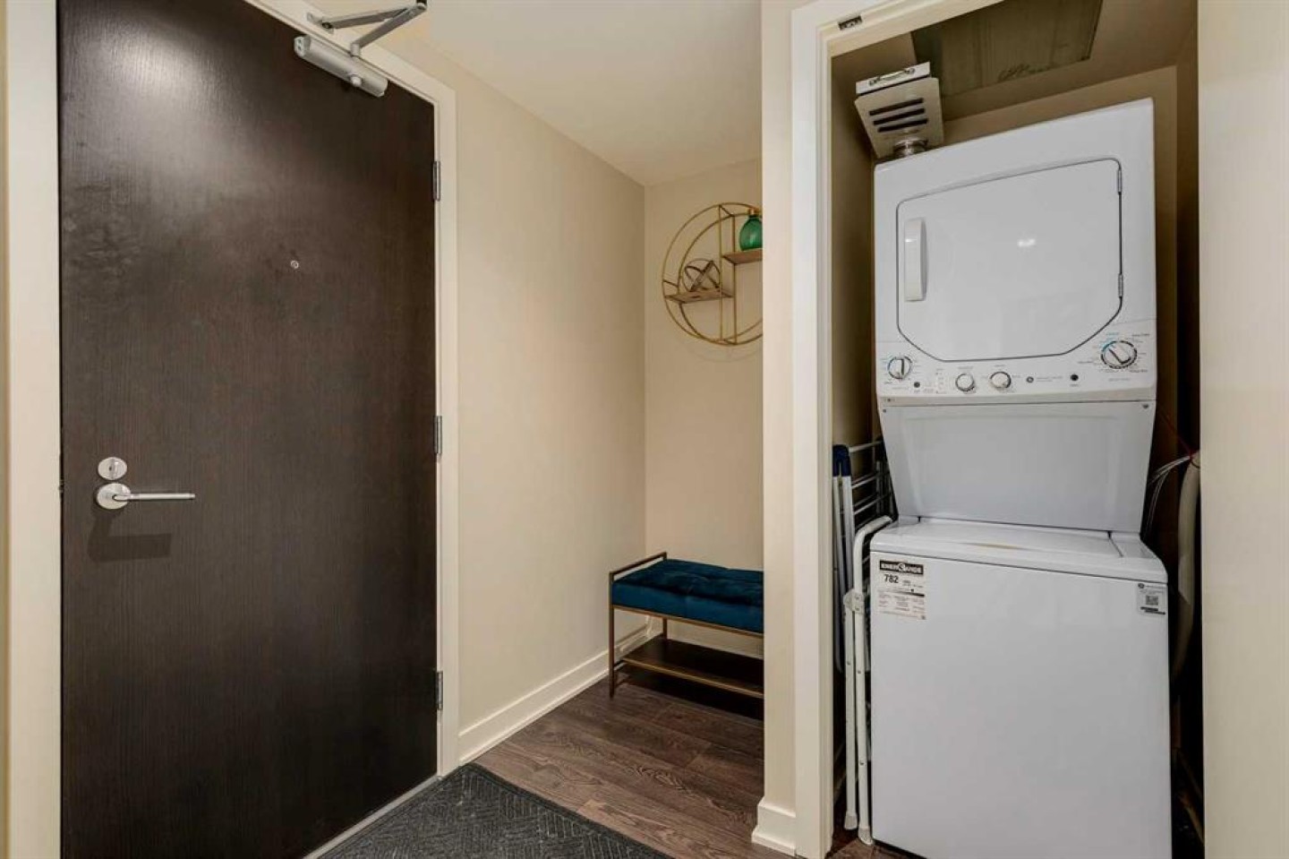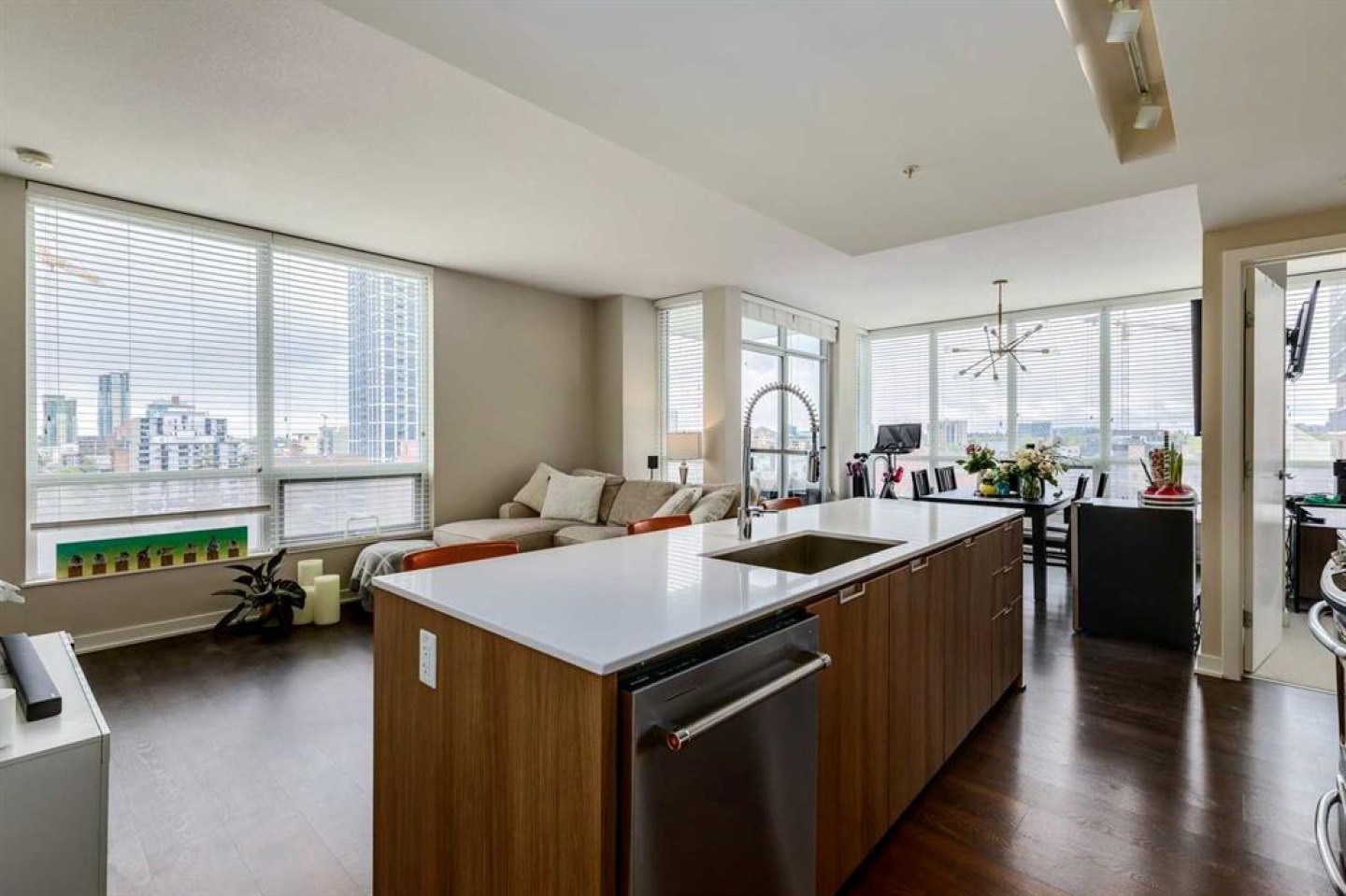 Perched on the 9th floor with sunny south and east views of the downtown core and the sunny south towards the Elbow river, this corner unit is a must see. Calla is a long-time favourite in the Beltline for its location and walkability to downtown and 17 Avenue. This 2-bedroom, 2-bathroom layout is a favourite in the building as it is one of the largest floorplans in the building and rarely these style units come available. This best part about this unit is the layout offers flexibility to either have your living space by the patio, or dining space by the island or by the patio. With 961 square feet, large windows, and consistent sun exposure. It is an ideal space for someone who enjoys everything inner city life has to offer. As you enter this floorplan foyer creates a defined entry away from the main living area. The open concept living space is functional and bright. Floor to ceiling windows showcase the downtown skyline which can be enjoyed both day and night. Dark espresso laminate floors pair with the kitchen, which features a large quartz island and well-appointed storage. The kitchen flows to the dining and living areas and opens to a private SE balcony with room to relax as well as space for a barbecue. The two bedrooms sit on opposite sides of the unit, which is an ideal layout. The primary bedroom has a walkthrough closet and a 4-piece ensuite with a stand-up shower and soaker tub. The second bedroom is spacious and works well as a bedroom, office or flex room. A walk-through closet connects to a 3-piece bath. In suite laundry and strong storage complete the interior. This unit has had some recent updates which include fresh paint, new carpet, new washer/dryer, upgraded faucets, central AC and more. Calla provides great amenities such as concierge, a fitness room, yoga space, sauna, guest suite, bike storage, and visitor parking plus secure storage rooms on the same floor as the unit. One titled parking stall is included. This home is ideal for singles or professional couples who want inner city convenience and to be in the heart of walkable accessibility to everything you need.