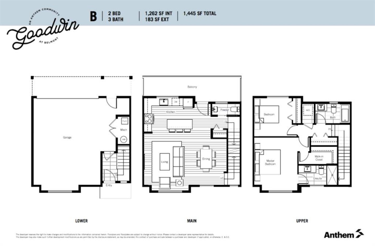 Welcome home! This is your opportunity to live at Goodwin by Anthem in the brand-new master planned community of Belmont. Your spacious open concept townhome comes complete with high end finishes, appliances and an attached double car garage. Inspired by west coast aesthetic, translated to contemporary prairie architecture the homes are bright, modern and approachable. Whether you are a family, young professional, downsizer or investor these homes bring forth value, craftsmanship and quality that you do not want to live without. Amenities include exclusive access to the Goodwin outdoor living space including picnic tables, a fire pit and dog run! Goodwin is surrounded by shopping, parks, recreation centers, schools and much more. NOTE: Unit 210 is a B Plan, 2 BR 2.5 Bath. This is a quick possession home. Photos are of display homes. The area size was calculated by applying the RMS to the blueprints provided by the builder.